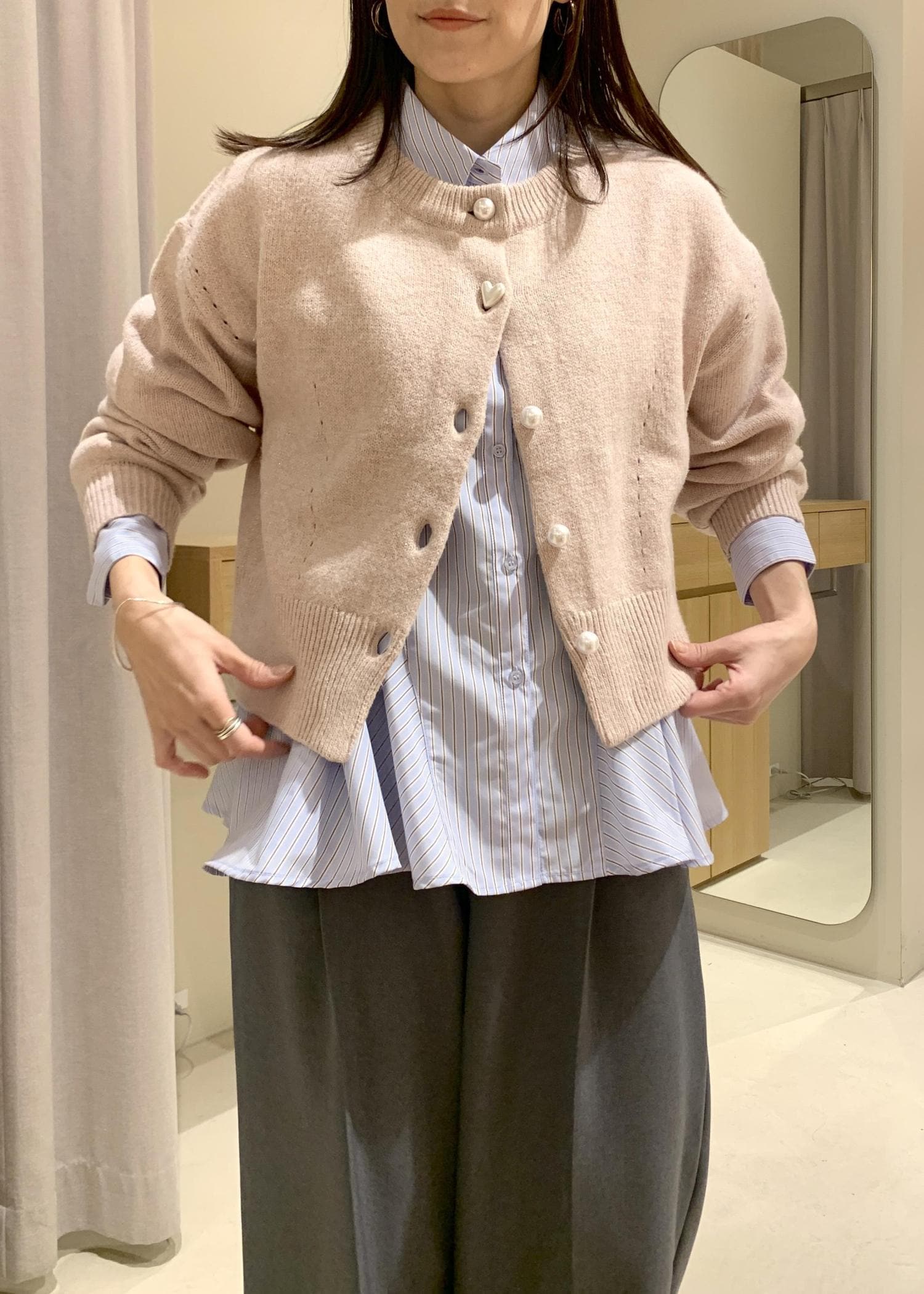 2BUY10%OFFVISハートアソートパール釦ラメミックスカーディガン/イージーケア・一部WEB限定カラーピンク系 / F¥4,391レビュー着映えするデザインなのが◎