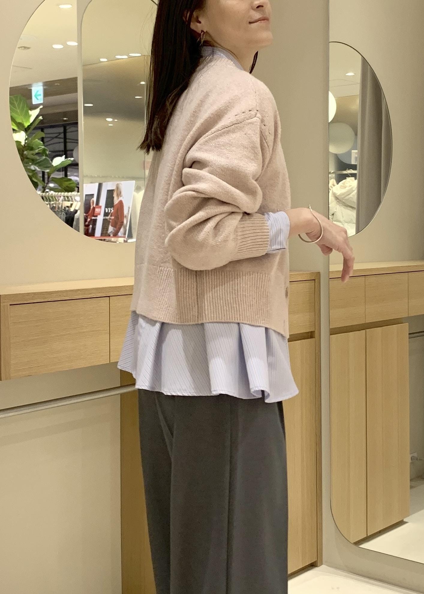 適度なゆとりがあるので、インナーとの重ね着もしやすいです。ボタンを締めた状態でも窮屈感もなく、着心地はいいです。柔らかいカラーなので、普段カラー物を取り入れない方でも着やすいと思います!是非、挑戦してみてください。 -