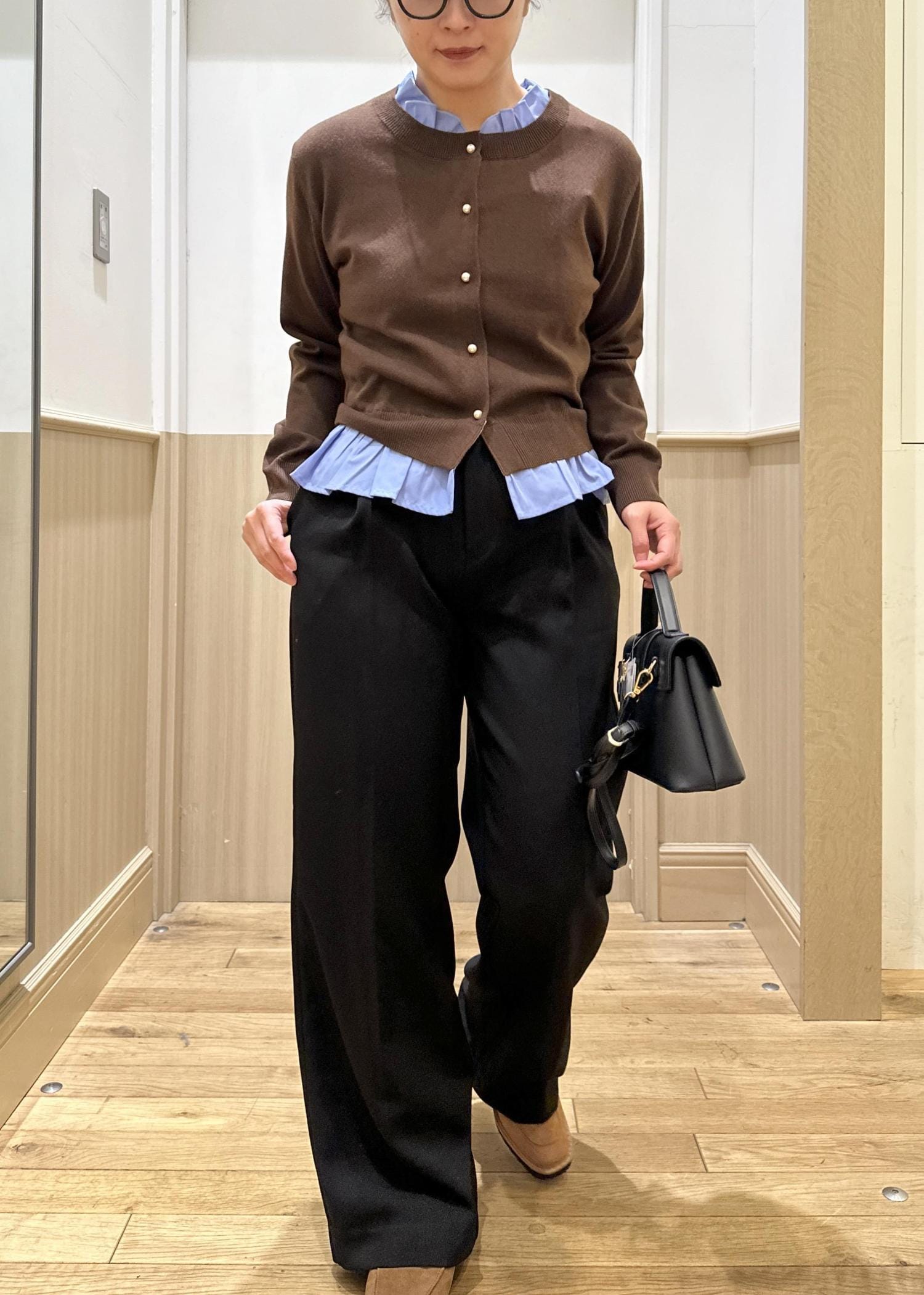 VIS【美得】フリル襟ドッキングニットカーディガントップスダークブラウン / F¥5,929レビュー柔らかいニット素材でチクチクしなくて着心地よかったです!