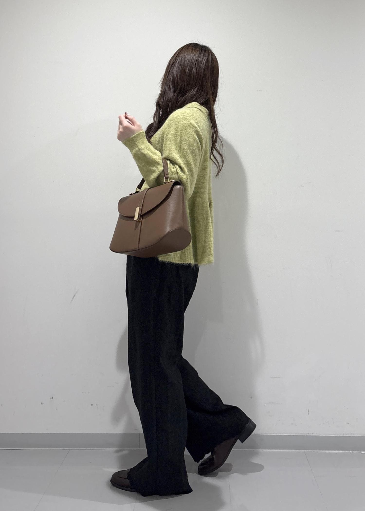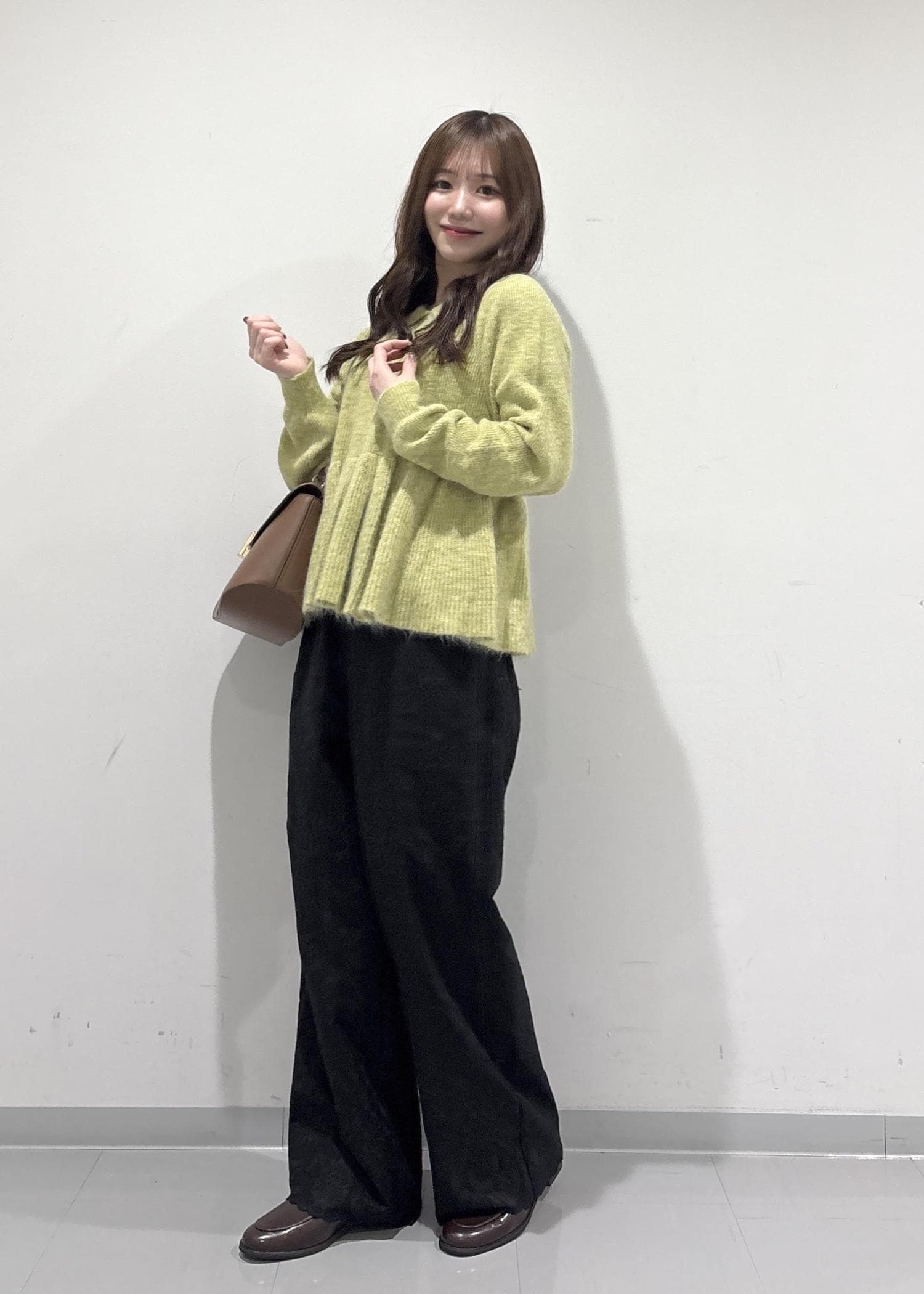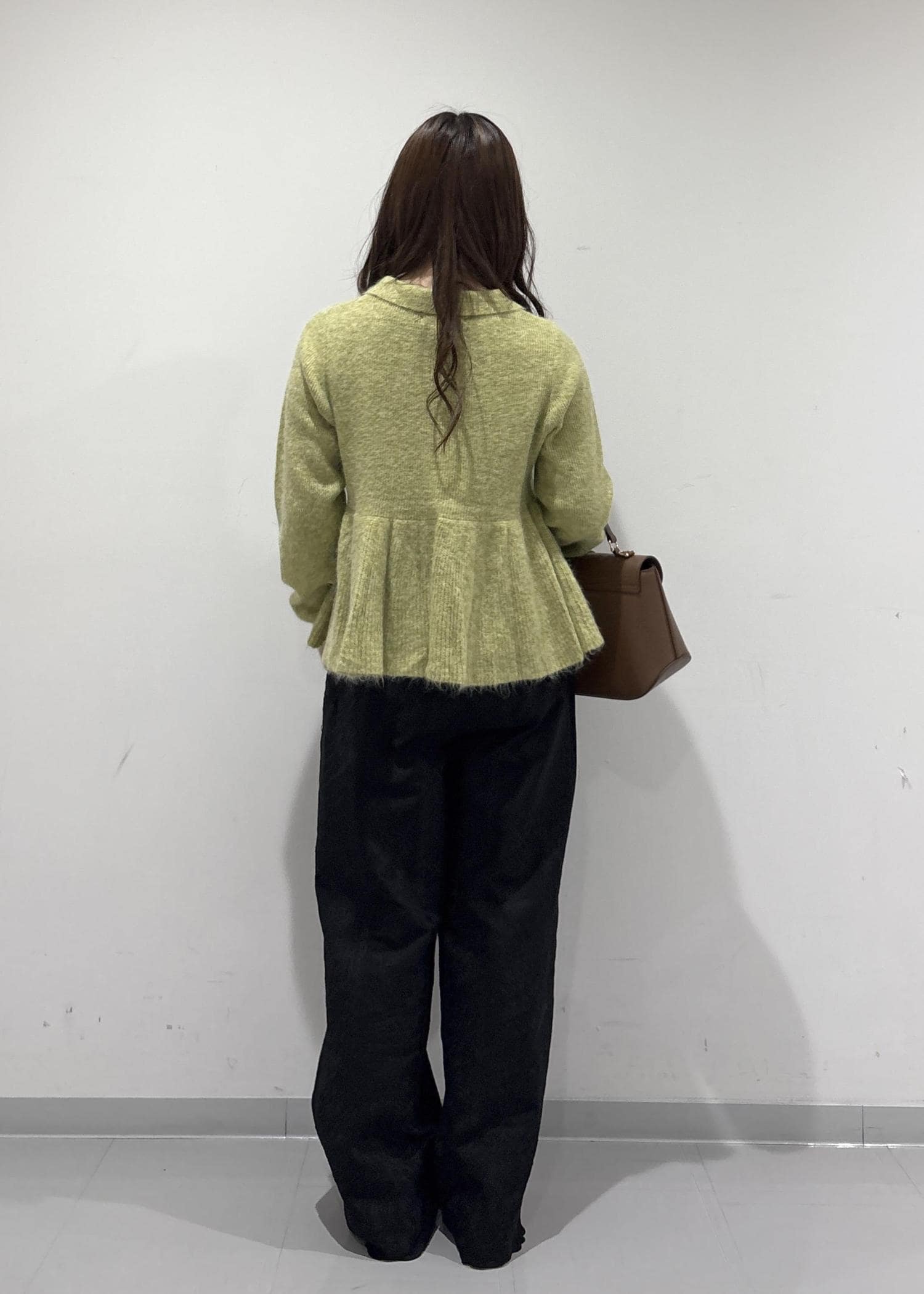 こちらのコーデのポイントは、グリーンのペプラムニットです!襟付きでペプラム仕様なので甘い感じで女性らしい印象にしてくれます!刺繍付きのパンツは上品だけどカジュアル感も出してくれてるので普段使いもしやすいです!ブラウンのバッグとローファーで大人っぽくキレイめな印象を出してみました!冬の終わりかけから春でも着用できちゃいます!