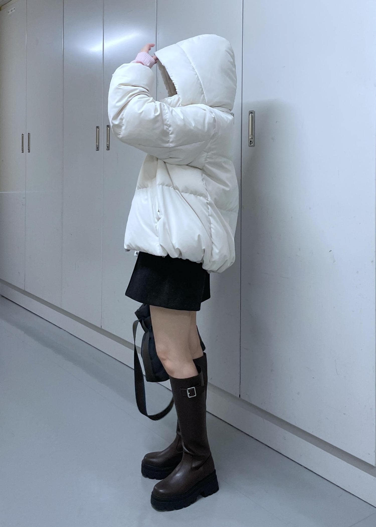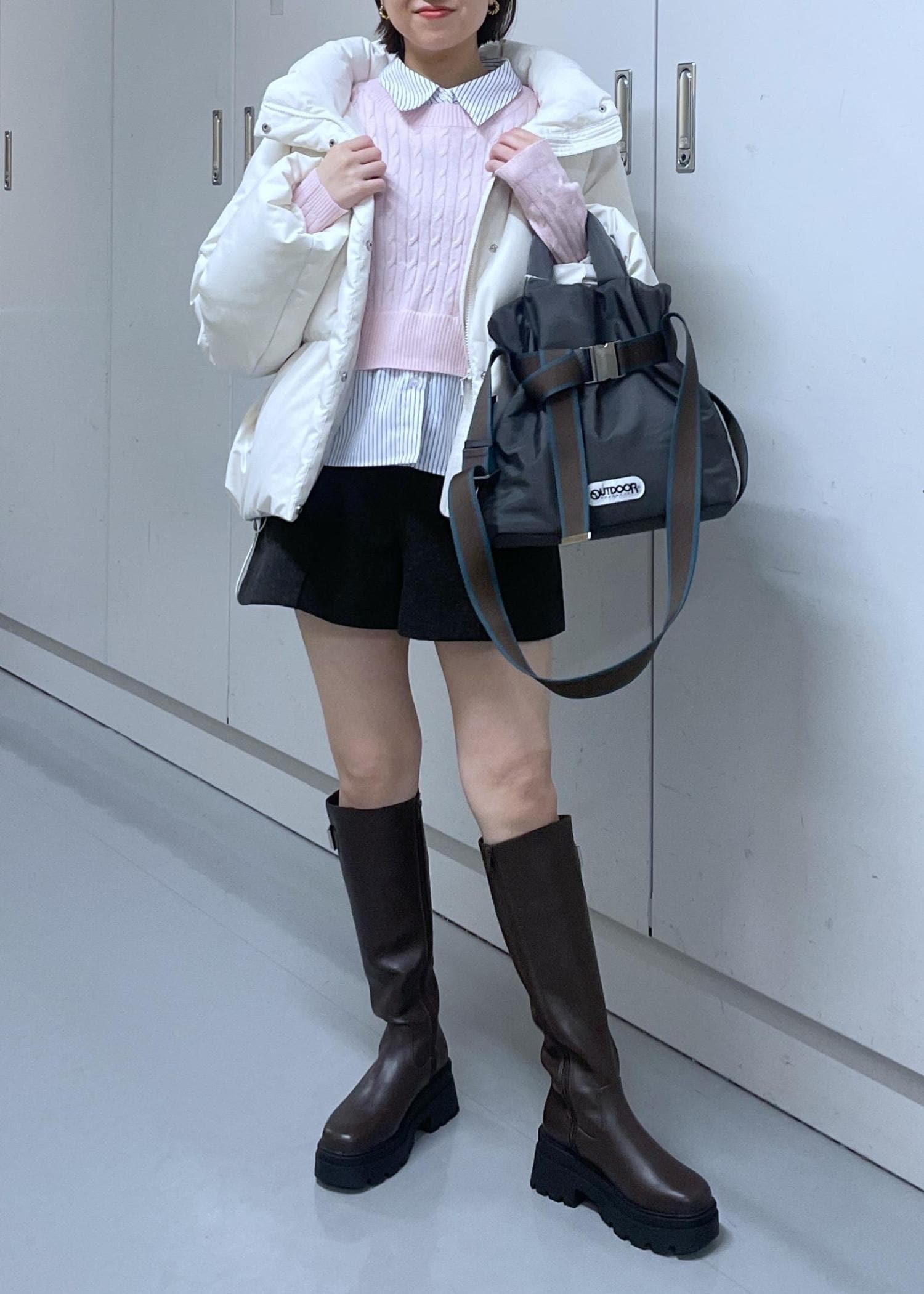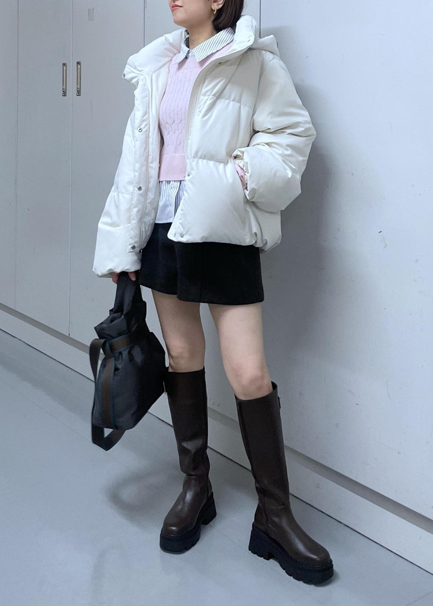 短めの着丈なので、タイツ合わせかロングブーツ合わせが安心感あります。