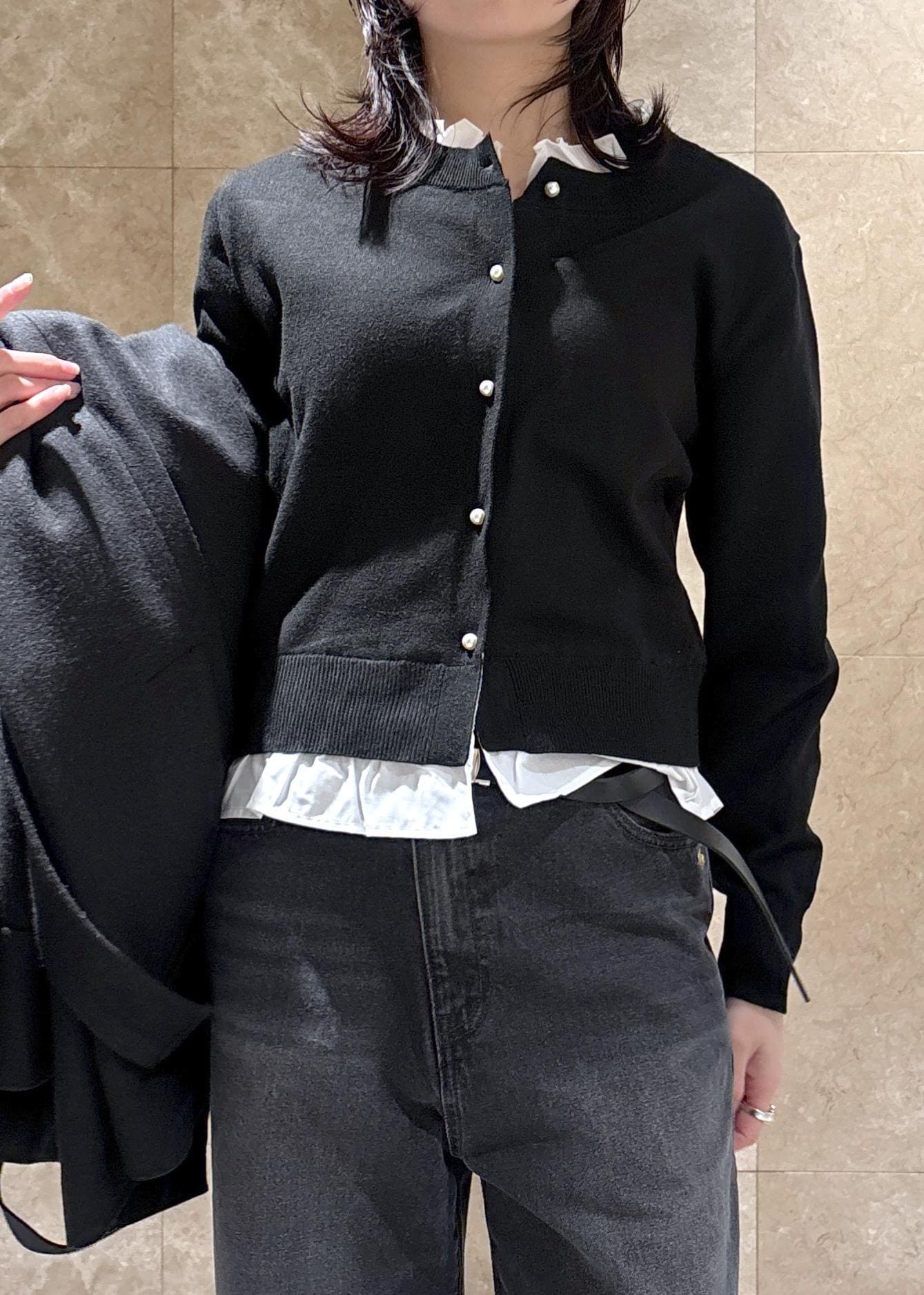 VIS【美得】フリル襟ドッキングニットカーディガントップスブラック / F¥5,929レビュー薄手のニット素材で、春先も使えそうな厚みです。
