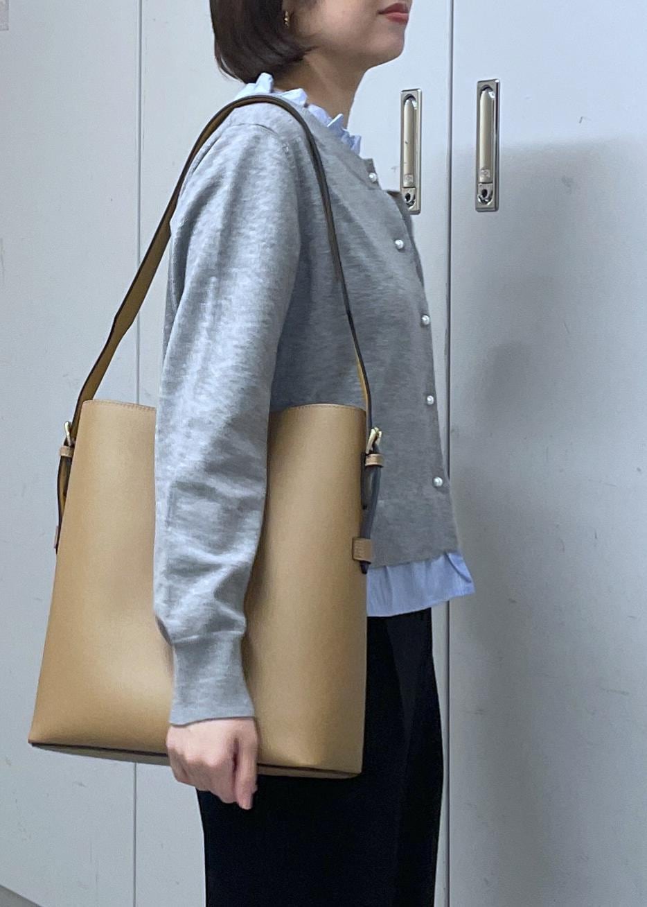 NEW! 2BUY10%OFFVIS【新色追加】【A4収納】リバーシブルハンドルワンショルダーバッグキャメル系 / F¥5,929レビューマチがしっかりあり、A4も入ります。
