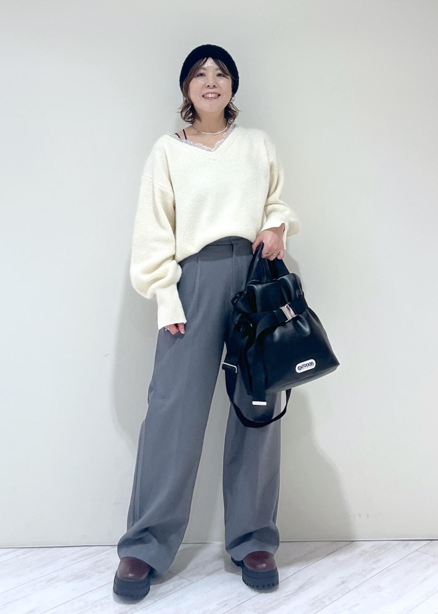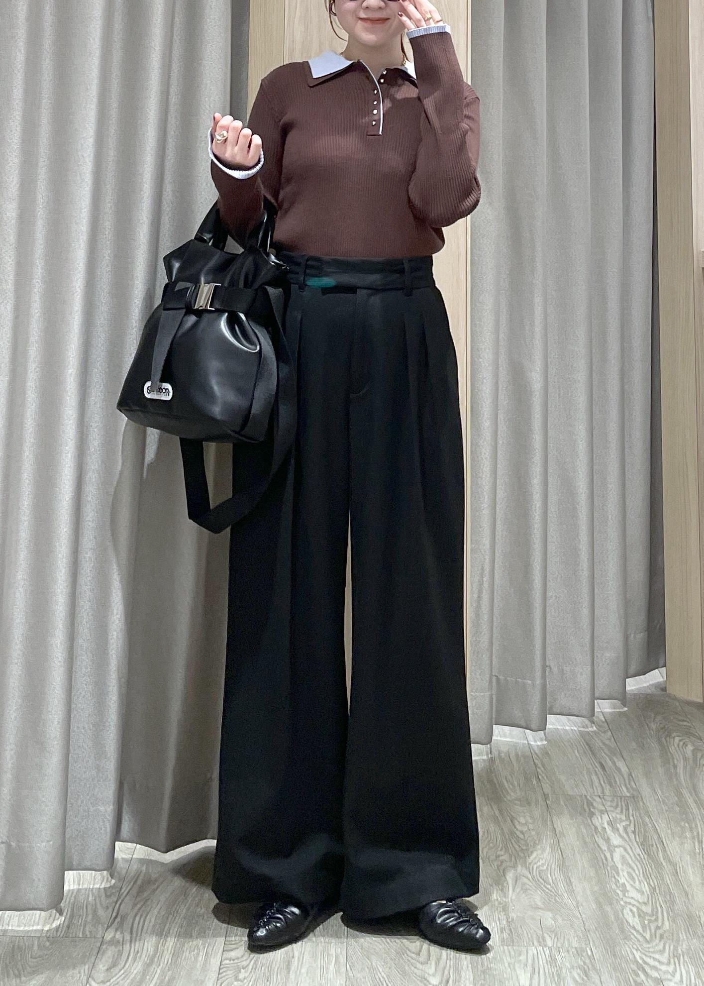 VISHot Beautyツータックワイドパンツ/イージーケアブラック / M¥6,589レビュー秋冬人気のシリーズ♡裏起毛で程よい厚みがありますが、センタープレスでスッキリと脚長効果も期待できます◎ワイドシルエットと腰回りは2タックなので体型カバーも叶います!