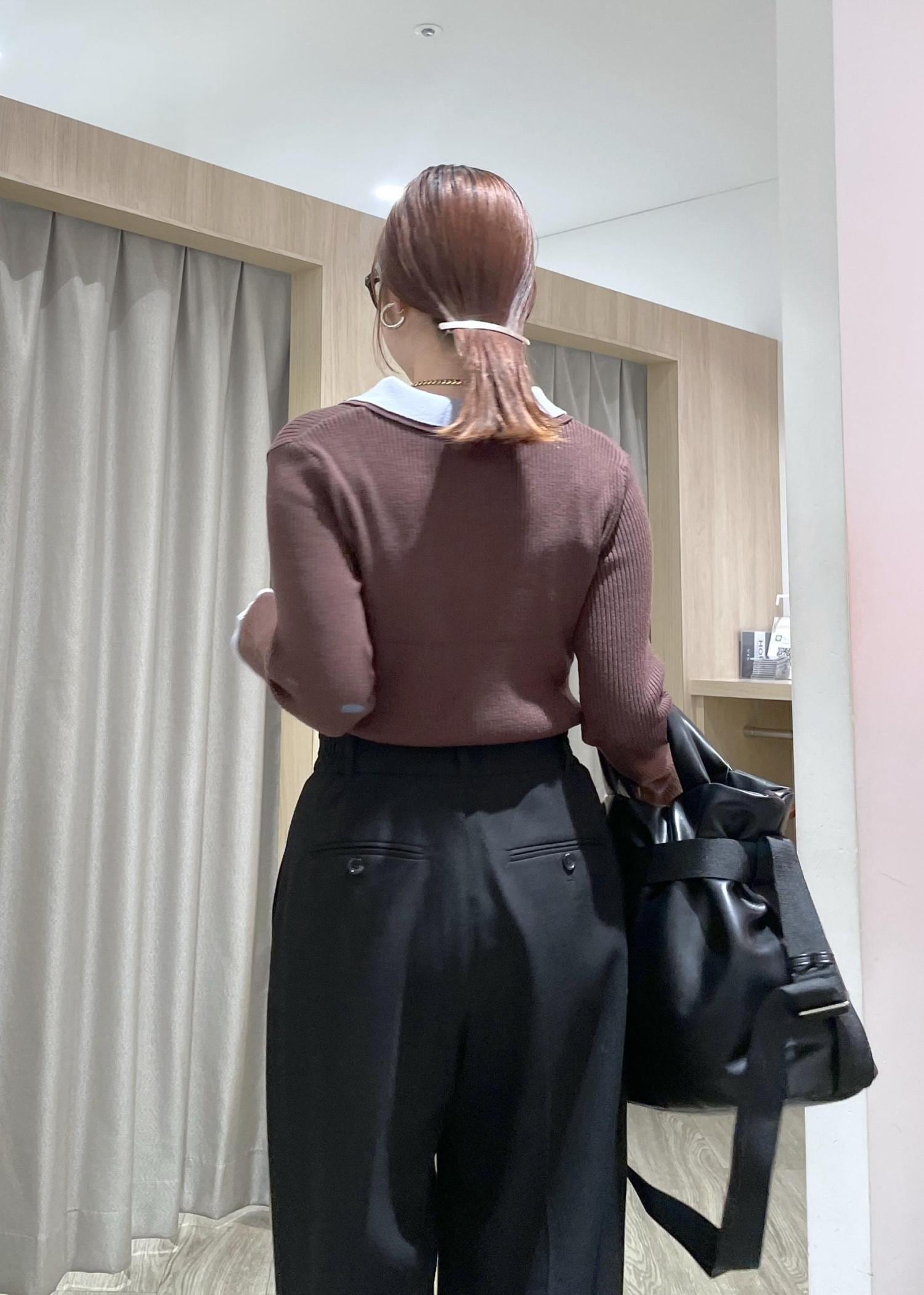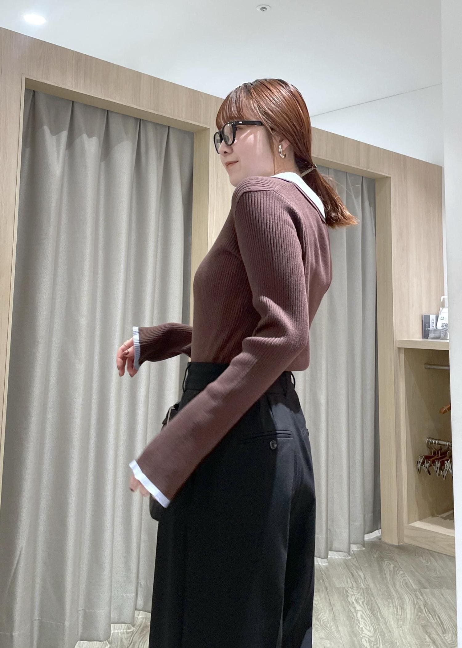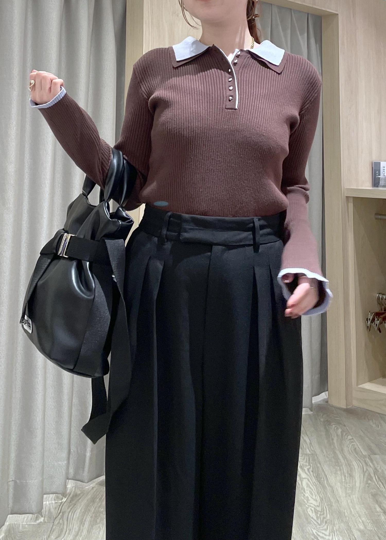 VISダブルカラーポロニットトップスブラウン / F¥5,929レビュー1枚でお洒落見えなダブルカラー♡体にフィットするサイズ感でボディラインを綺麗に見せてくれます。骨ストで上半身の厚みが普段気になりますが、釦を1.2個開けるとスッキリ着用出来ました。長めな袖も華奢見えのポイントになります◎