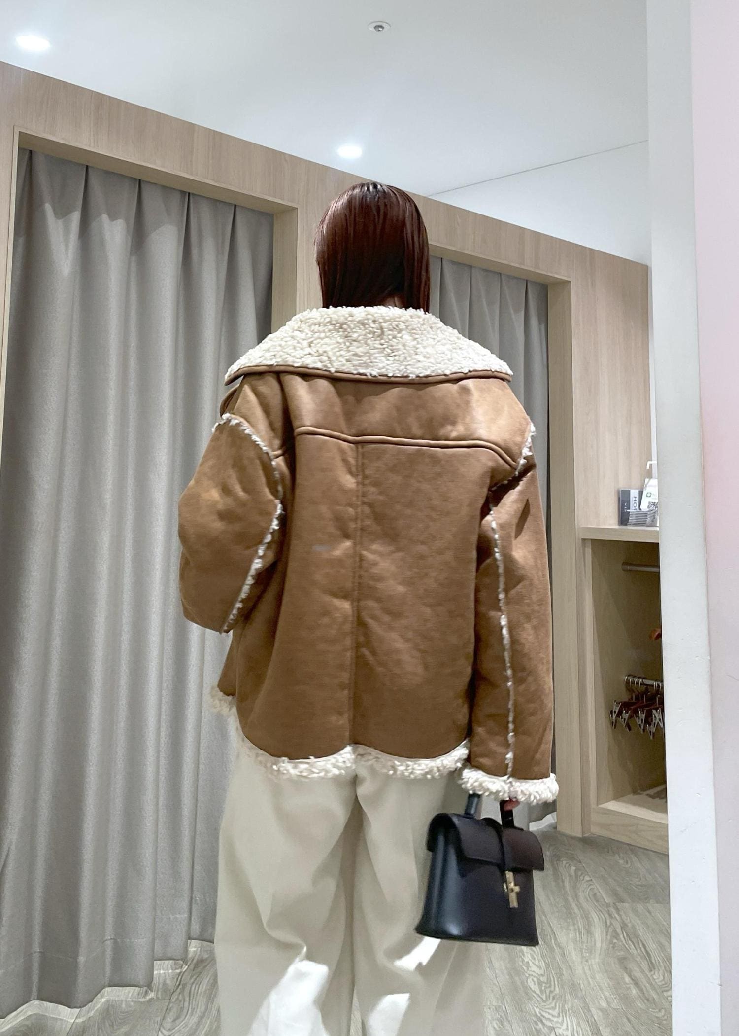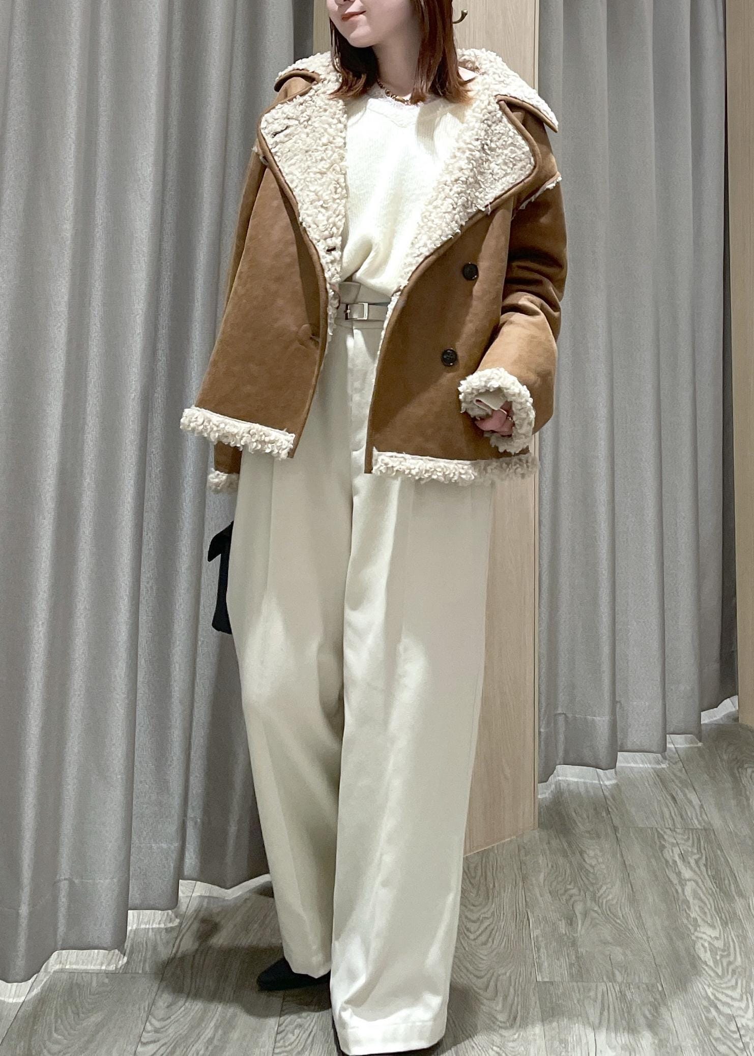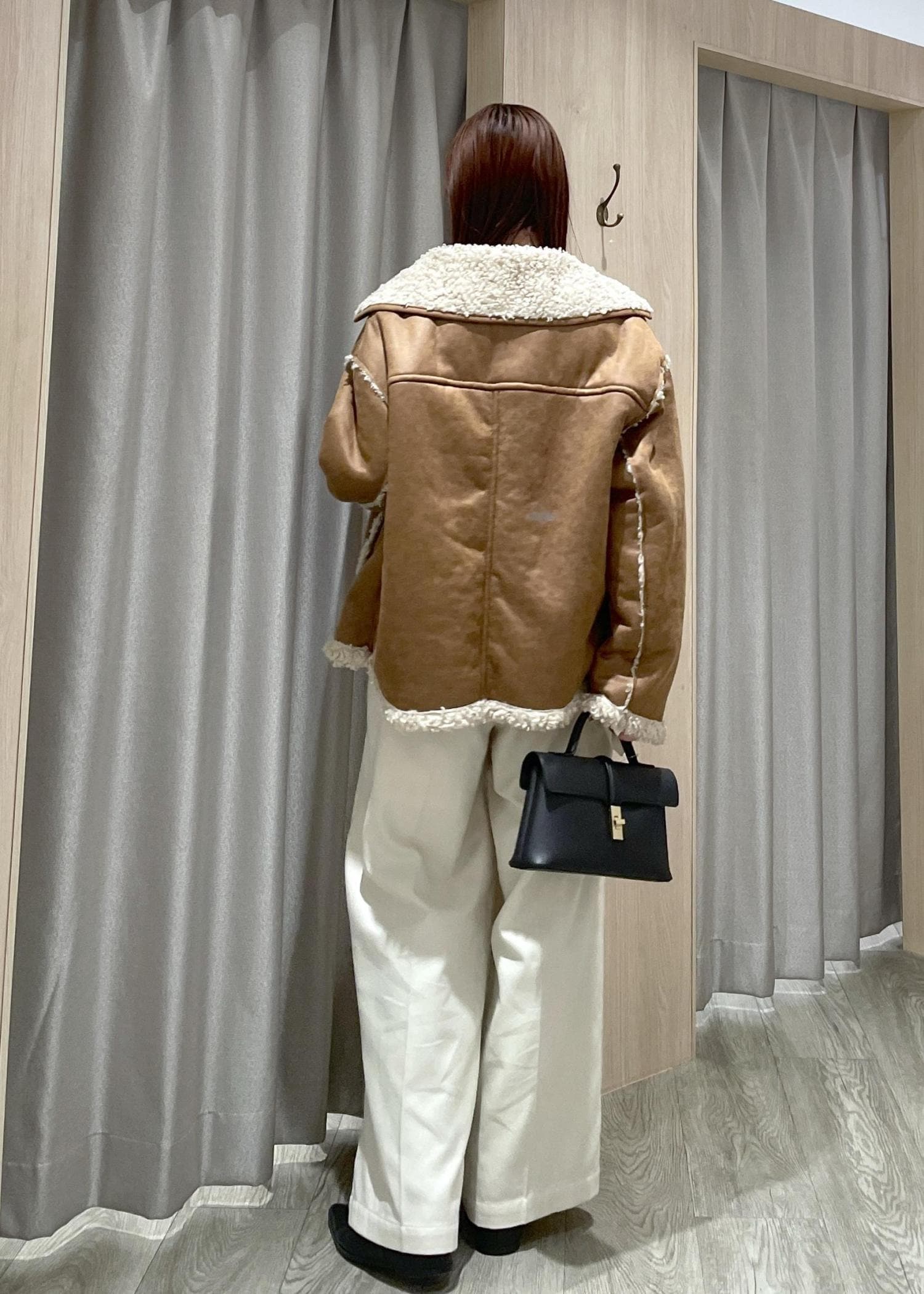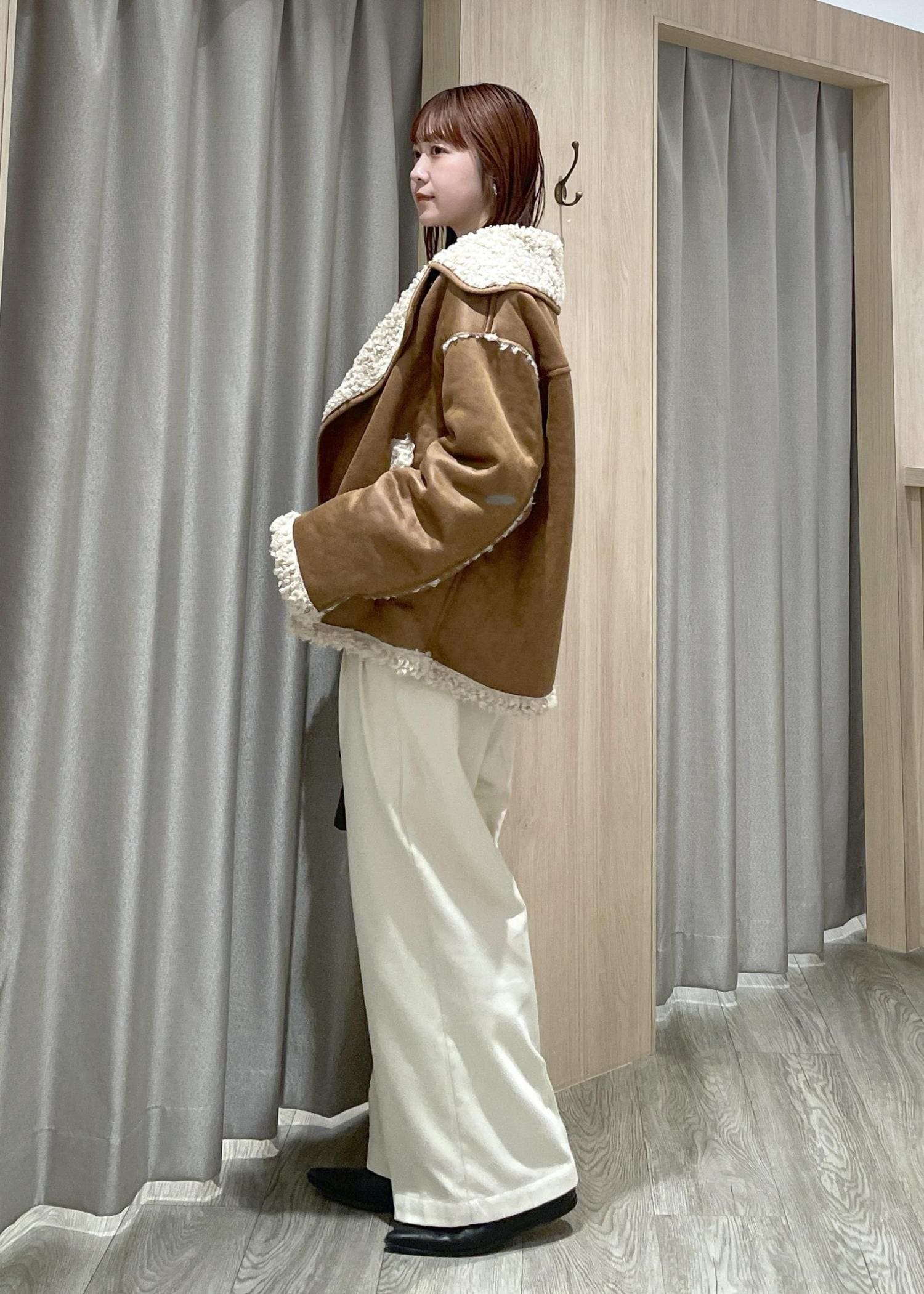 VISフェイクムートンジャケットキャメル / F¥11,264レビュームートン×ボアのトレンド感ある冬アウター!たっぽりとしたオーバーサイズで、着るだけで可愛いシルエットが完成します♡骨ストさんは着膨れが気になりますが、襟元は大きめに空くのでスッキリ見えも叶います!