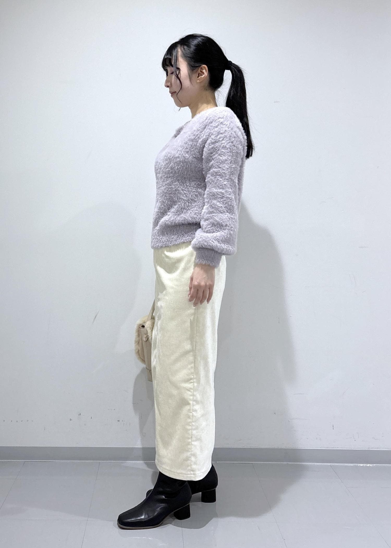 ショート丈なので、ロングスカートやワイドパンツとバランスをとりやすいです◎ -