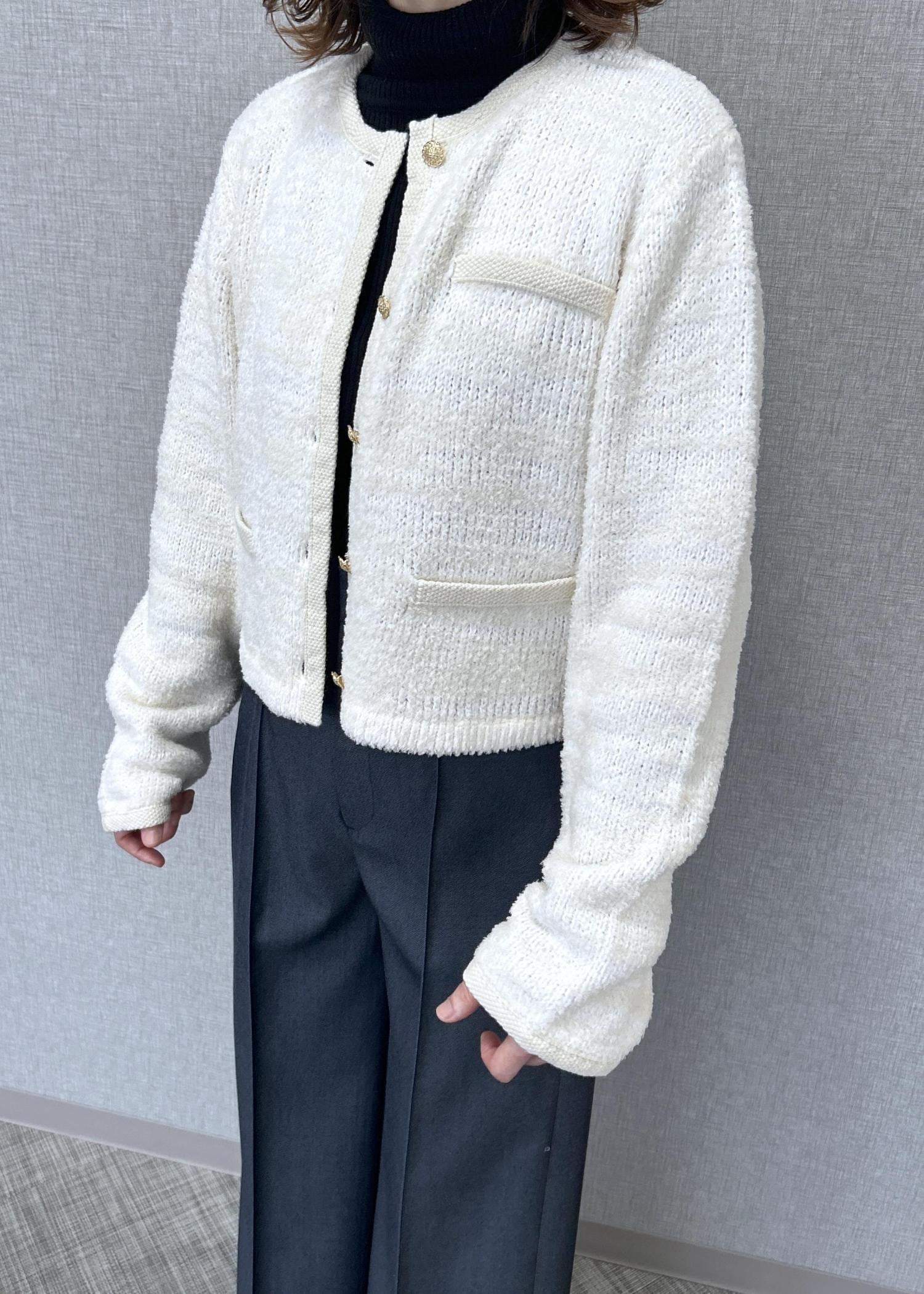 - ツイードニットショート丈カーディガン