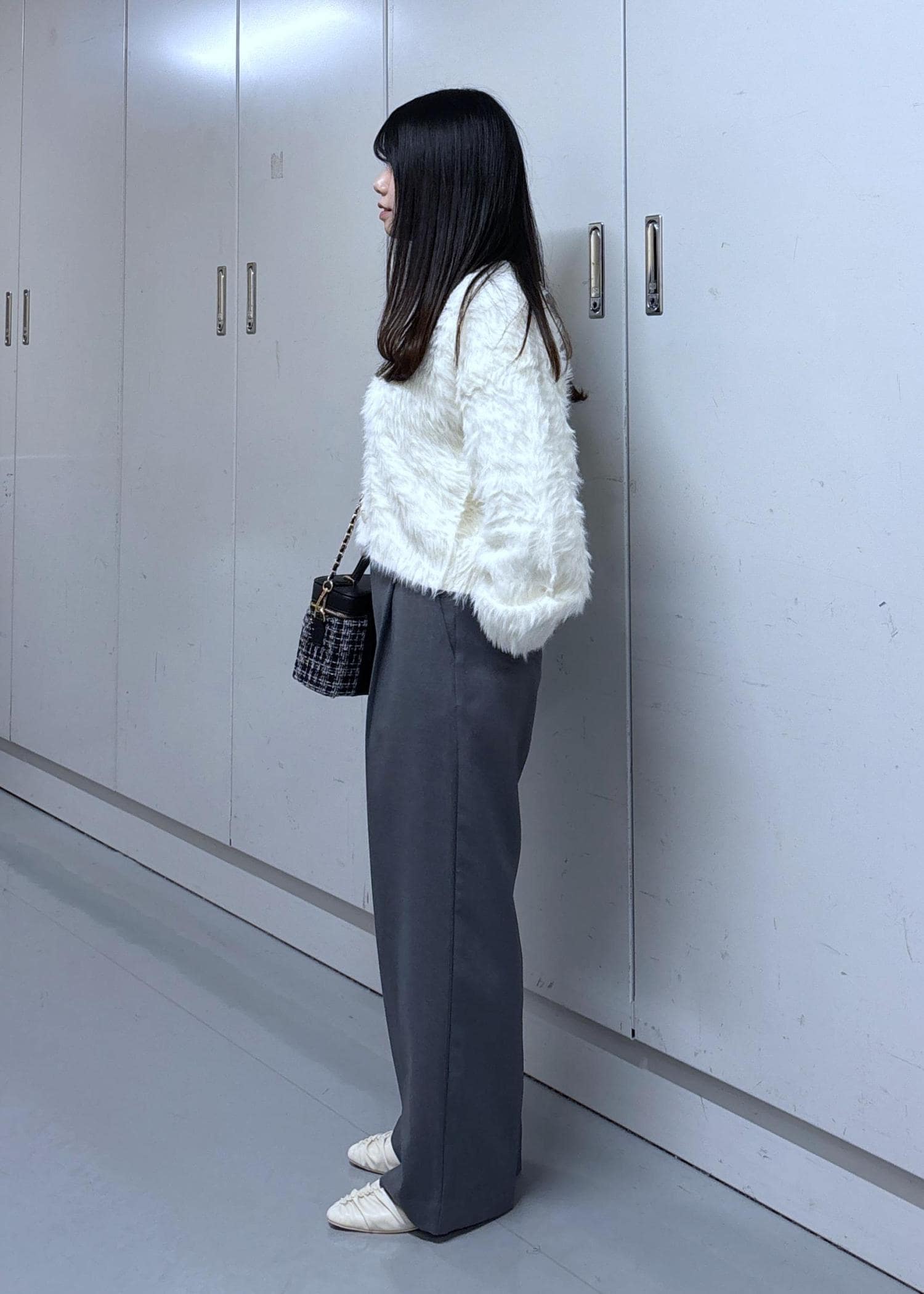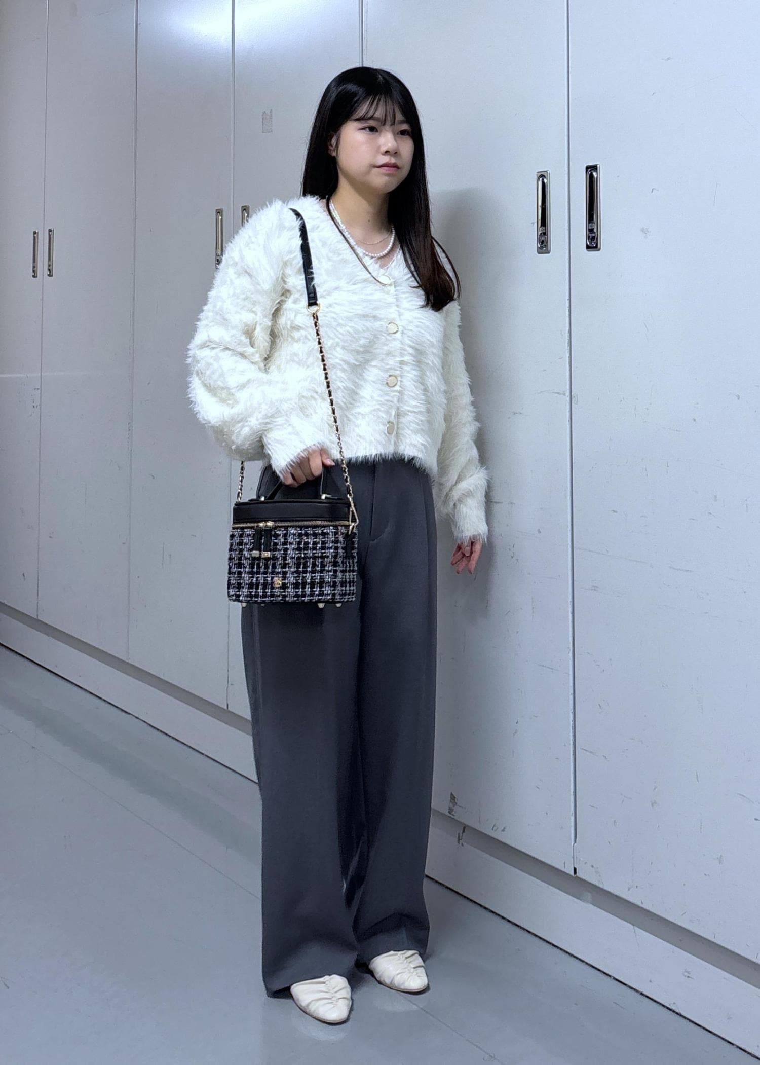 VISラビットライクVネックカーディガン/イージーケア・WEB限定カラーオフホワイト / F¥5,336レビュー153cmでお腹が隠れるくらい、袖は少し長めです。