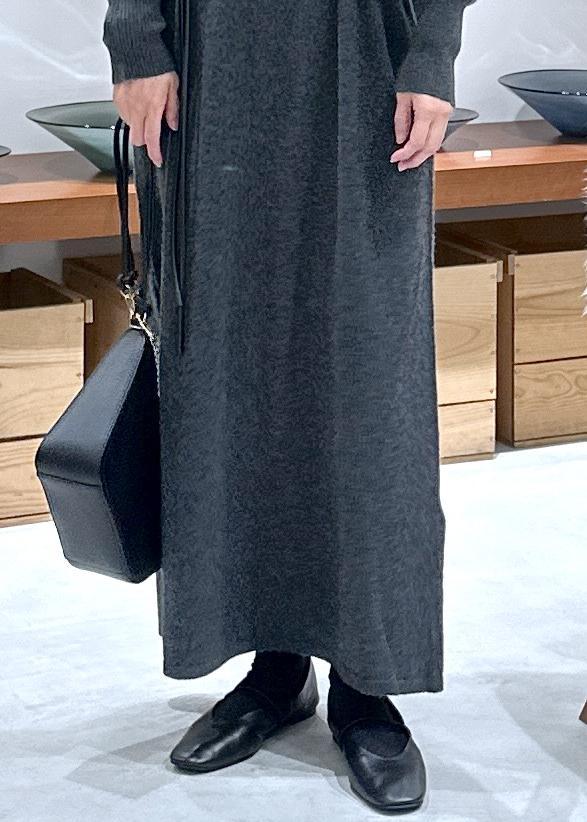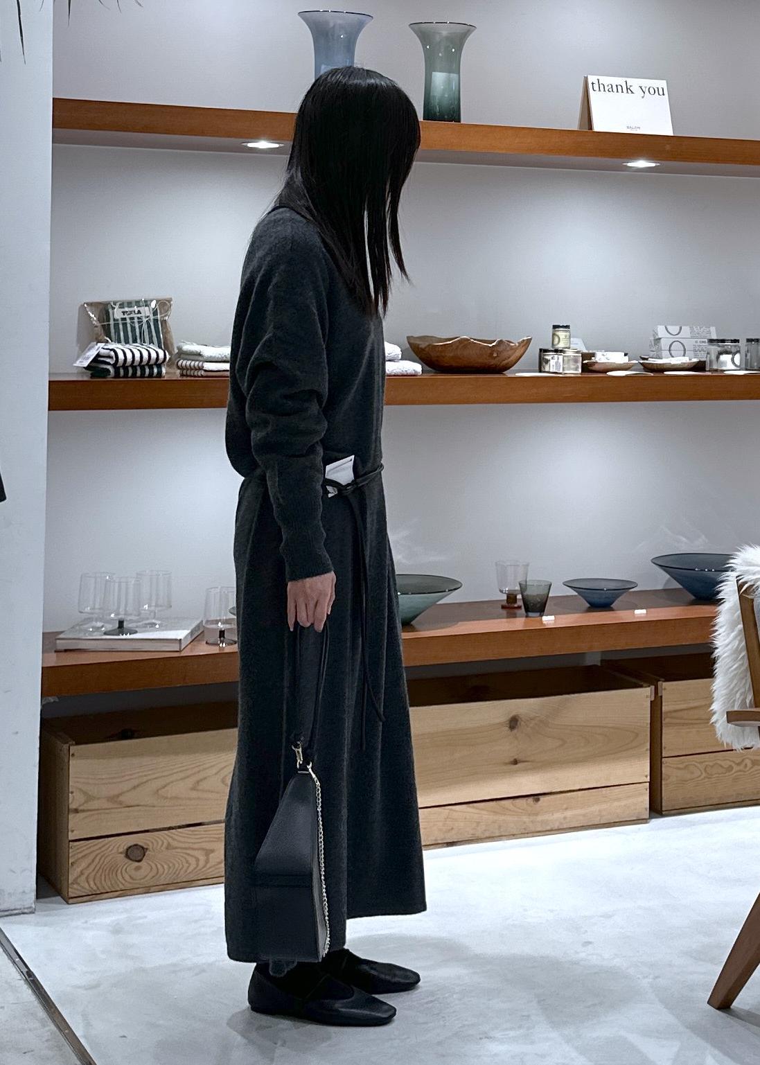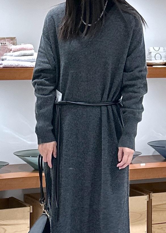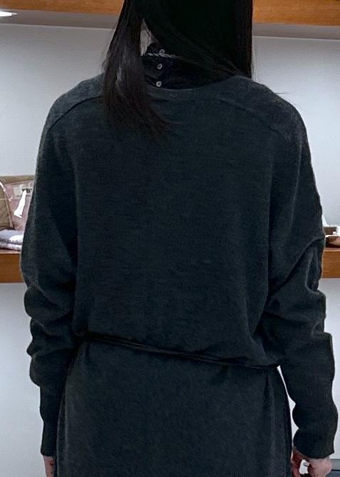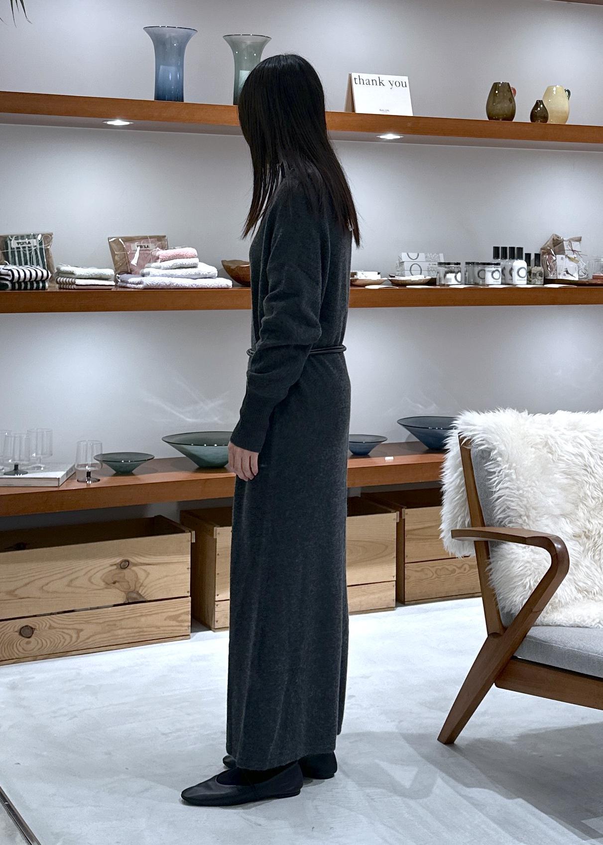 SALON adam et ropéカシミヤニットVネックワンピースチャコール / F¥23,760レビュー158cmで足首の上ぐらいの丈の長さぐらいです。