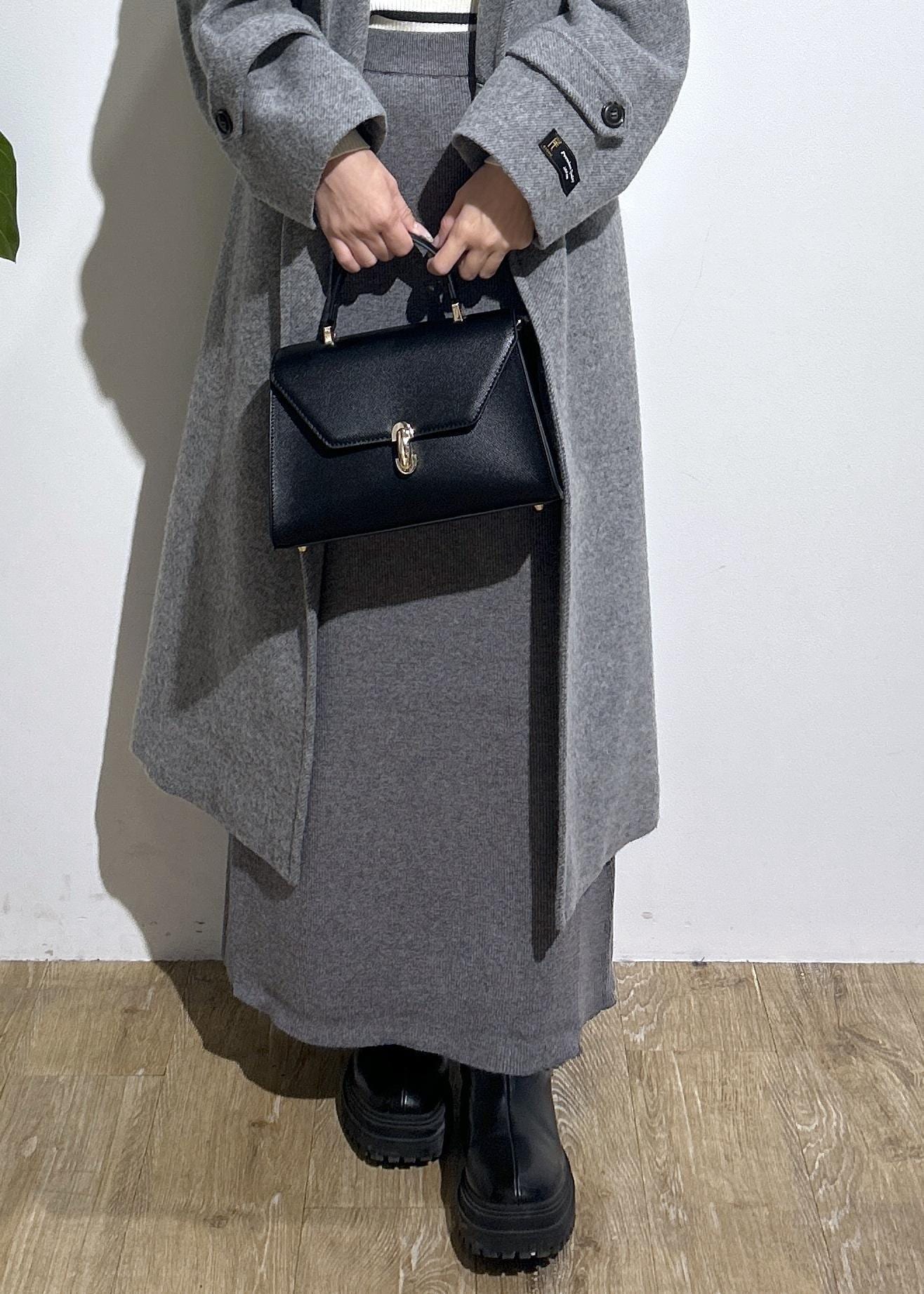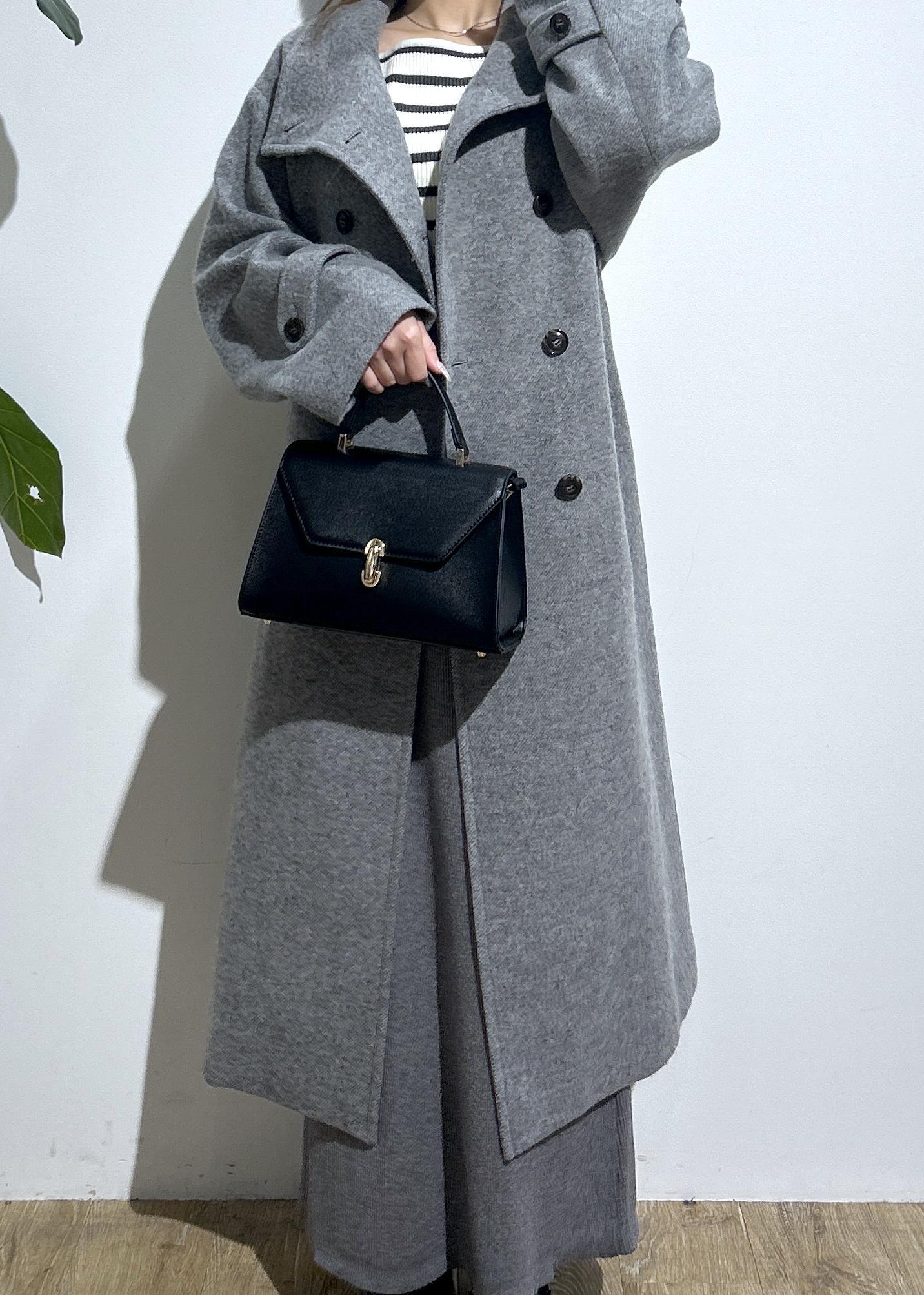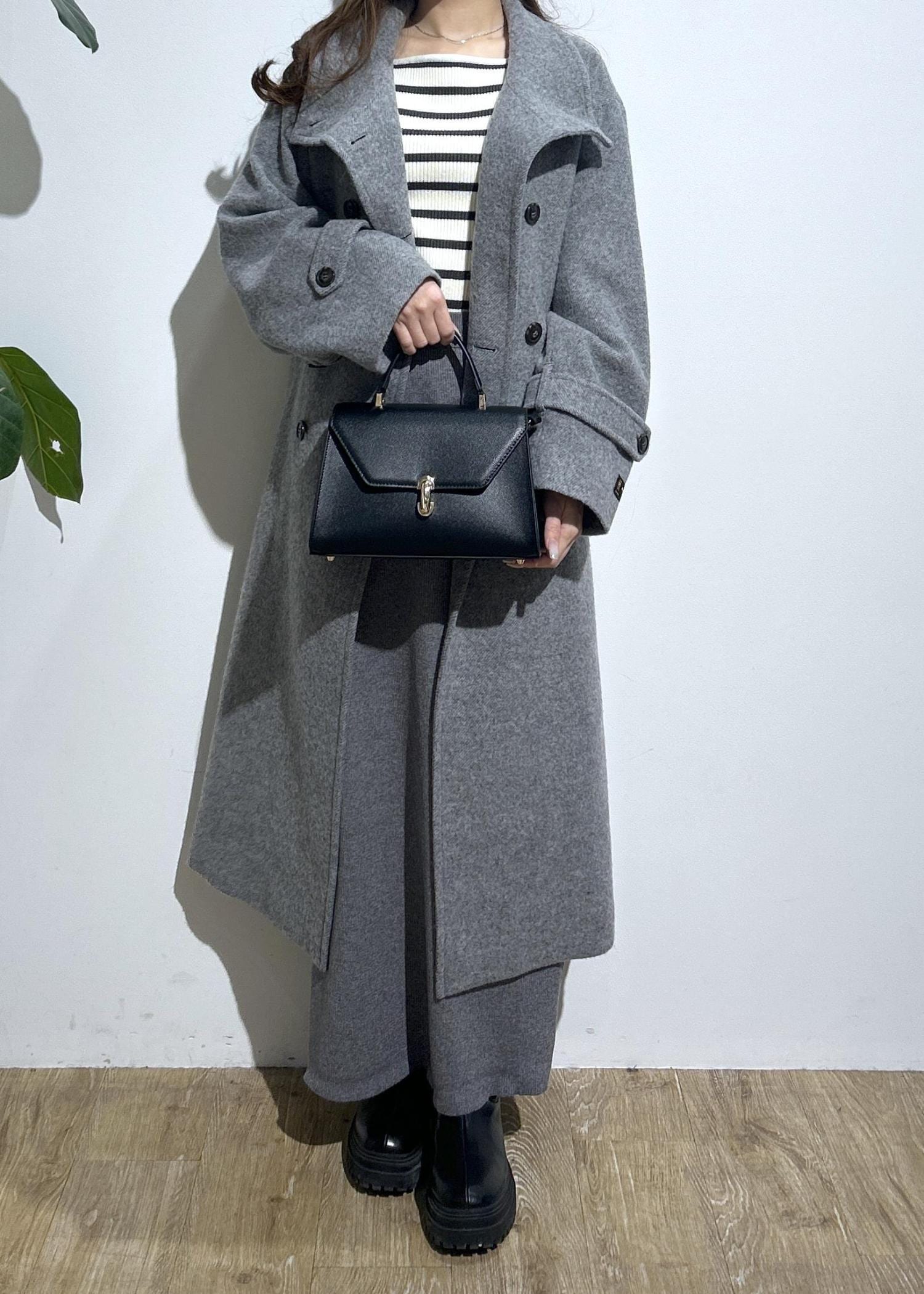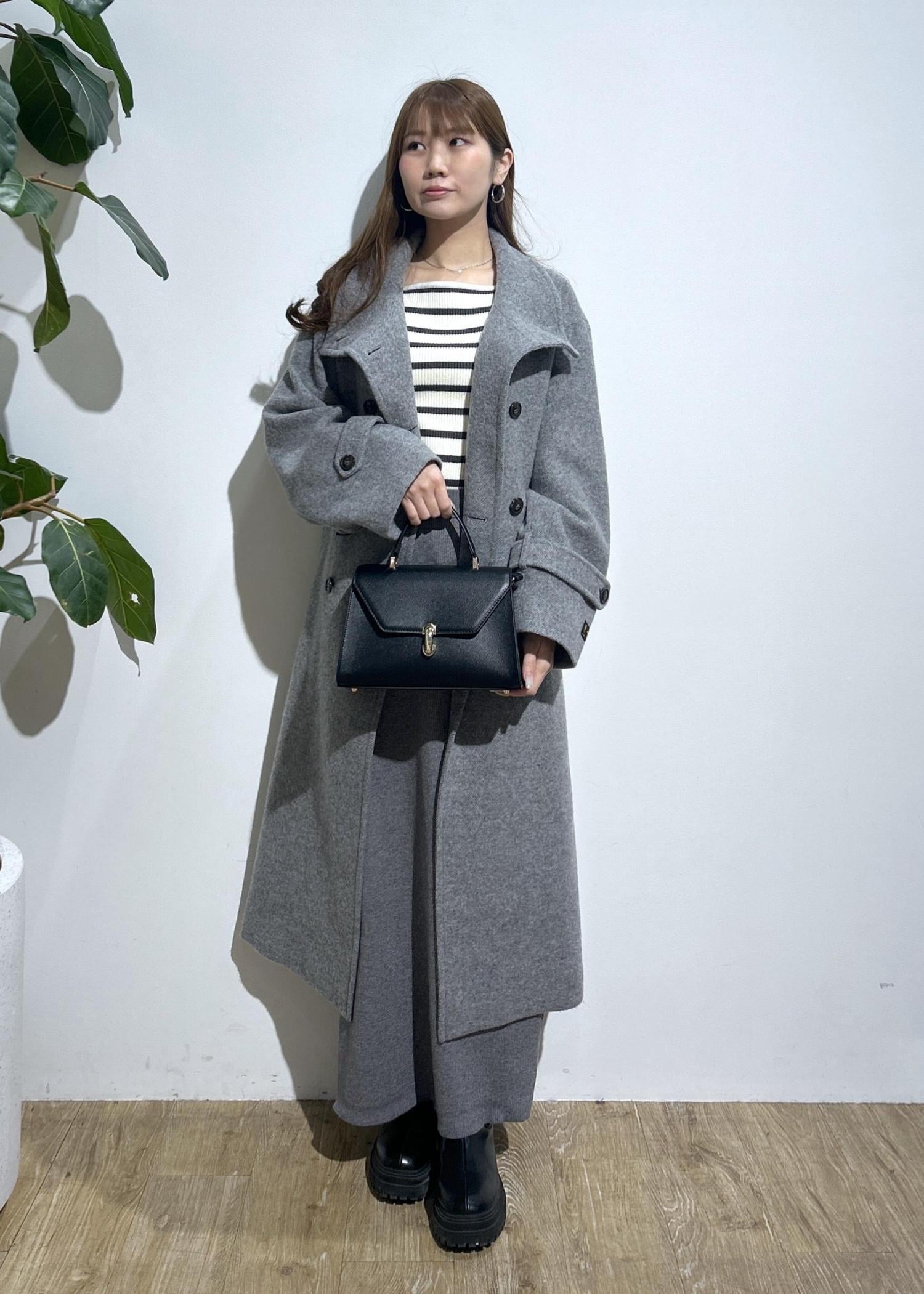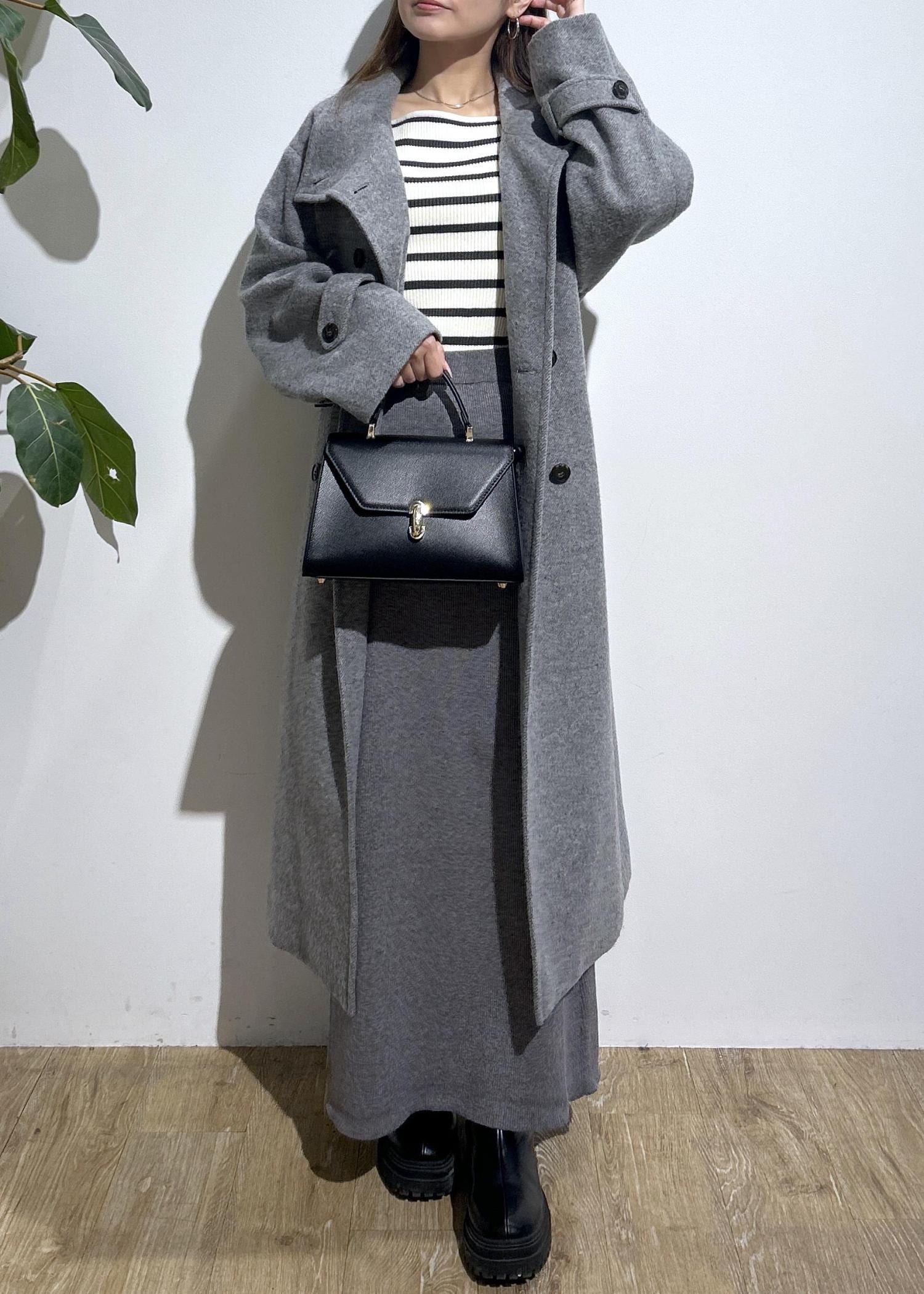 ボーダーのトップスにグレーのコートとスカートを合わせてみました。シンプルですが品のある大人の女性コーデです。お出かけにぴったりのおすすめコーデです♡