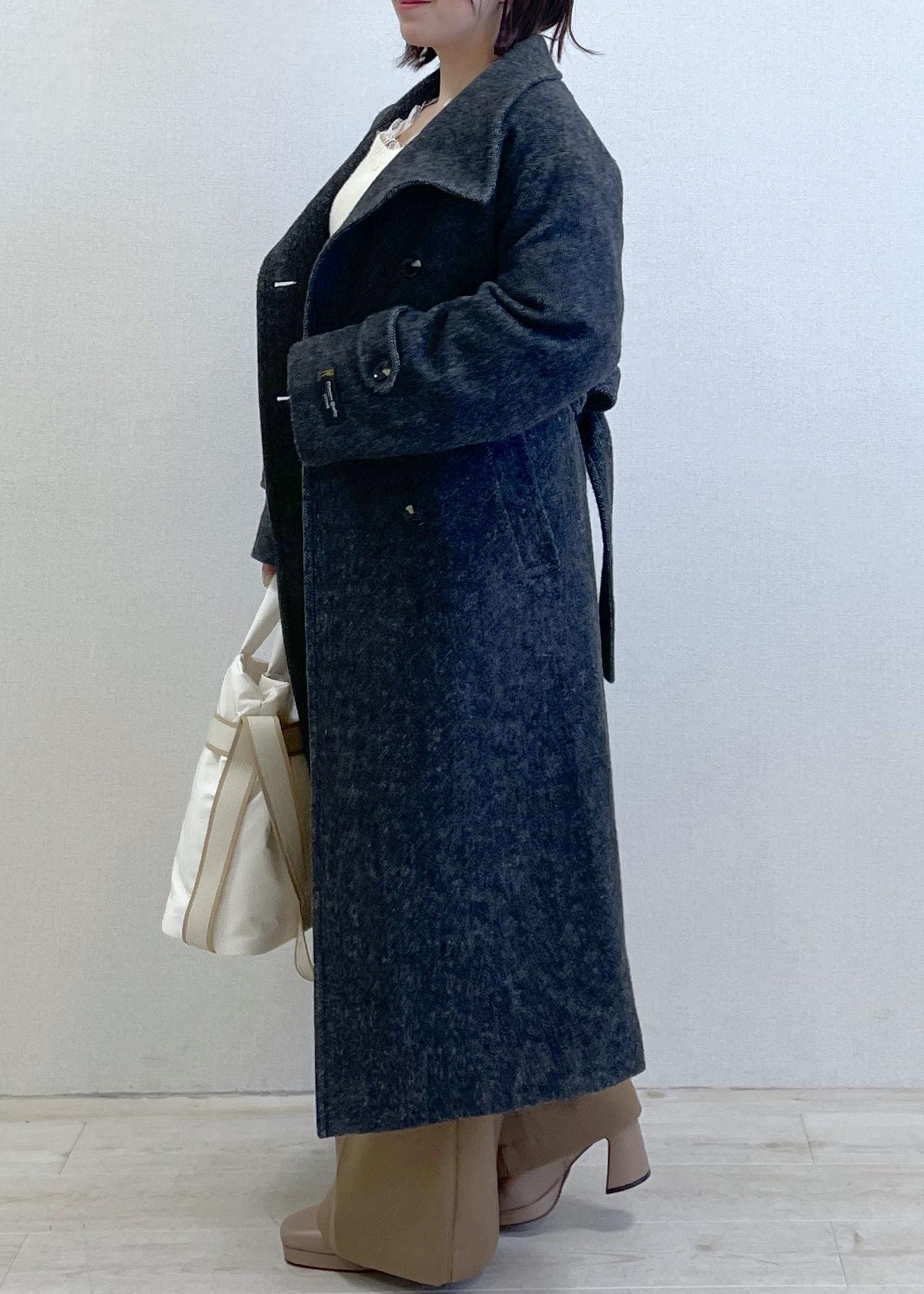 VIS尾州シャギースタンドカラーロングコート/静電気防止・WEB限定PS・TMサイズチャコール / S¥17,512レビュー150cmでSサイズ着用です。