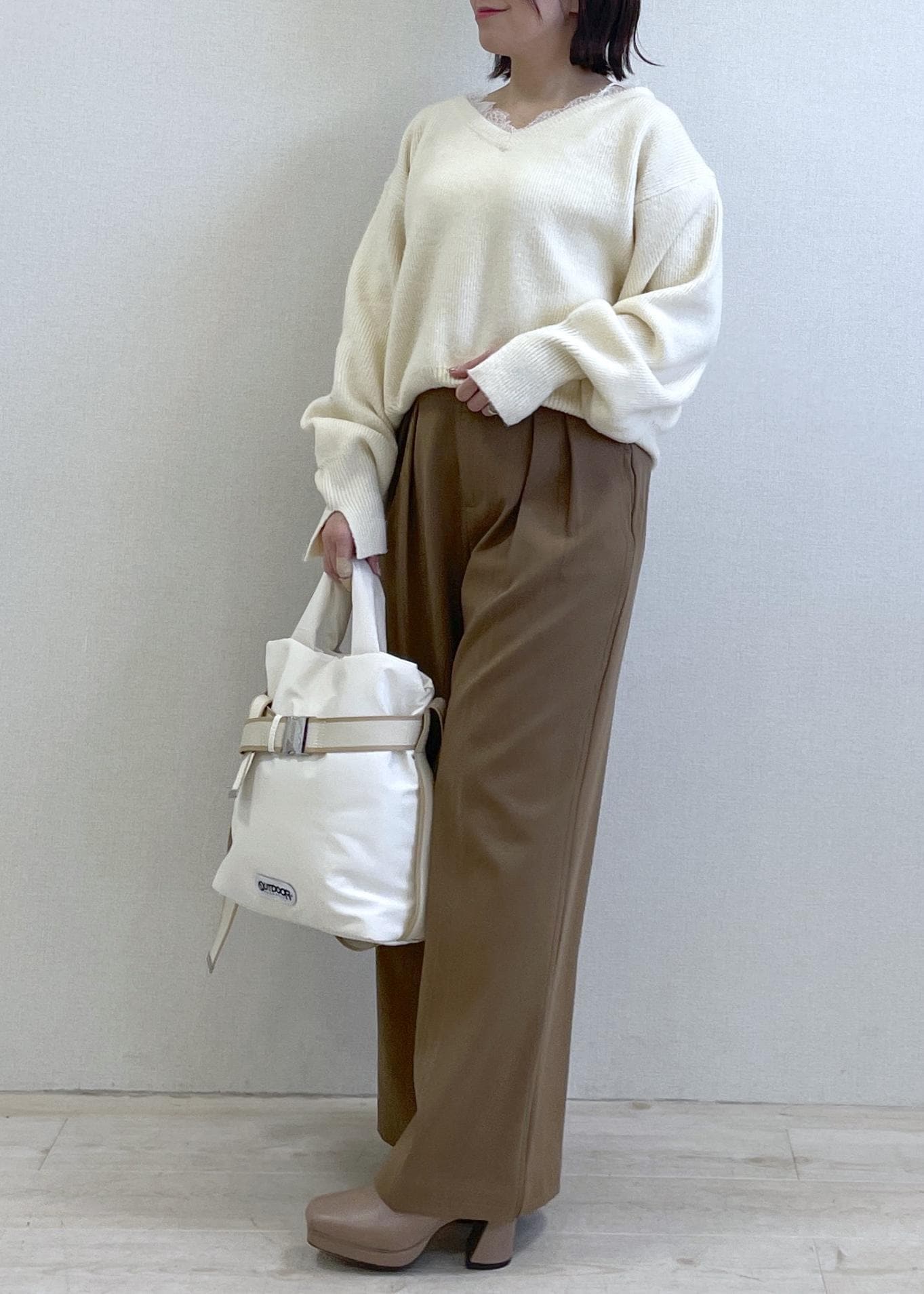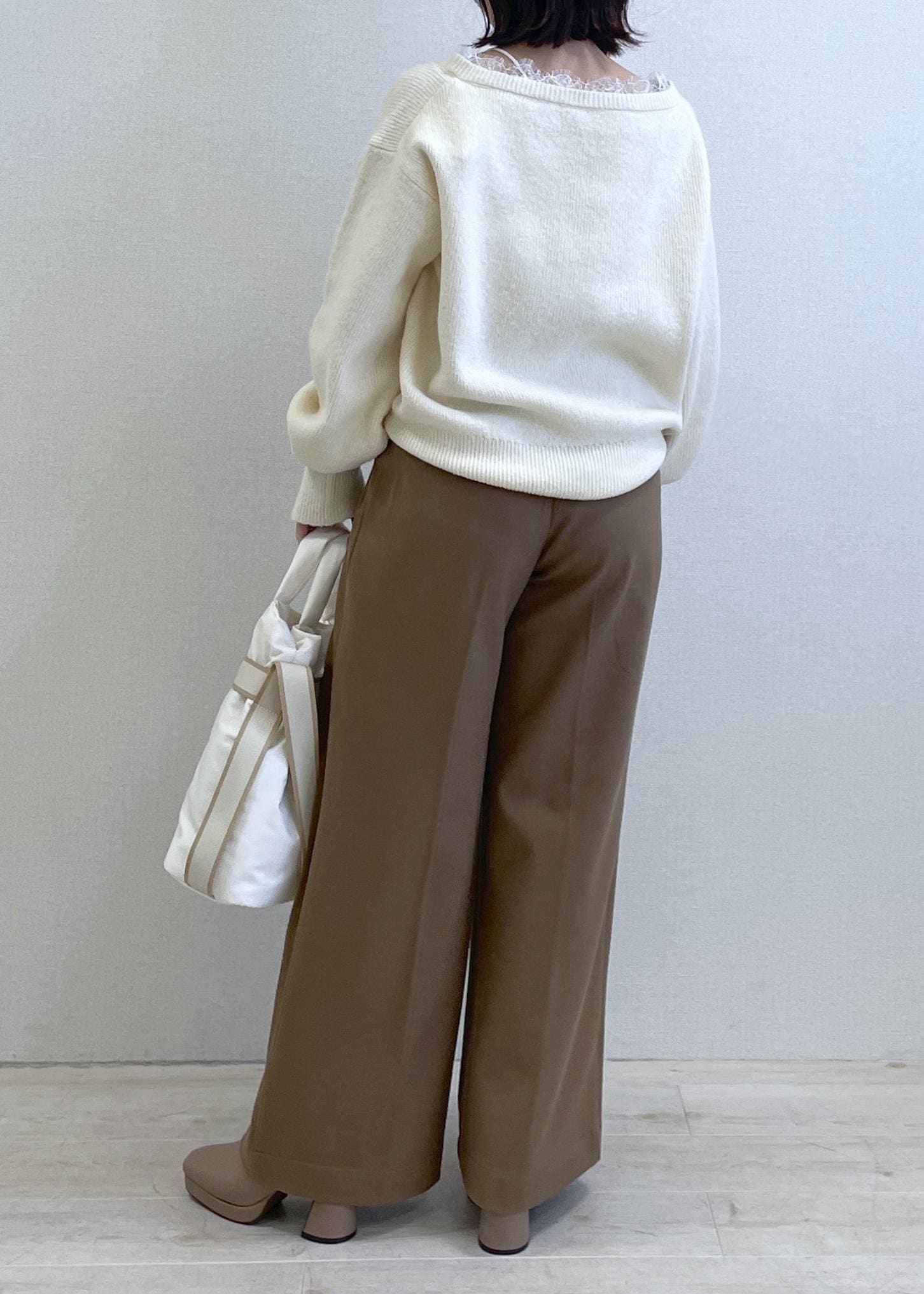 襟のレースがポイントで、さらにVネックなので抜け感が出てスッキリ着用できます。