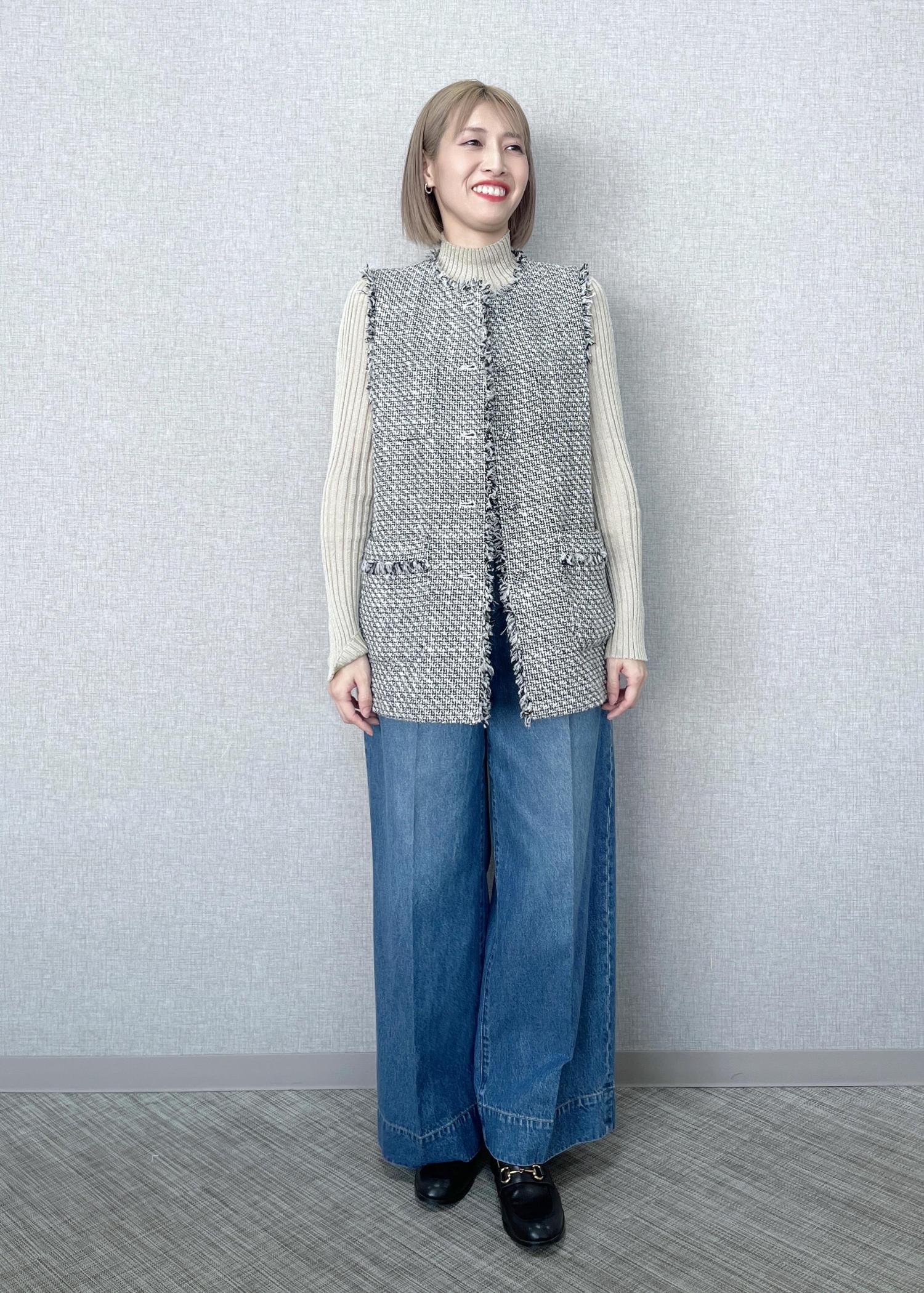 上から更にジャケットを羽織っていただきかっちり見えしたスタイルにするのもかっこいいです。