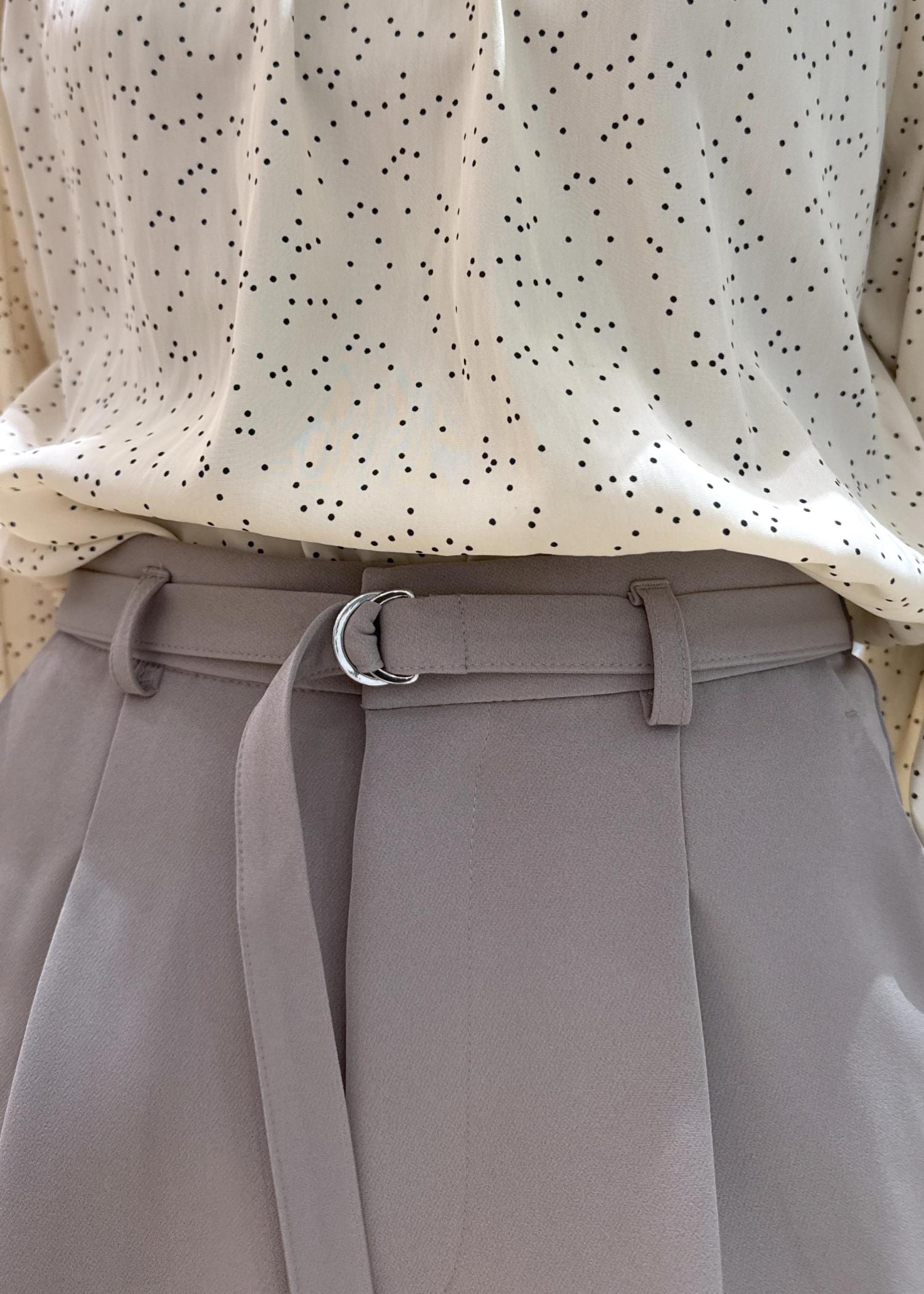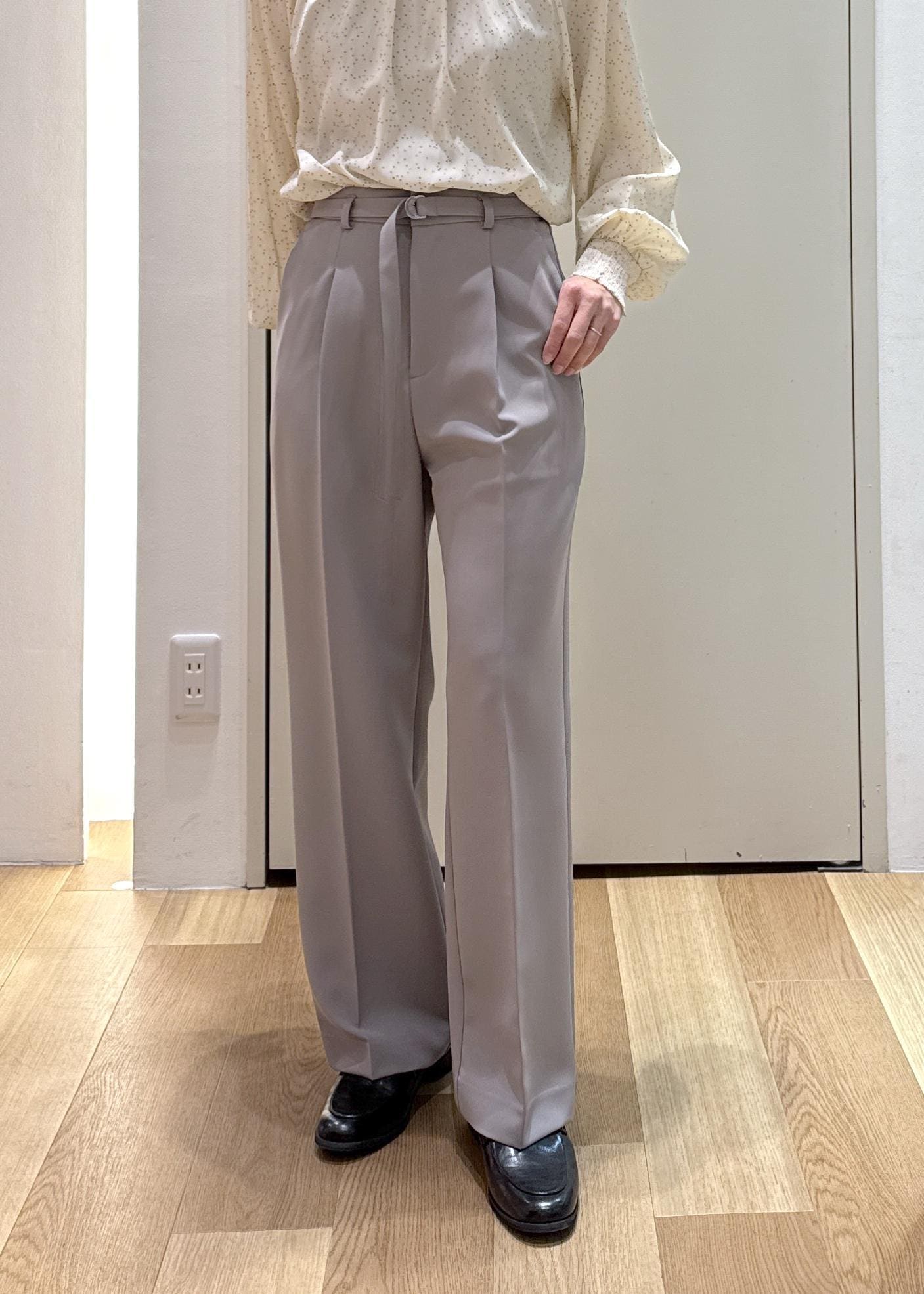 こちらのセットアップは同素材でテーパードパンツもありますが、ワイドパンツだとベージュでも甘くなりすぎず、大人な雰囲気に♪