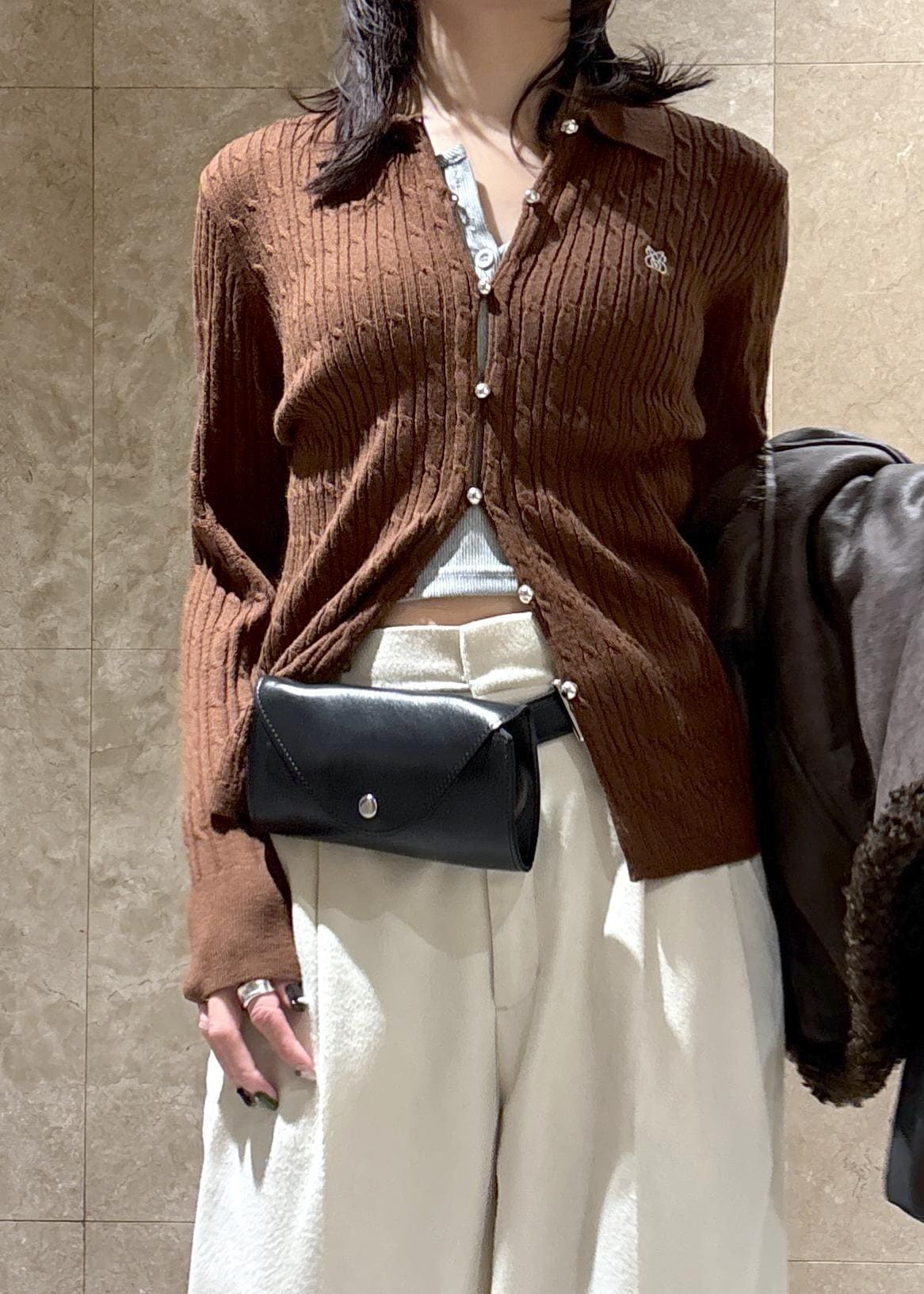 2BUY10%OFFVISポロ衿ケーブルカーディガンダークブラウン / F¥4,743レビューすっきりした落ち感のある素材で、あっさりしたニットなので、長いシーズン着用できます。