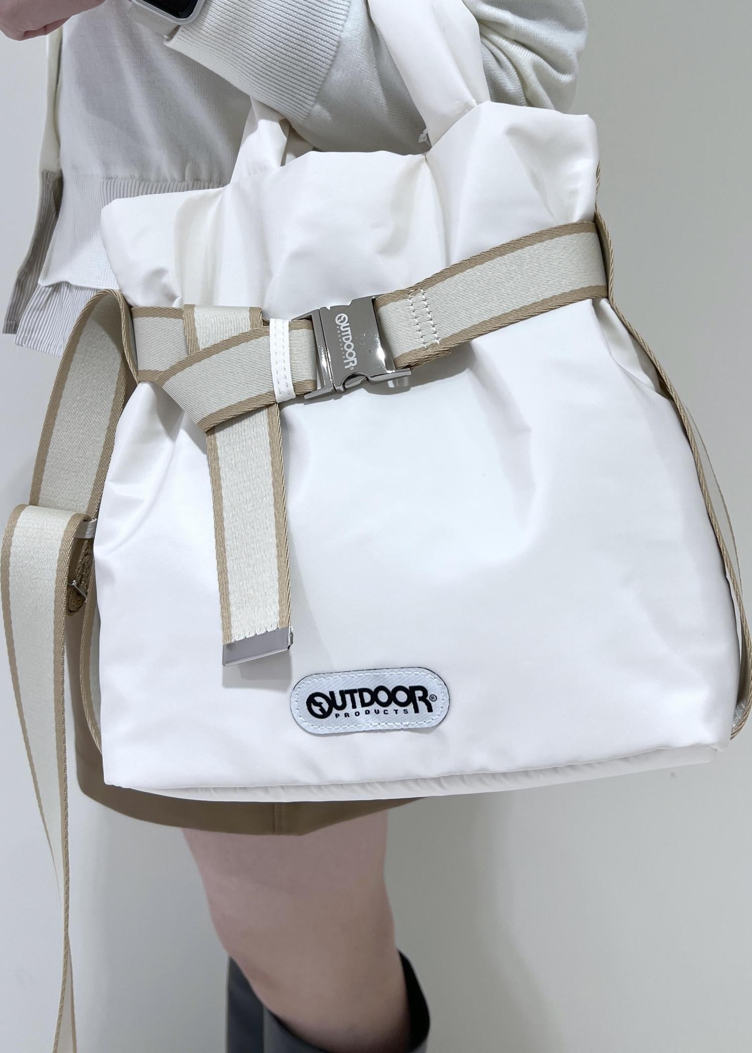 NEW!VIS【OUTDOOR PRODUCTS】VIS別注2WAYベルト付きパデッドトートバッグキナリ / F¥8,580レビュー長財布やペットボトルが余裕で入るサイズ感でした。マチもあるので+aで荷物が入ります◎
