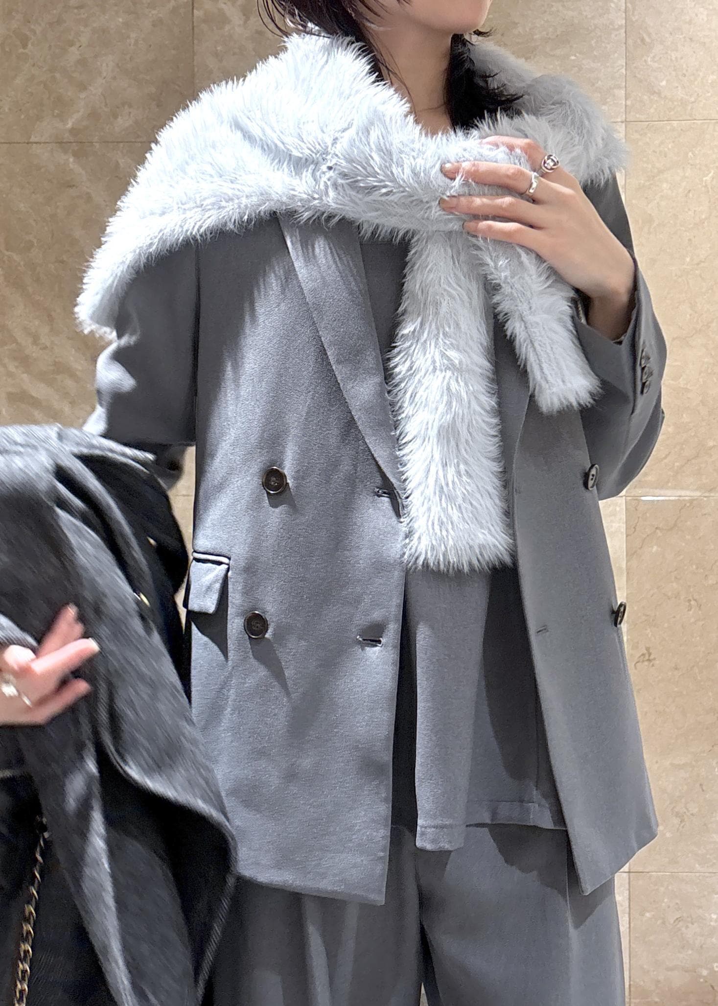 VIS【期間限定価格】美easyウーリッシュダブルブレストテーラードジャケット【セットアップ対応/洗える】グレー / M¥8,009レビューふっくらした生地感。