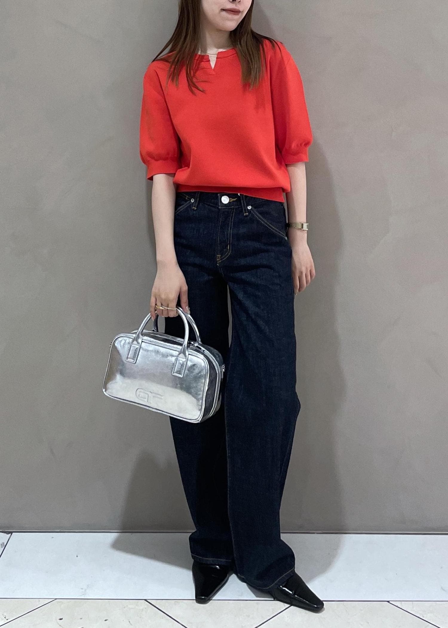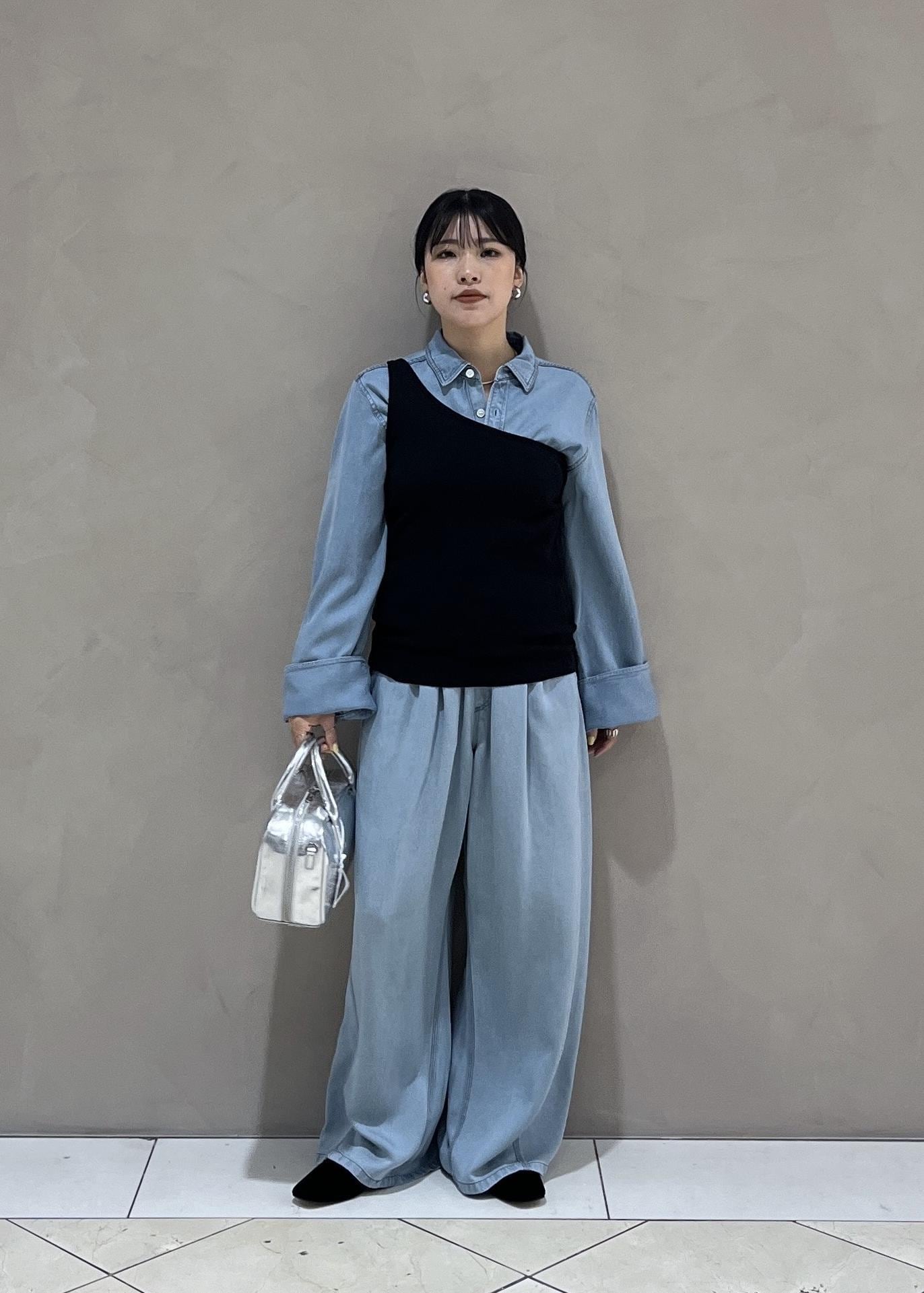 タイトめなトップスなので、ボトムスはワイドシルエットをチョイス!
