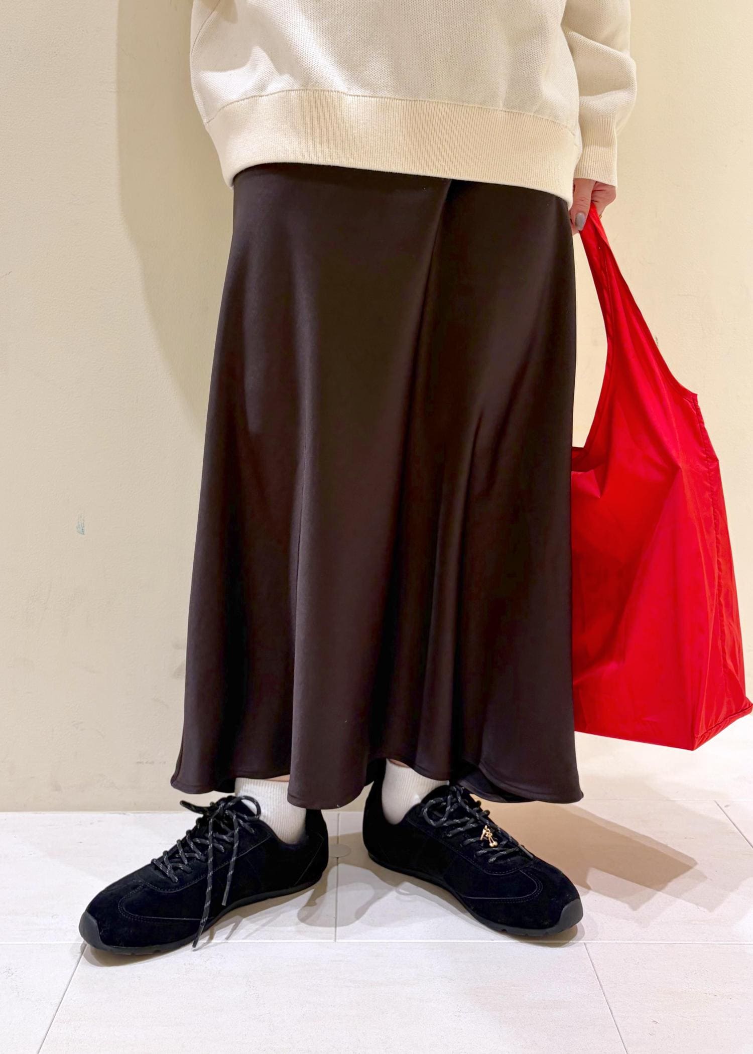 2BUY10%OFFROPÉ PICNIC細見えバイアスサテンスカート/イージーケアダークブラウン / F¥6,490レビュー柔らかく細身シルエットでスッキリ見えのロングスカート。
