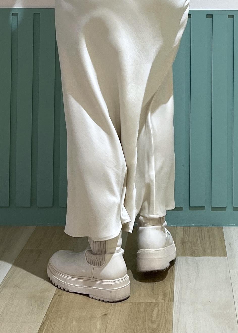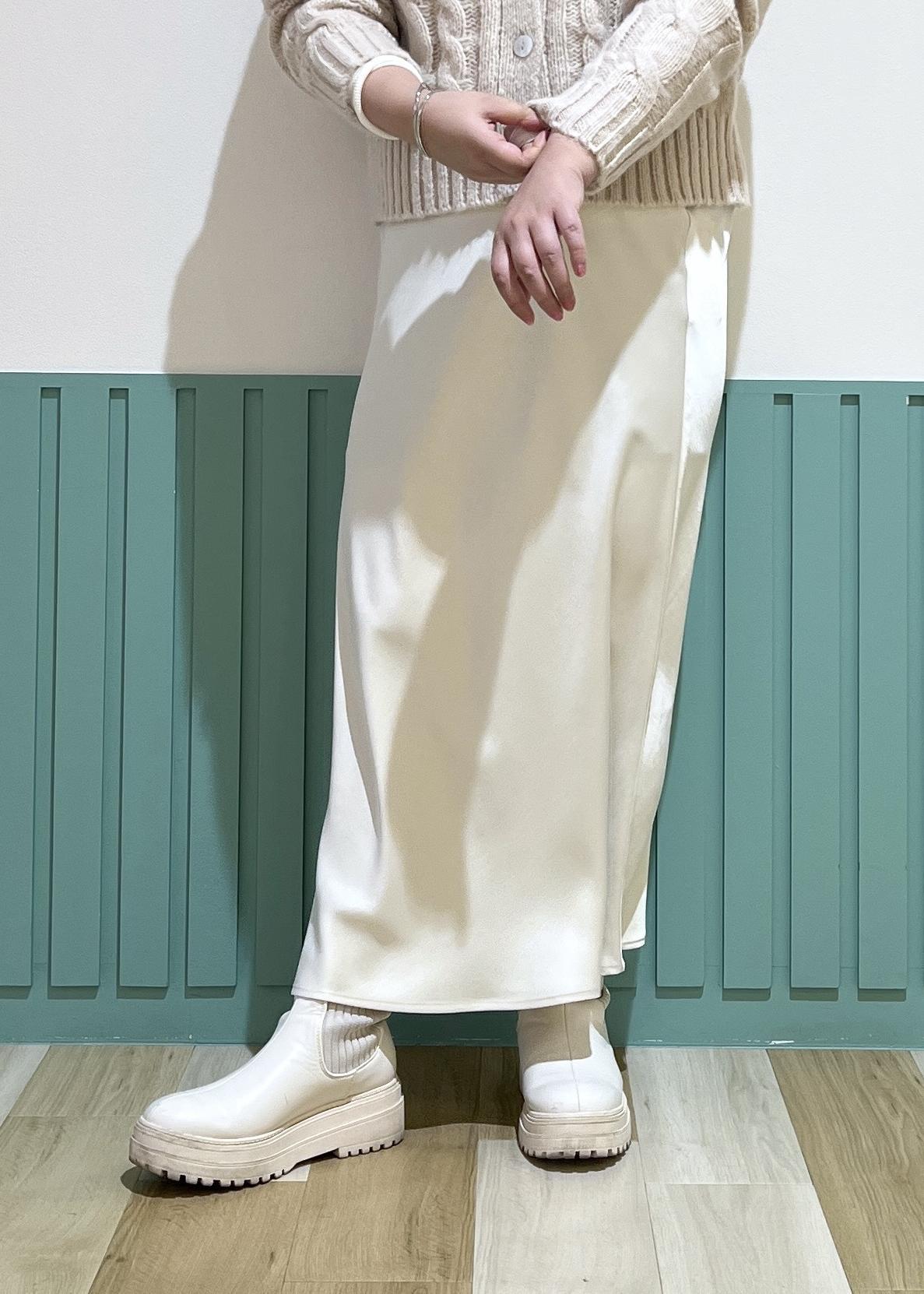 2BUY10%OFFROPÉ PICNIC細見えバイアスサテンスカート/イージーケアオフホワイト / F¥6,490レビュー上品な光沢感のある素材感が