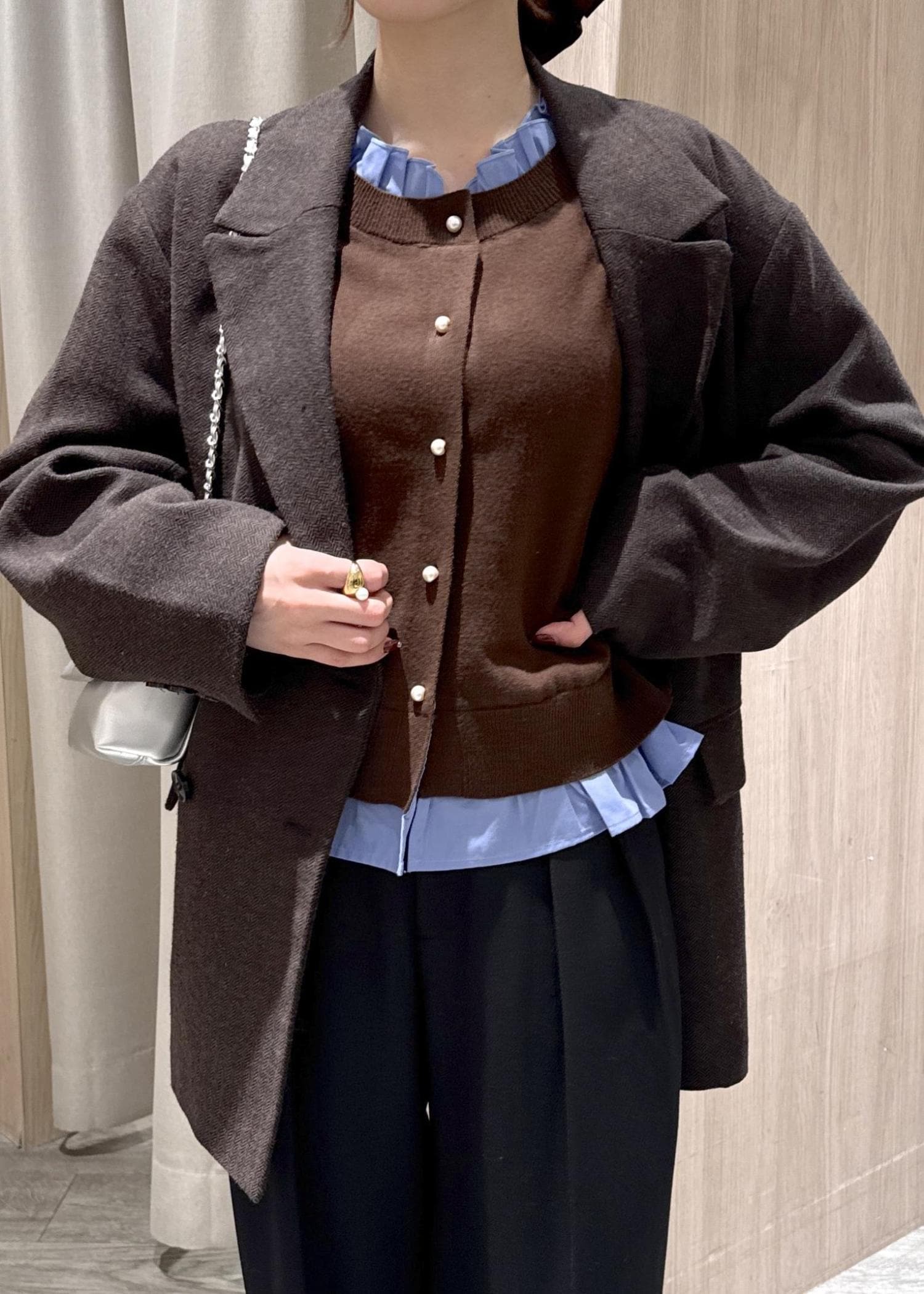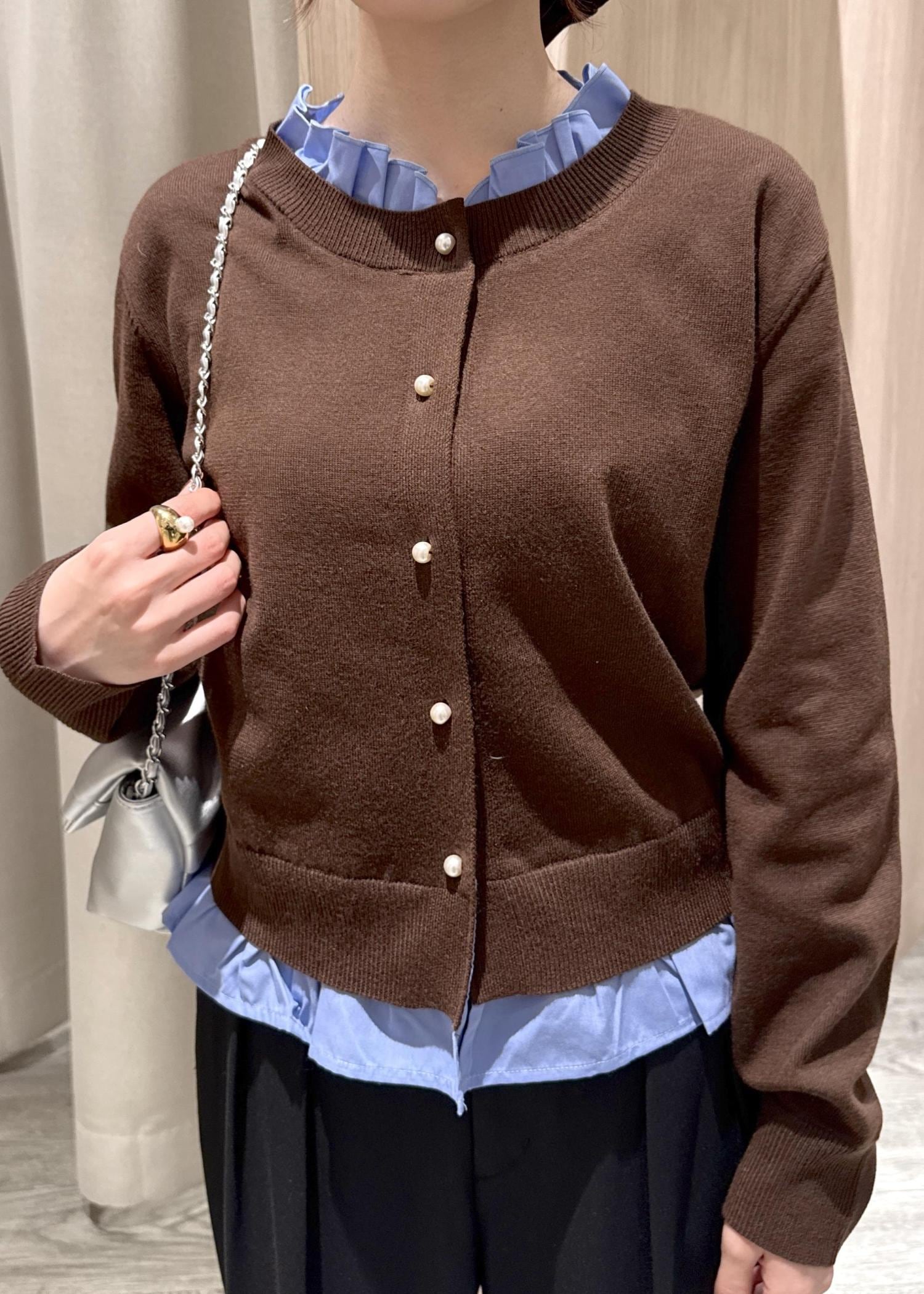 2BUY10%OFFVIS【美得】フリル襟ドッキングニットカーディガントップスダークブラウン / F¥5,929レビュー身長157cm / Fサイズ着用