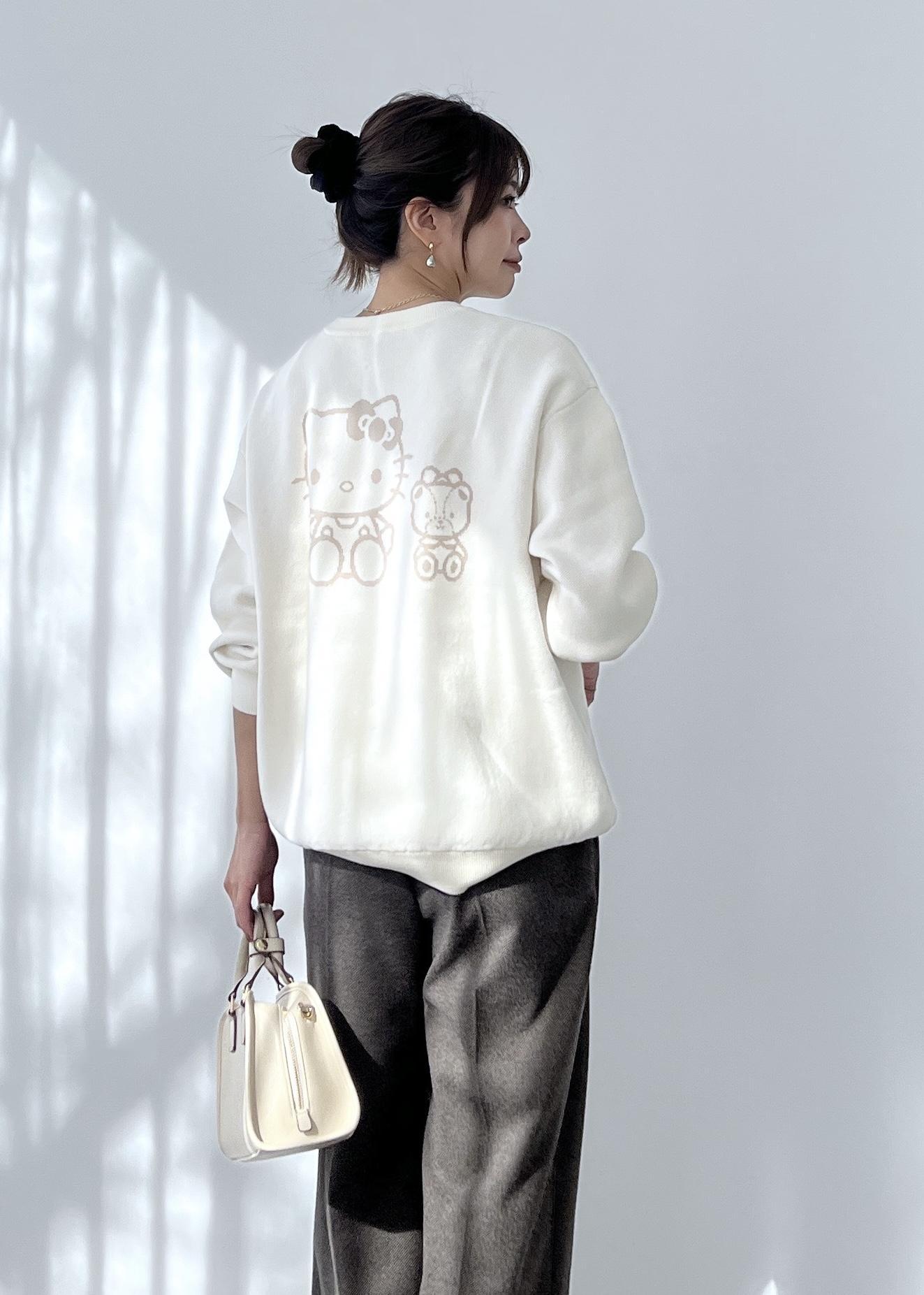 ハローキティの刺繍デザインがかわいいニットは、ゆったりシルエットで着心地も楽ちん。