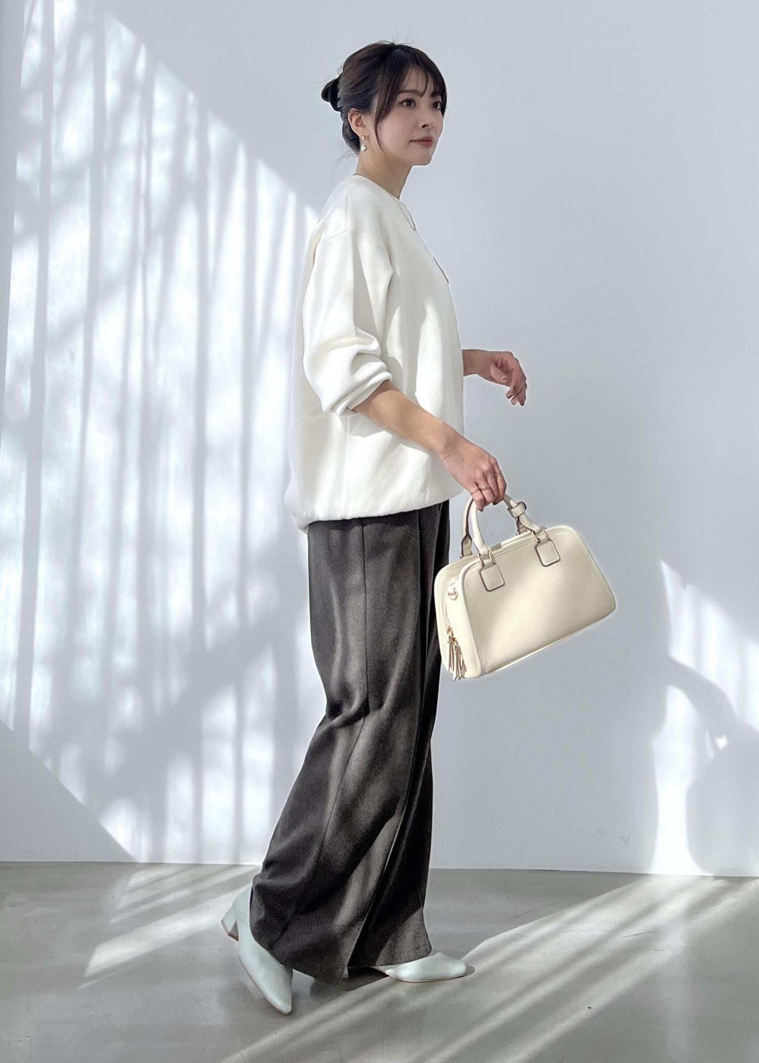 筒幅にゆとりがあるので脚のラインを拾わず履きやすいシルエット。