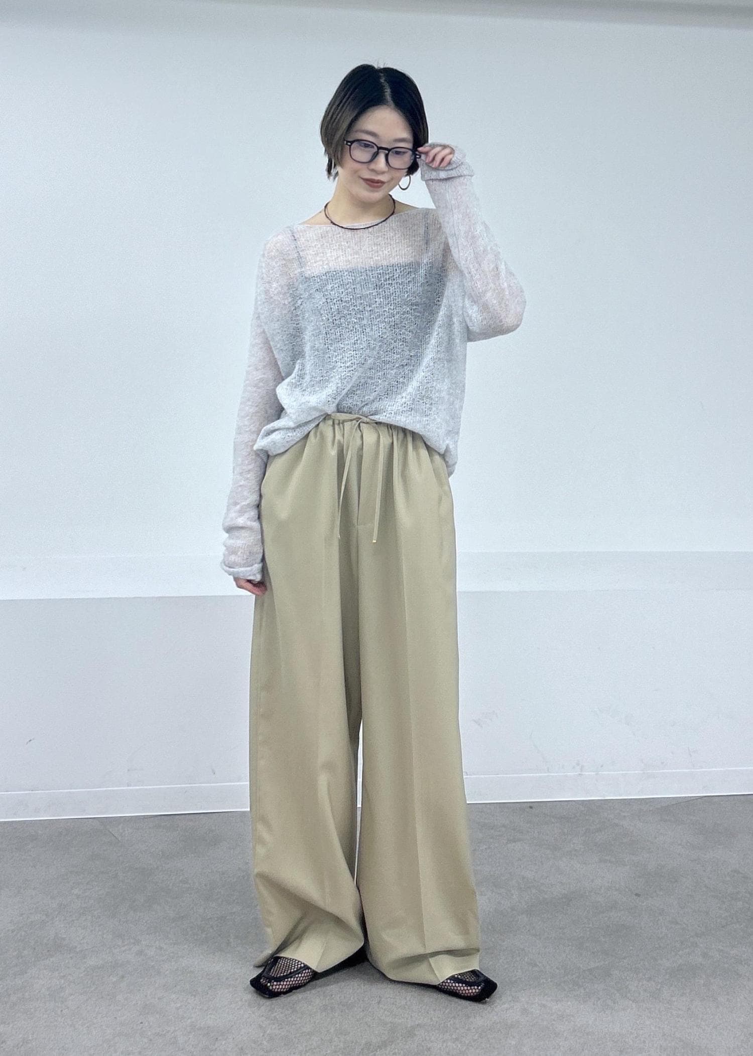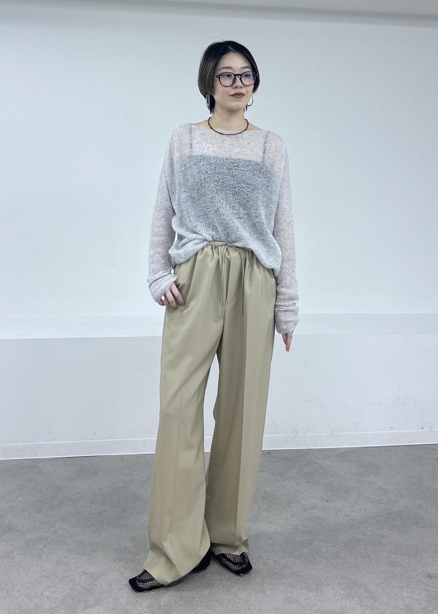 シアー感強めなので、ロンTやシャツとレイヤードしたり、春先はキャミソールと合わせてヘルシーな抜け感を出すのがおすすめです♪