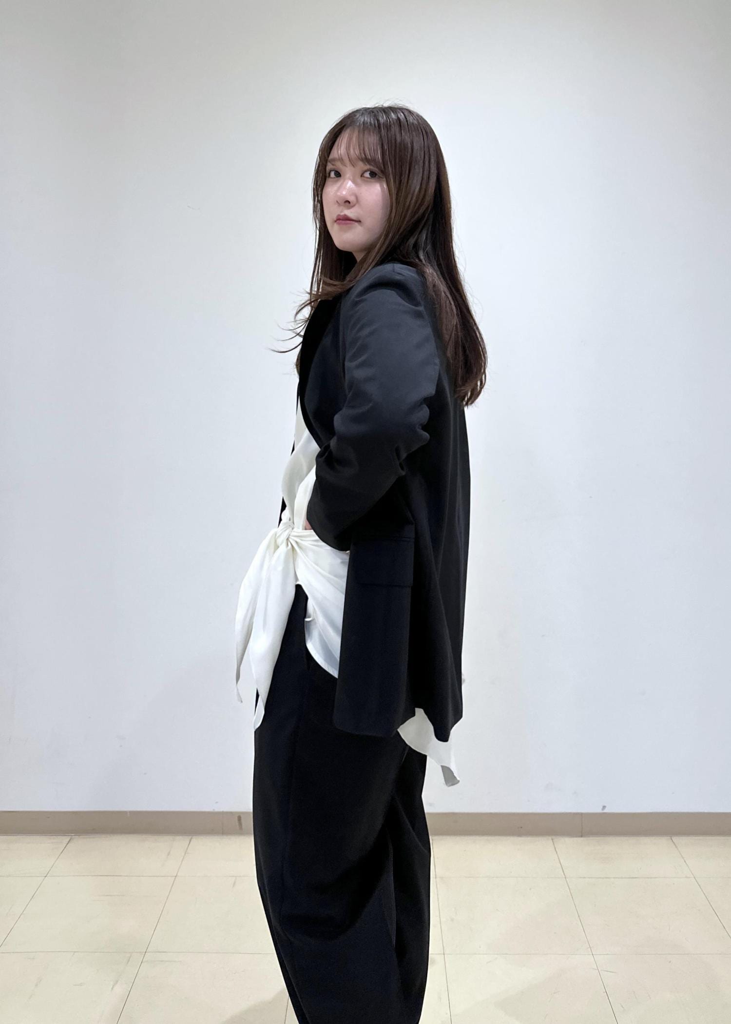 ADAM ET ROPÉ FEMMEイージースラックスブラック / 36¥22,000レビュー白い紐が付いたスラックスパンツ。36サイズを着用しましたが、ヒールや厚底を履いてもちょうど良いくらいの長さで履けました。