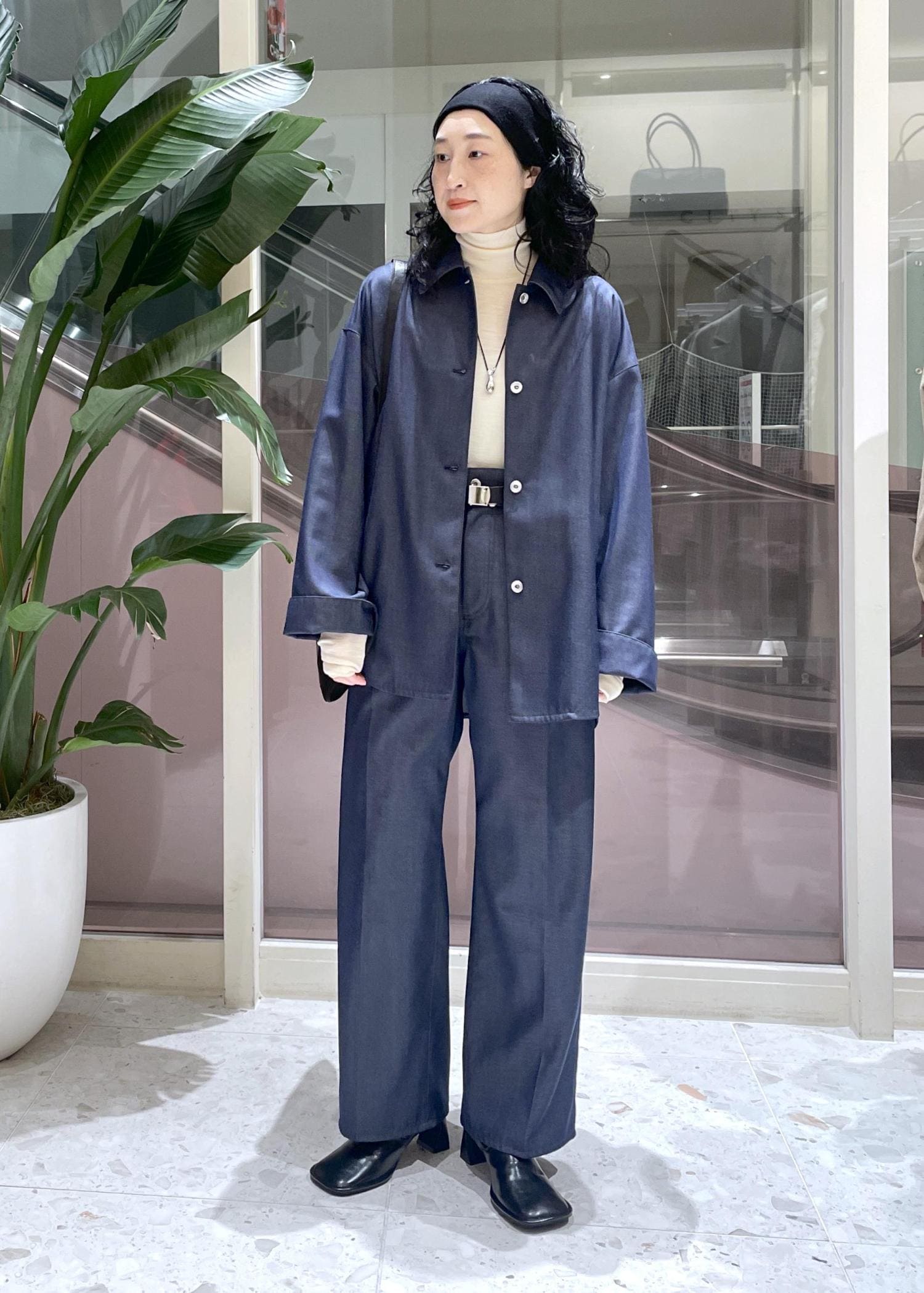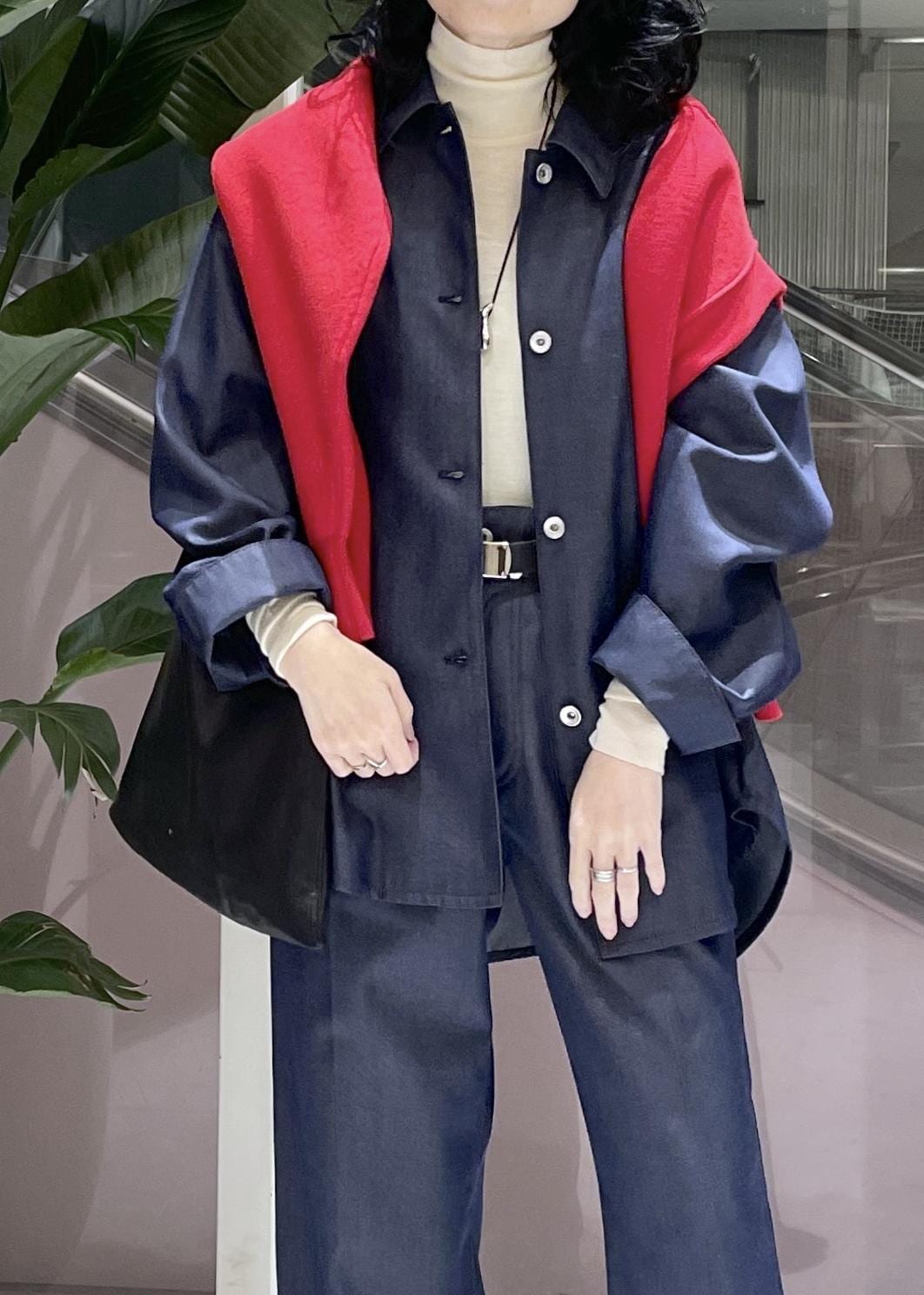 パンツのシルエットもワイドすぎず、デニムでもカジュアルになりすぎないのが良いです。