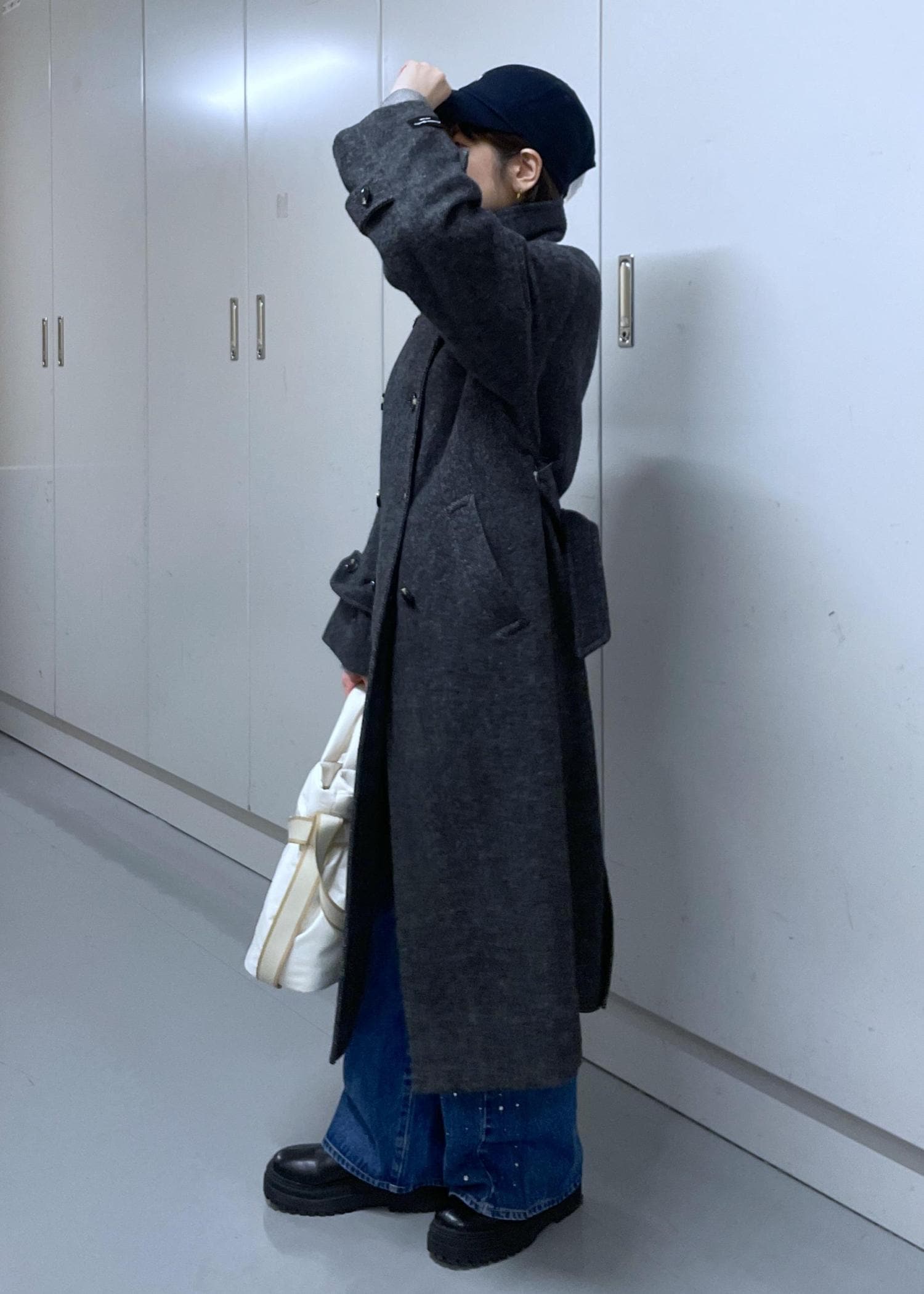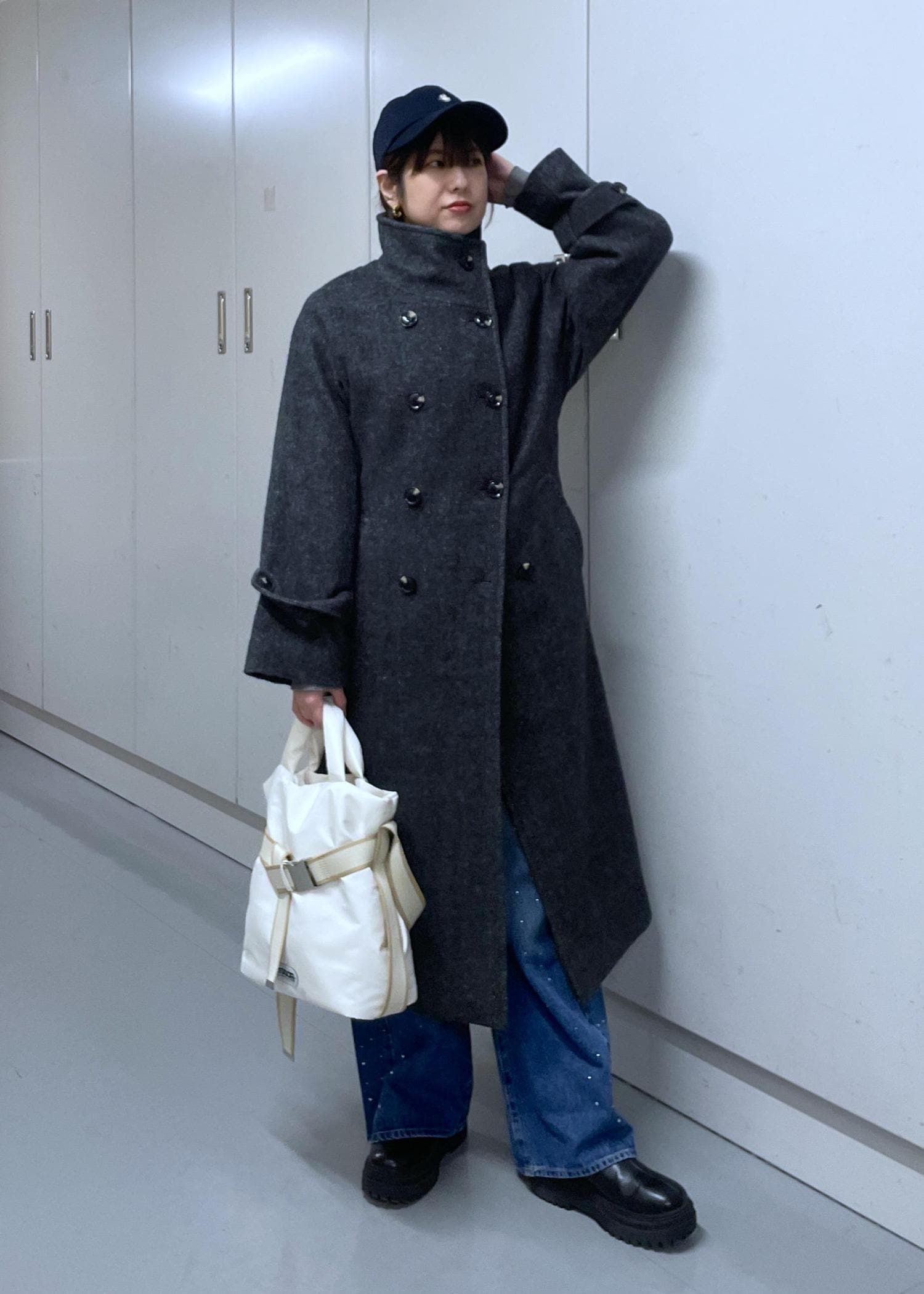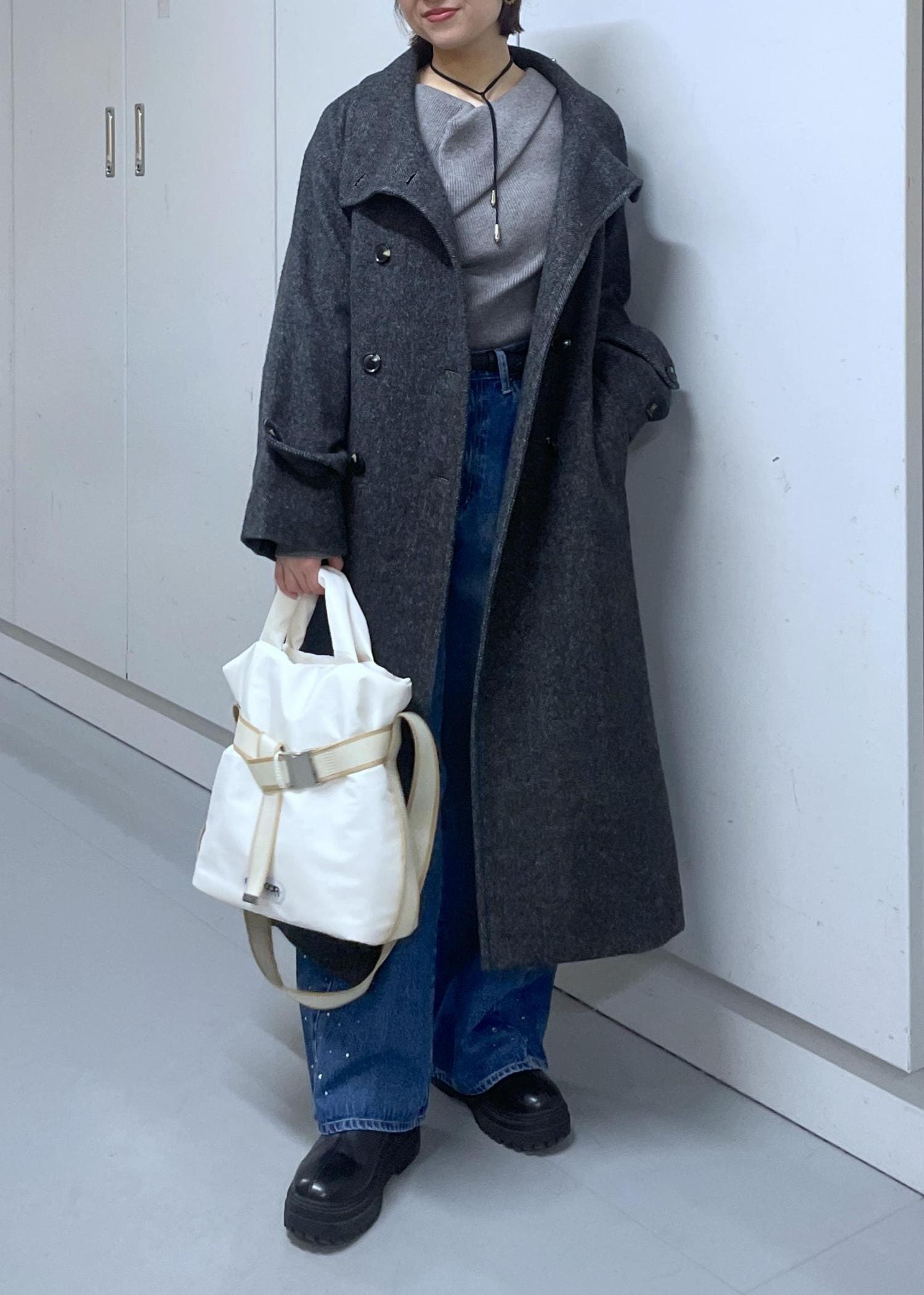 Sサイズでも肩周りやアームにゆとりがあり、ニットの上からも羽織りやすいです。