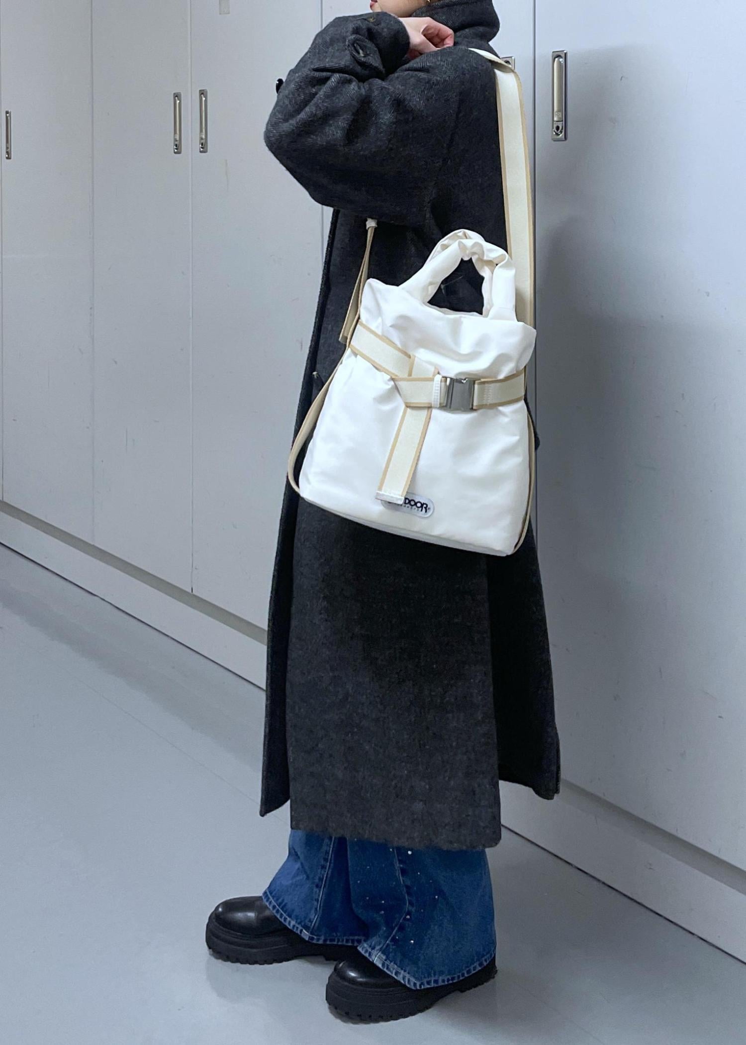 ベルトテープ×バックルのデザインが、シンプルコーデに合わせても様になります。