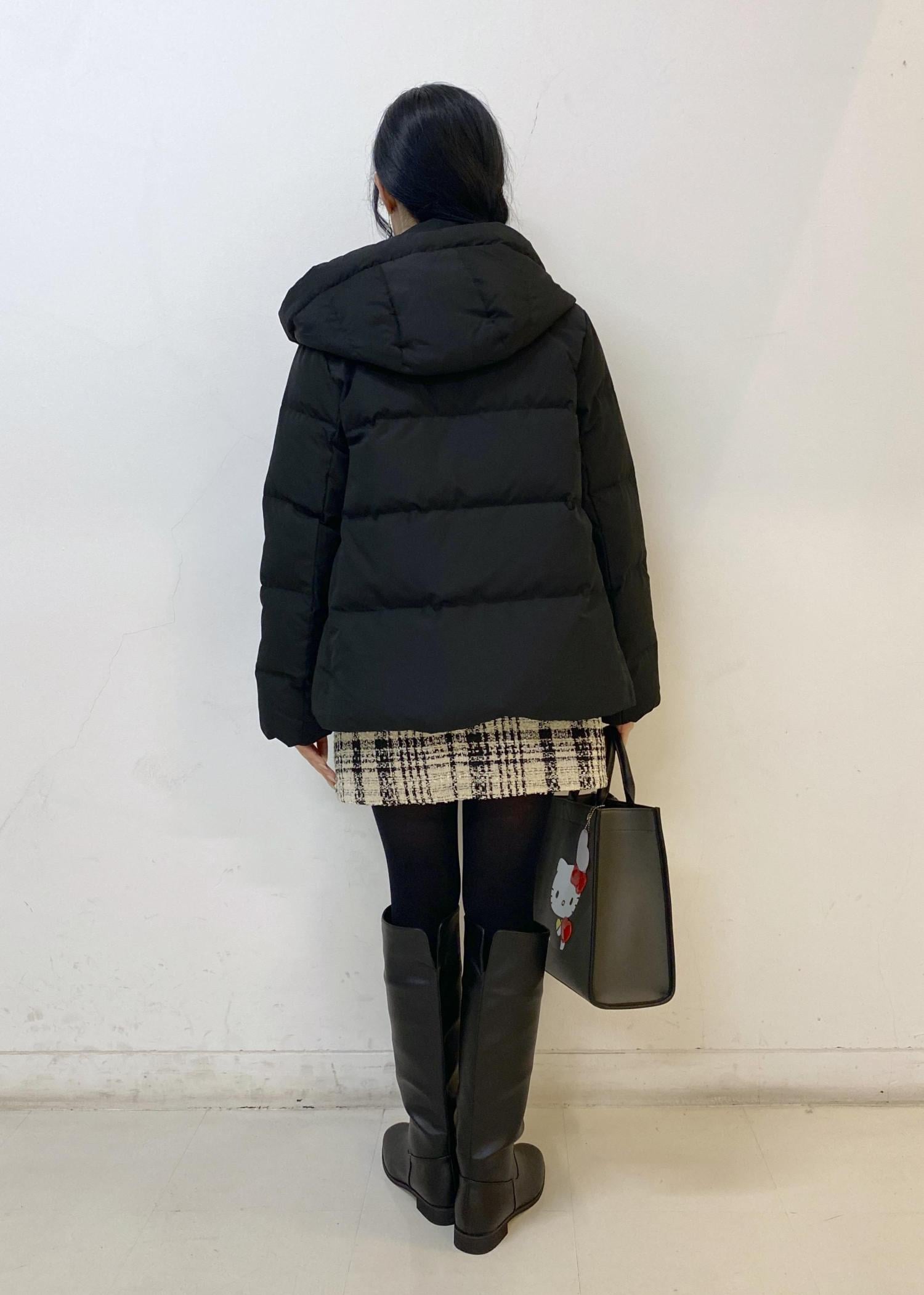 ロングブーツと合わせるとトレンド感のあるコーディネートに。