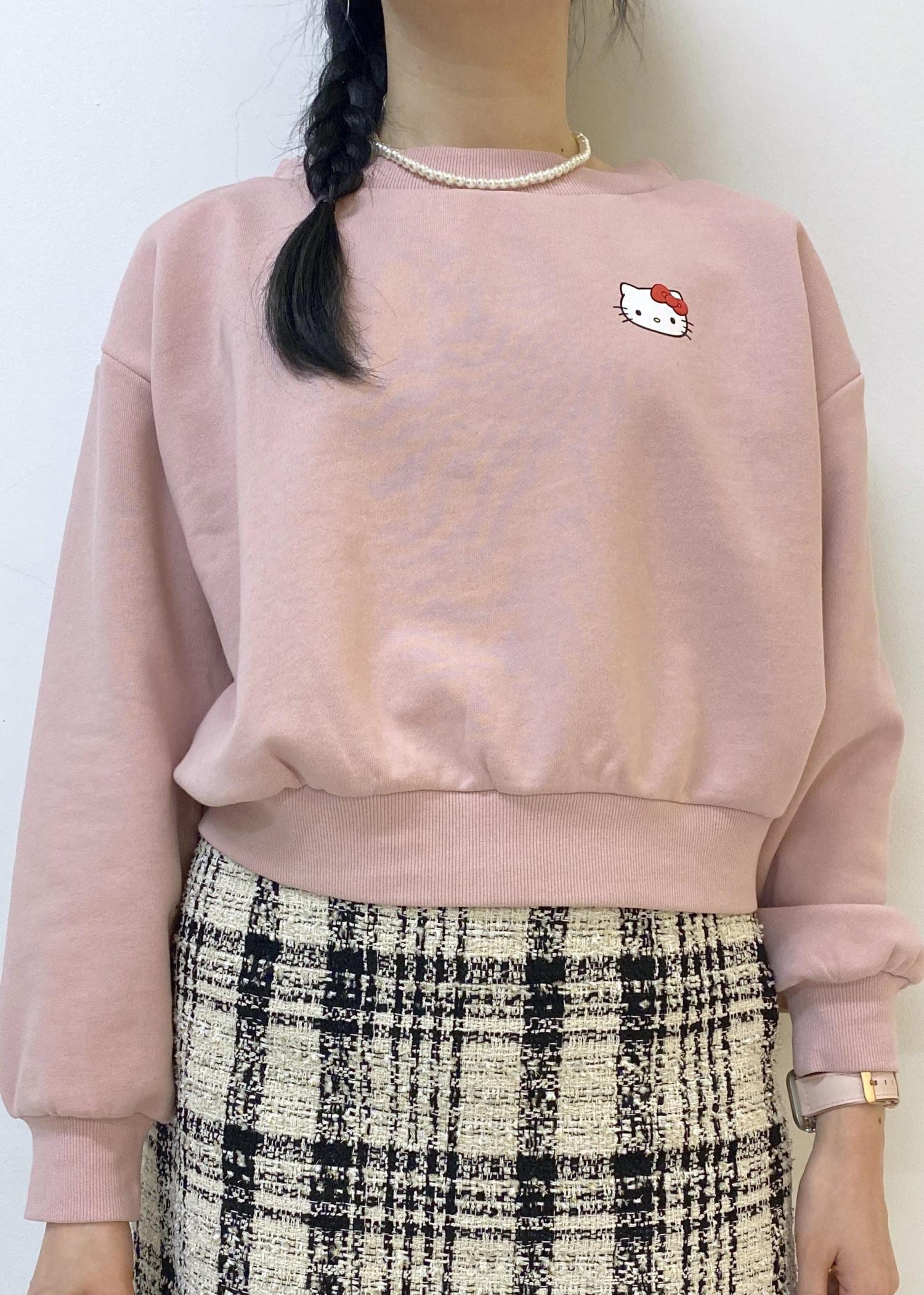 ハローキティのプルオーバーは、大人っぽいくすみピンクをチョイス。
