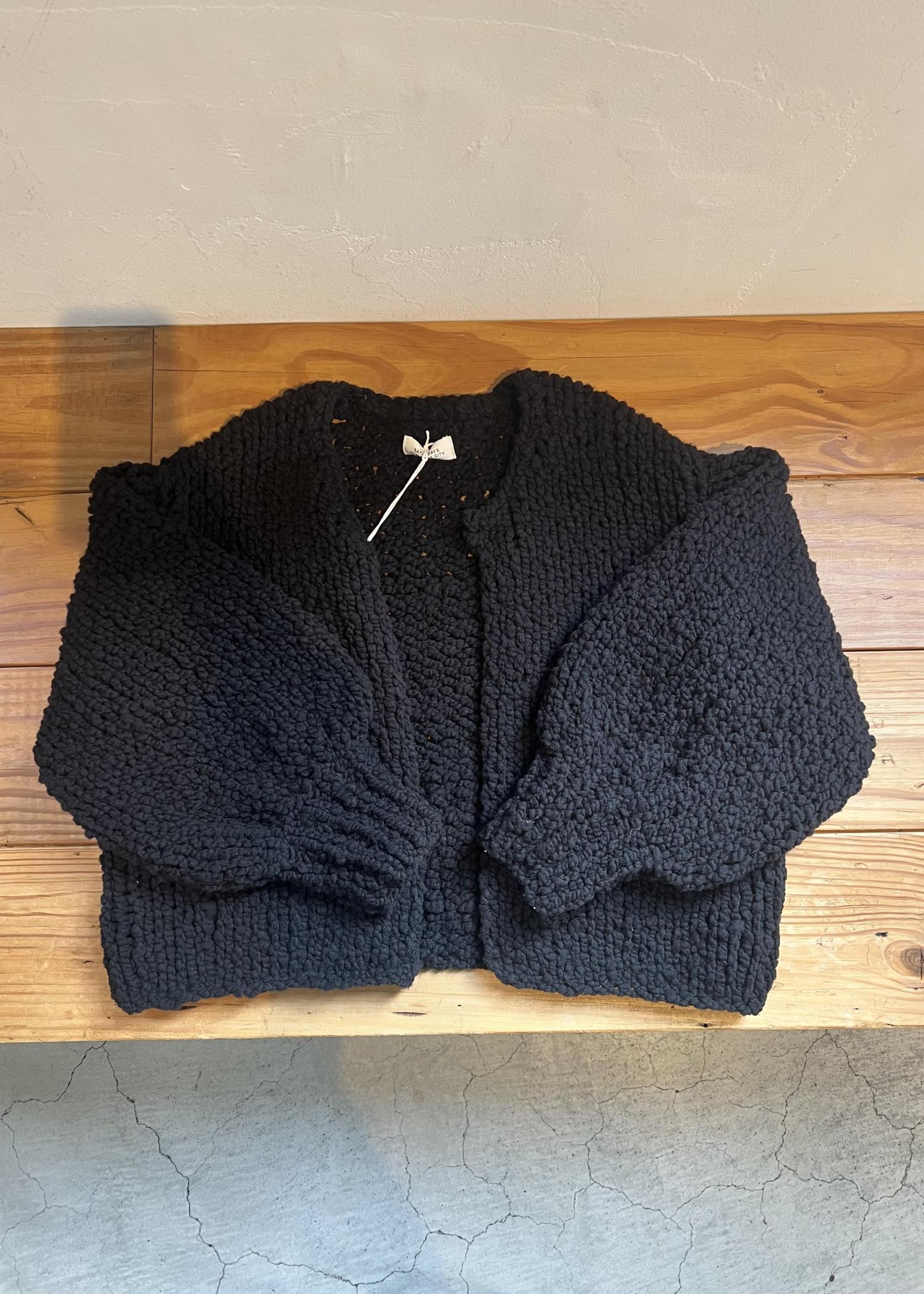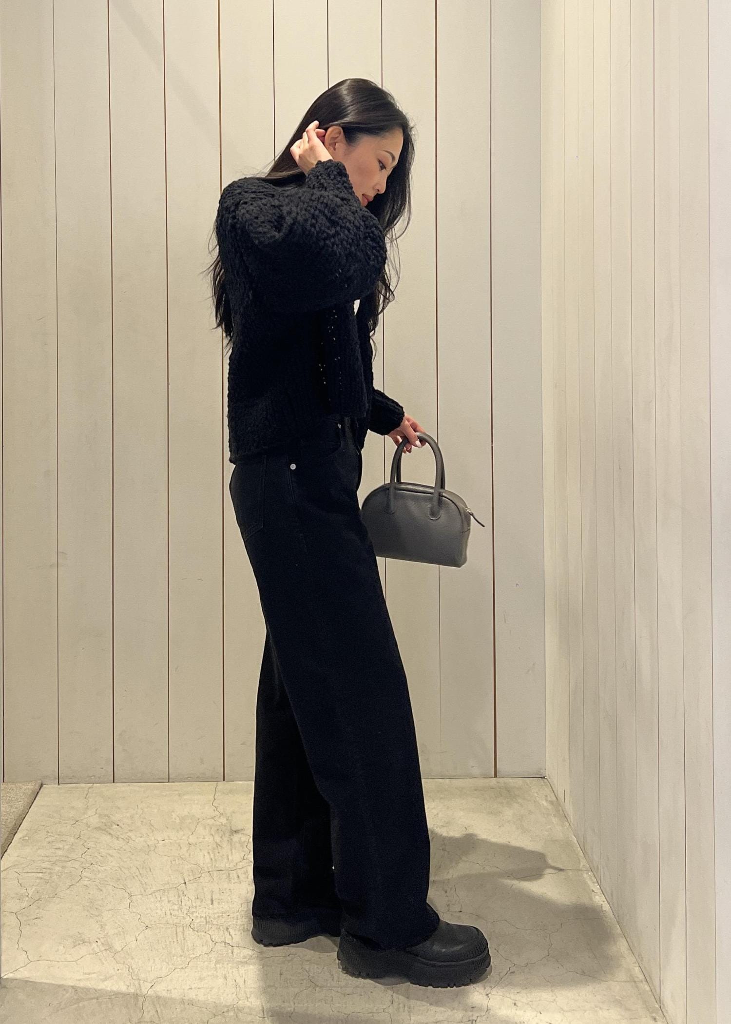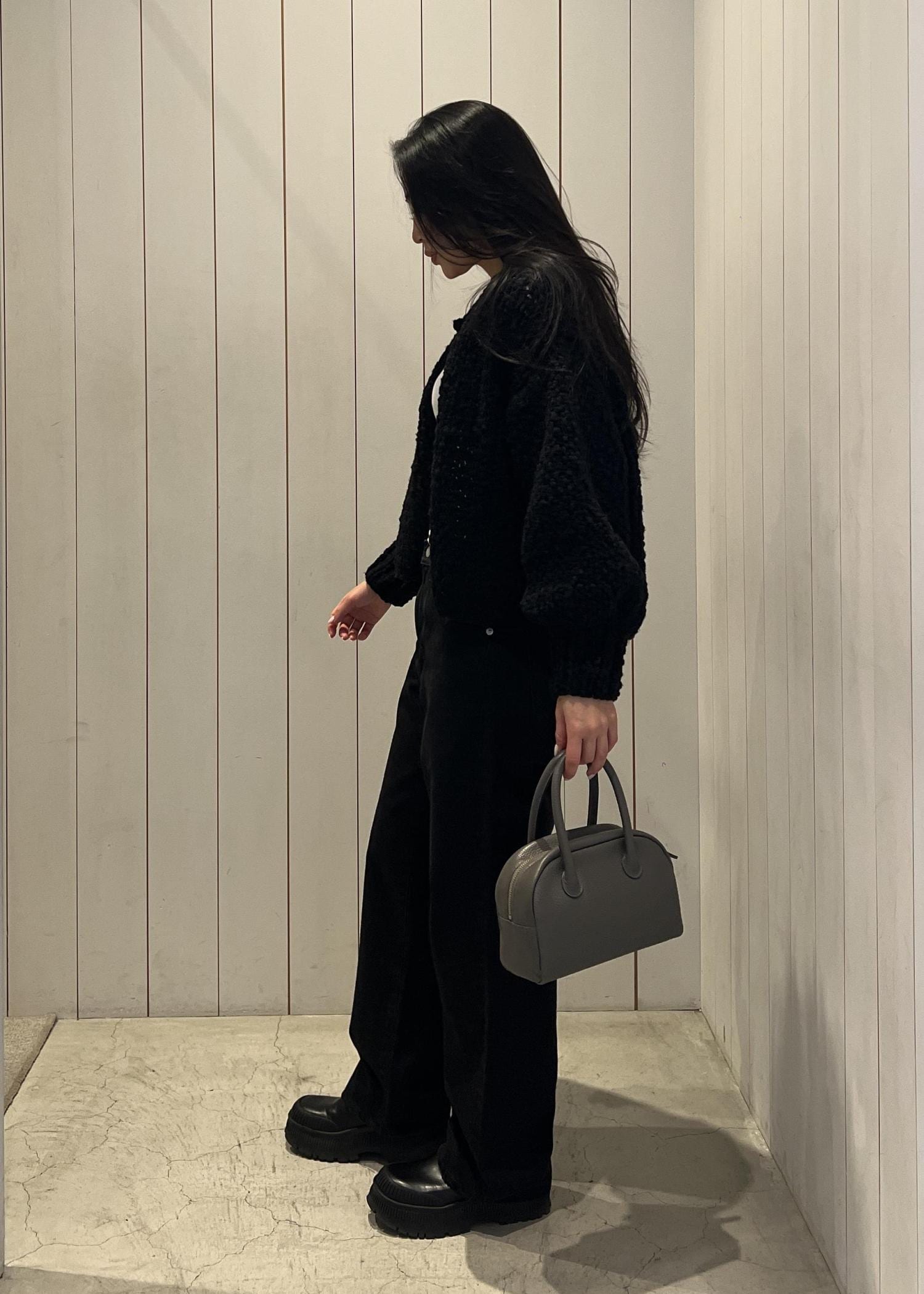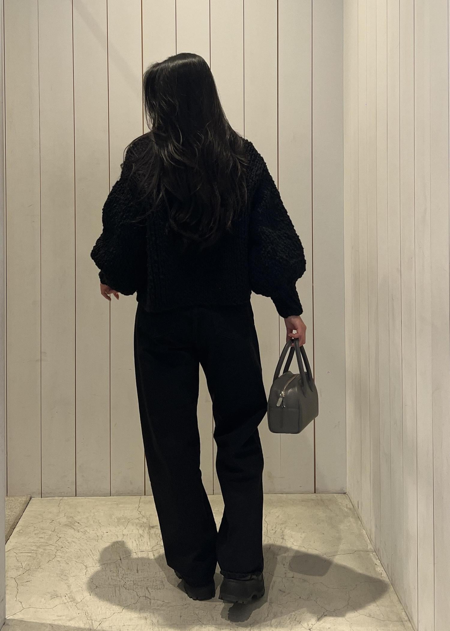 ぽってり袖がポイントのカーディガンで、抜け感のあるスタイリングに。