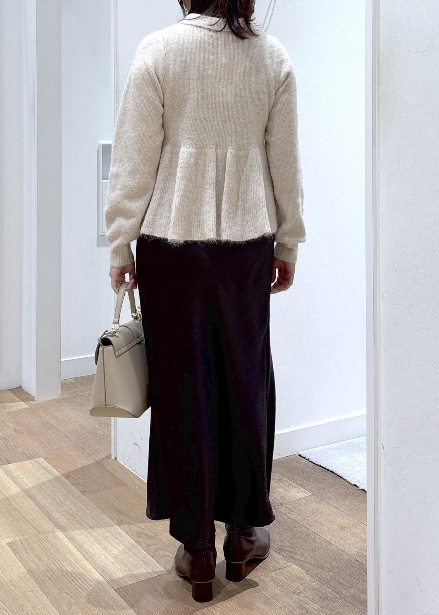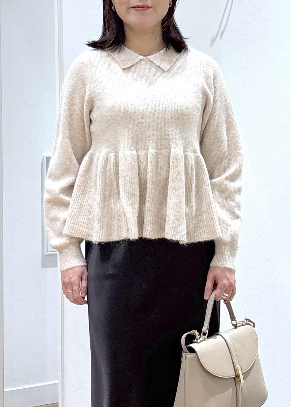 ROPÉ PICNICアンゴラ混ペプラムニットベージュ / F¥5,995レビューアンゴラ混のふわっと柔らかく軽い素材です。切り替えが位置が高く、着丈は腰にかかるくらいなので、体型カバーしながらスタイルアップして見せてくれます。