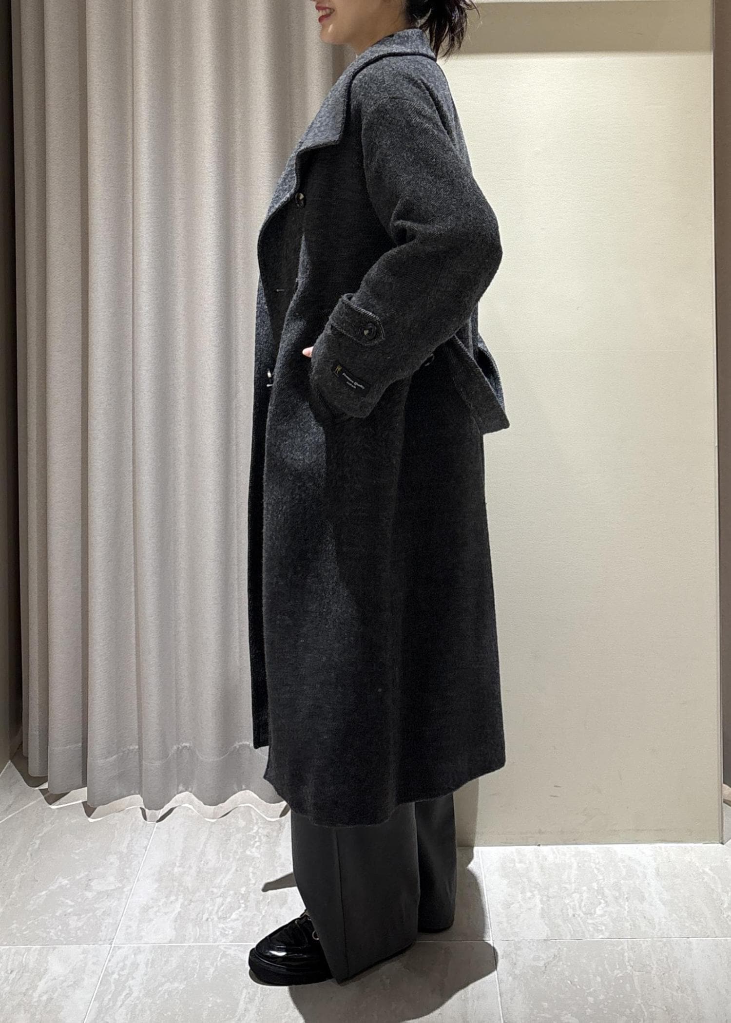 VIS尾州シャギースタンドカラーロングコート/静電気防止・WEB限定PS・TMサイズチャコール / M¥17,512レビュー165cmでTMサイズ着用、ふくらはぎがしっかり覆われる丈感です。