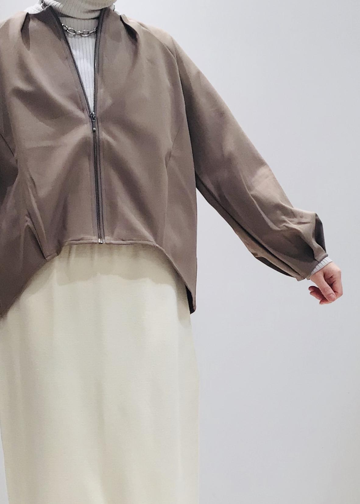 なめらかでしっかり目のダブルクロス素材がとても上品な印象のジップアップブルゾン