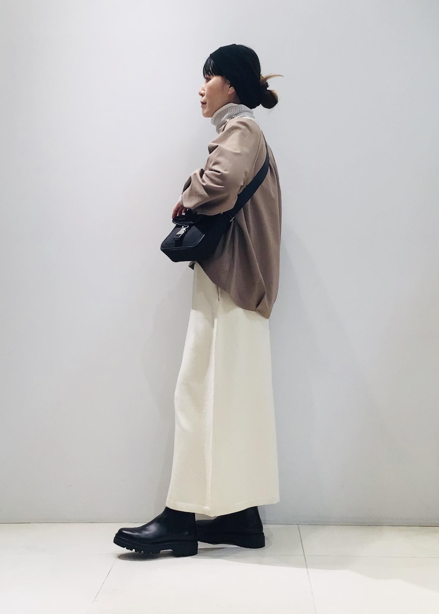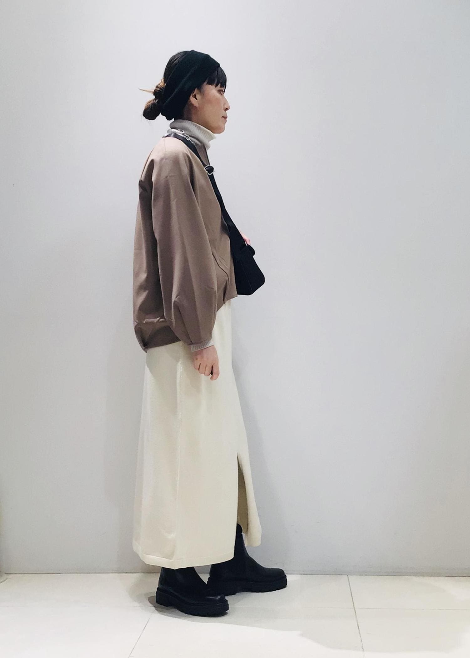 今日はニットスカートとブーツでカジュアルダウンさせたスタイリングに♩