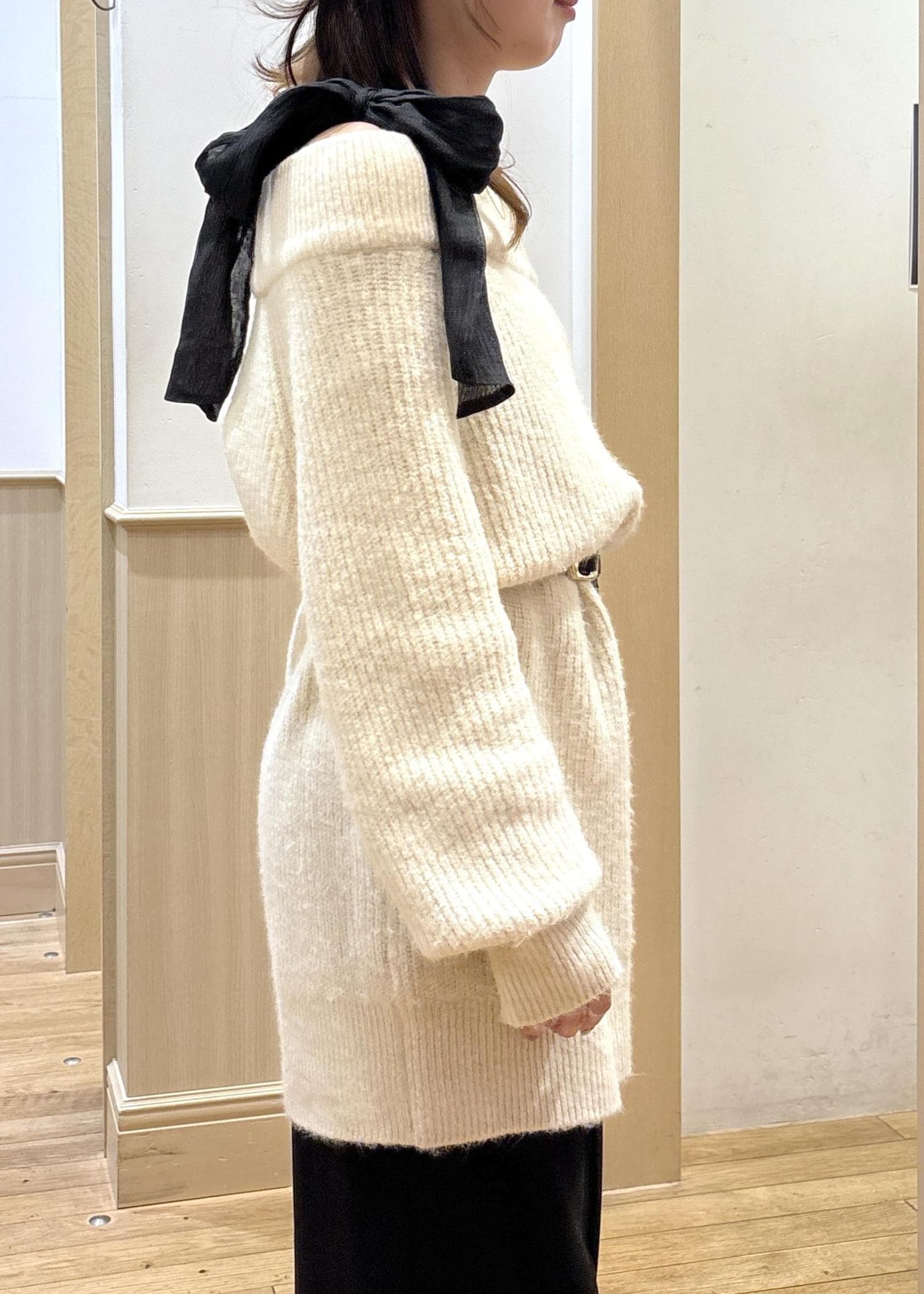 VIS肩リボンミニ丈ニットワンピース/2WAYキナリ / F¥6,327レビュー156センチで膝上くらいの長さです。