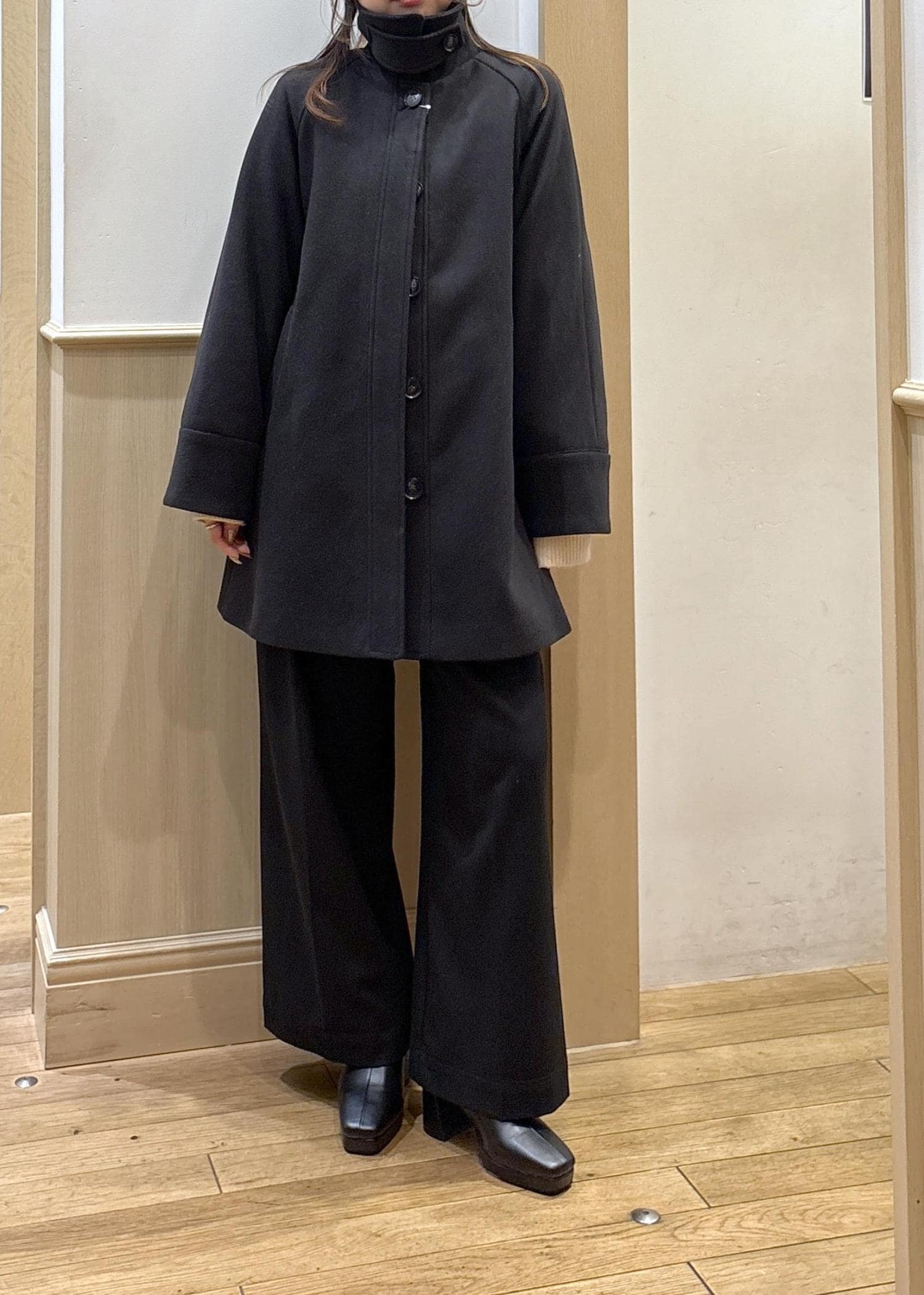VIS【アウター総選挙2位】フレアーチェスターコートブラック / F¥11,264レビューお尻までしっかり隠れるほどよい丈感のアウターです。
