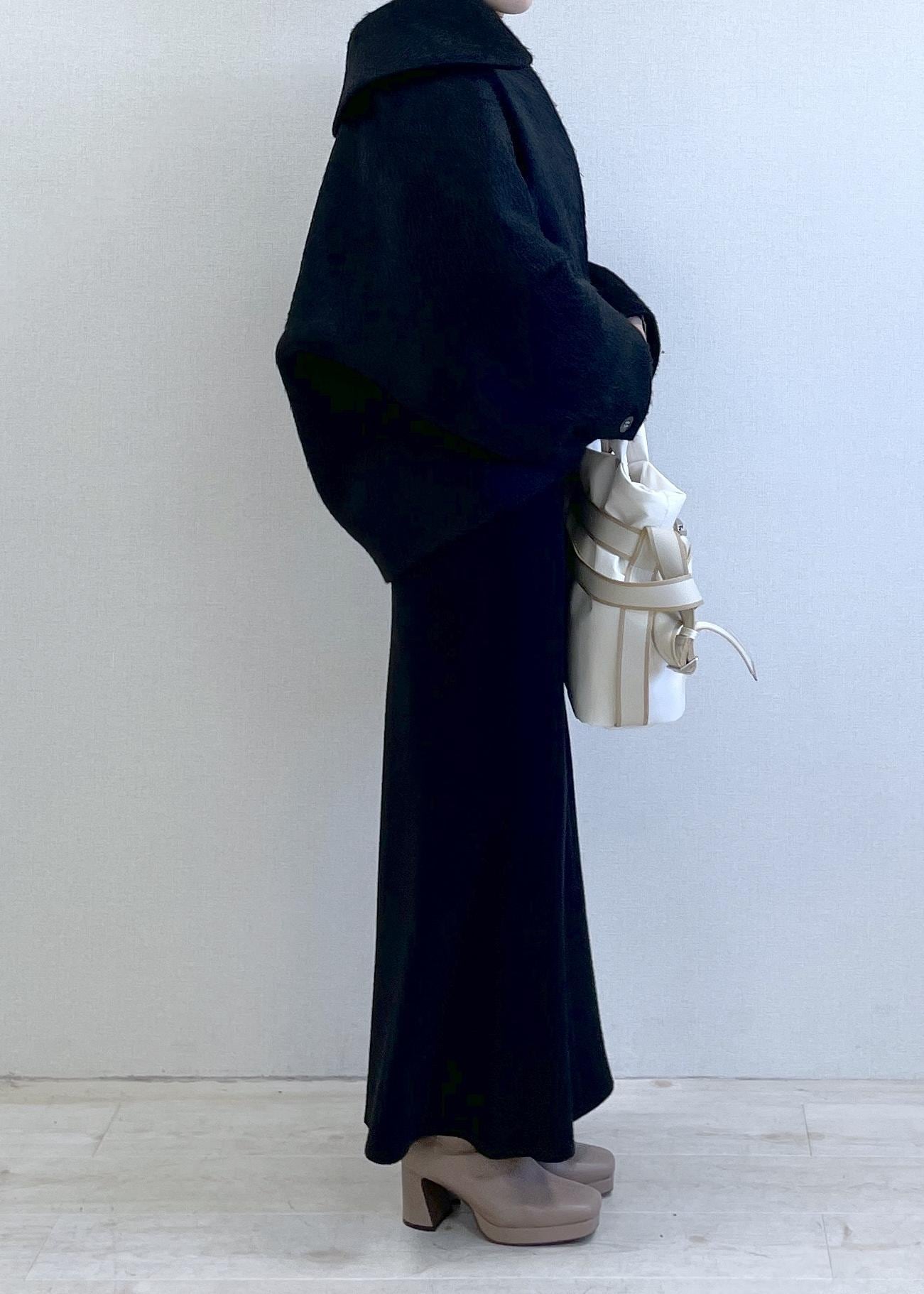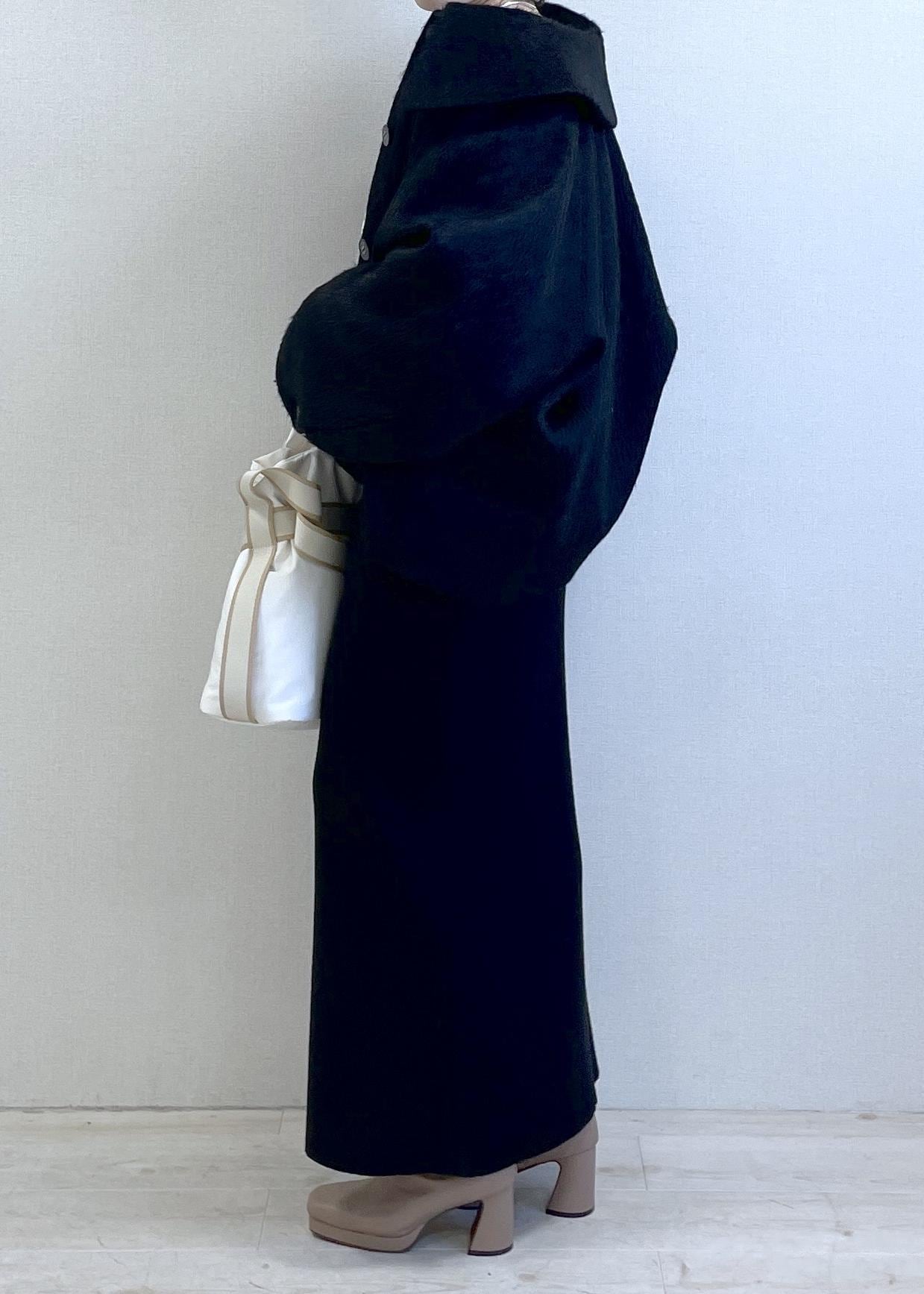 長さはくるぶしほどで、すっきりしたIラインシルエットです。 -