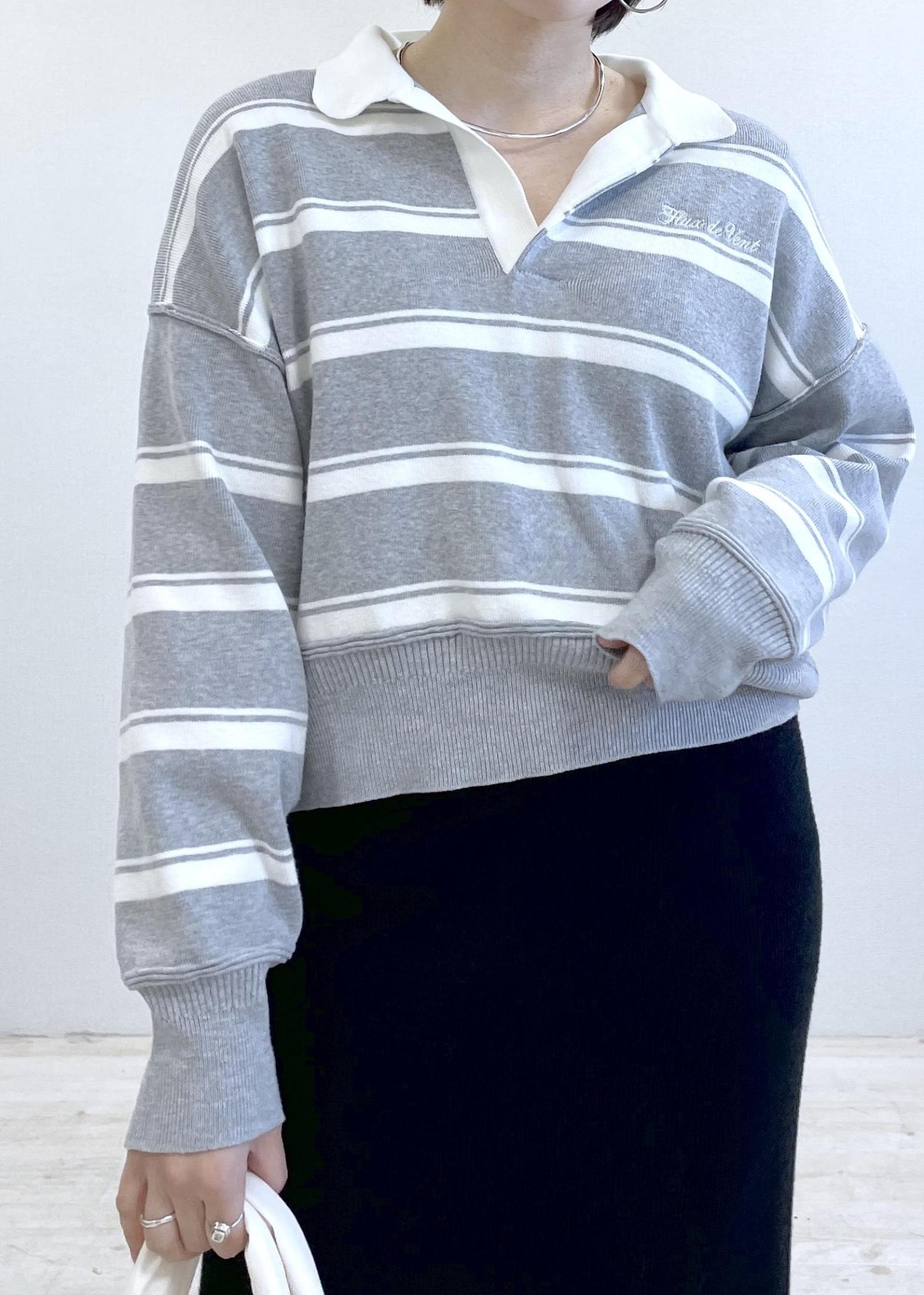 VISワンポイント刺繍ポロニットプルオーバーライトグレー / F¥5,271レビュー全体的にゆるっとしたサイズ感ですが、着丈はコンパクトで、シルエットがとてもかわいいです♡