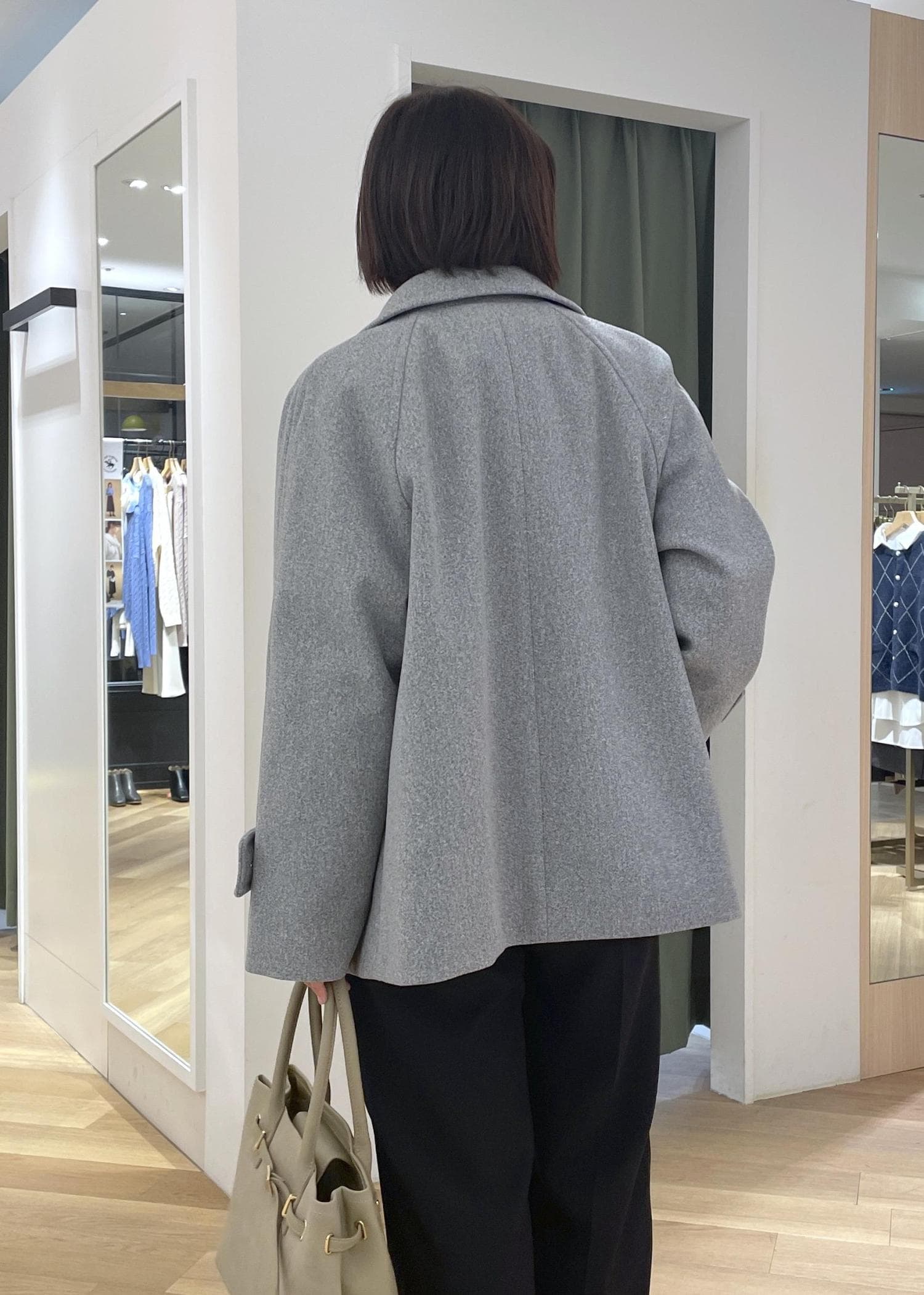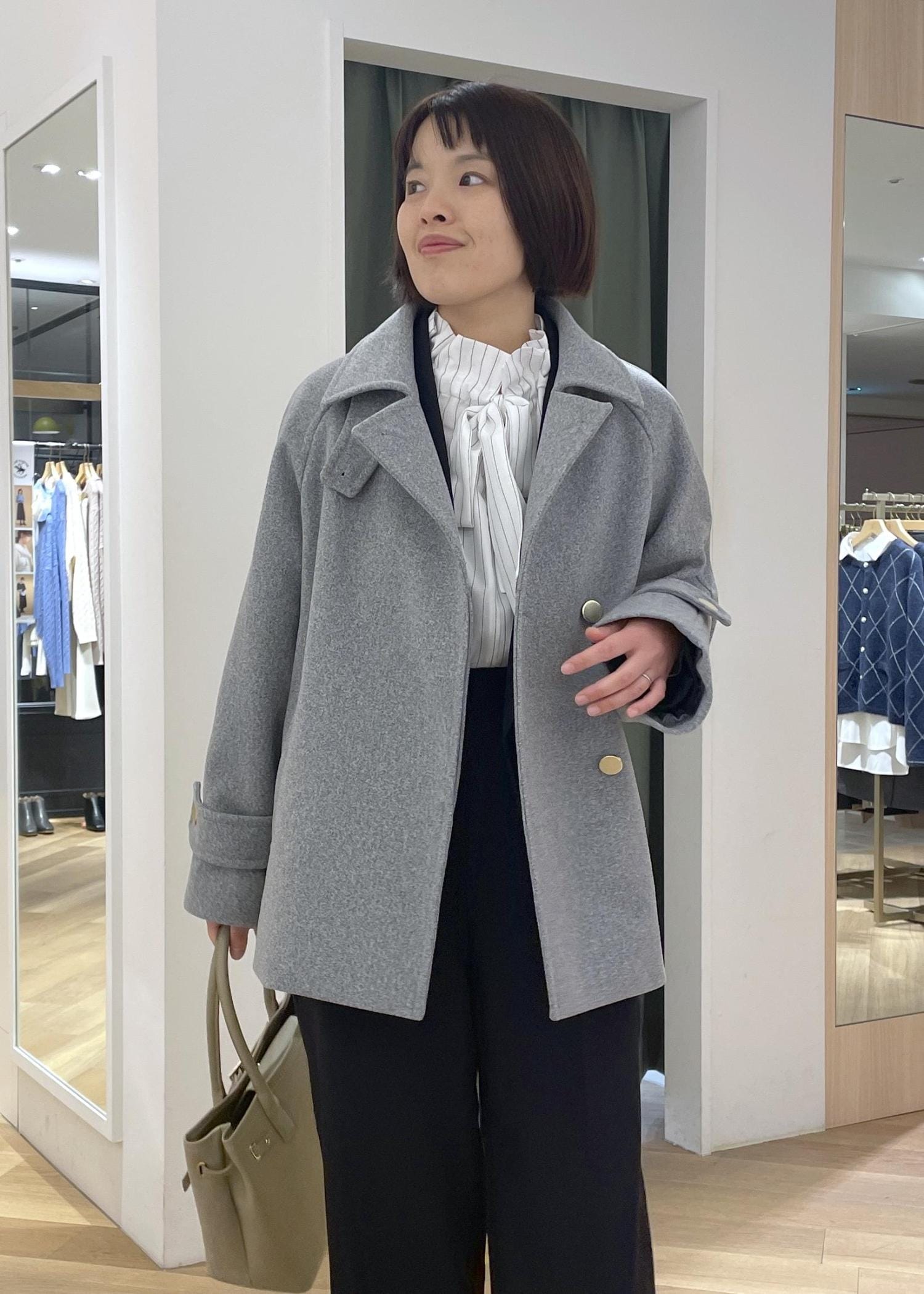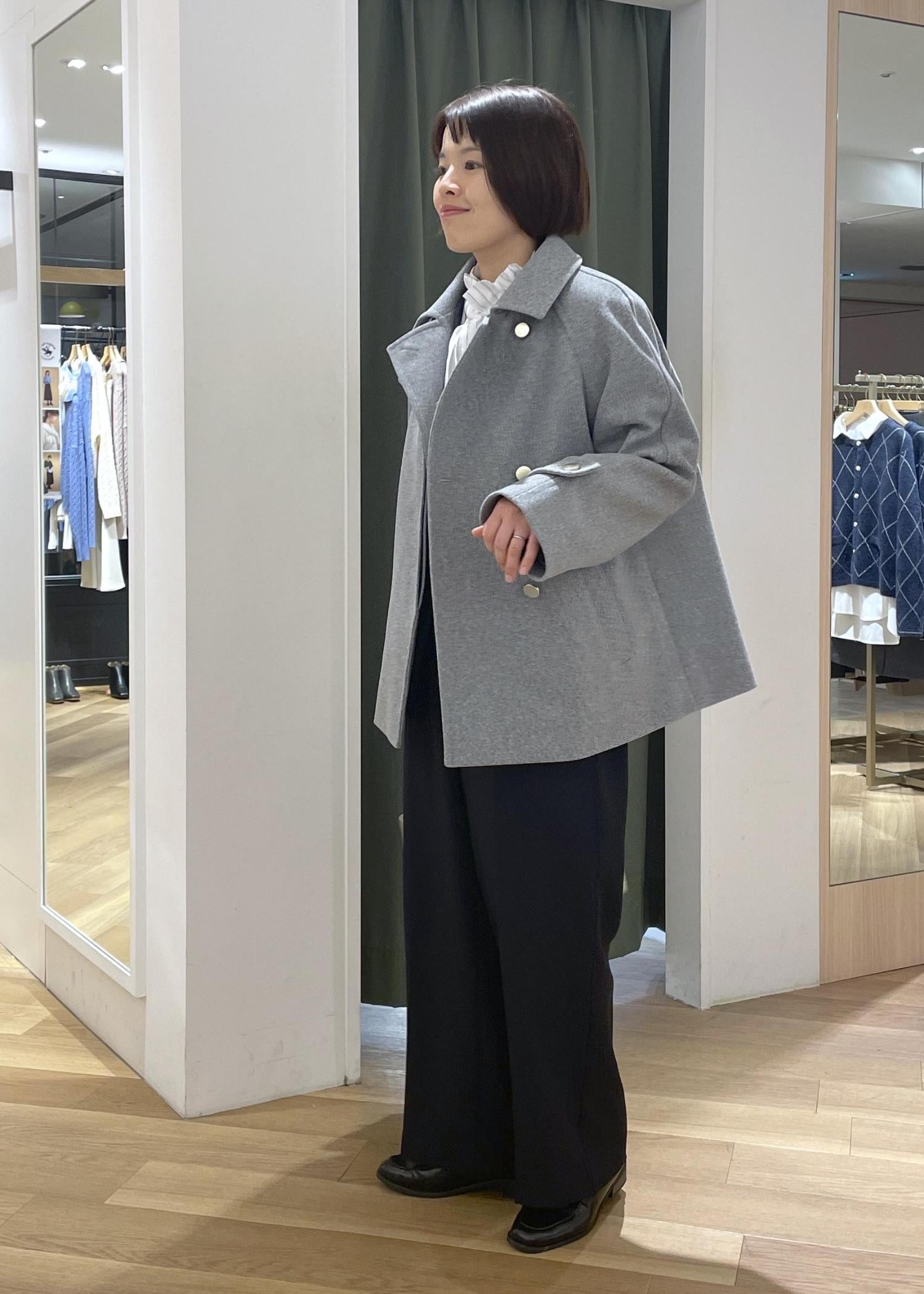 グレーのコートはゆったりサイズでジャケットの上からでも羽織りやすく、きちんと感があるので、通勤スタイルにもおすすめのアウターです!
