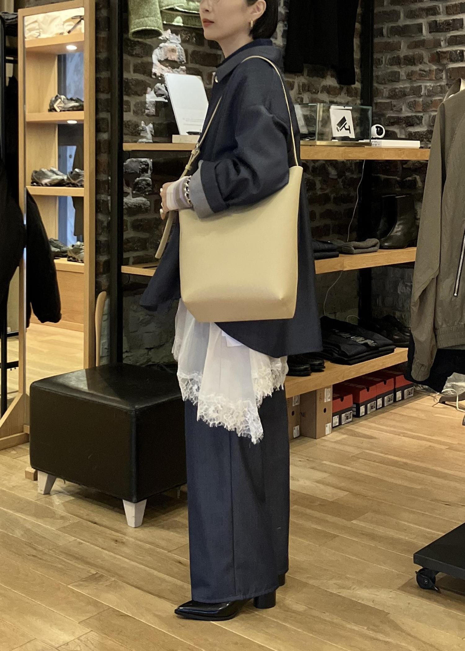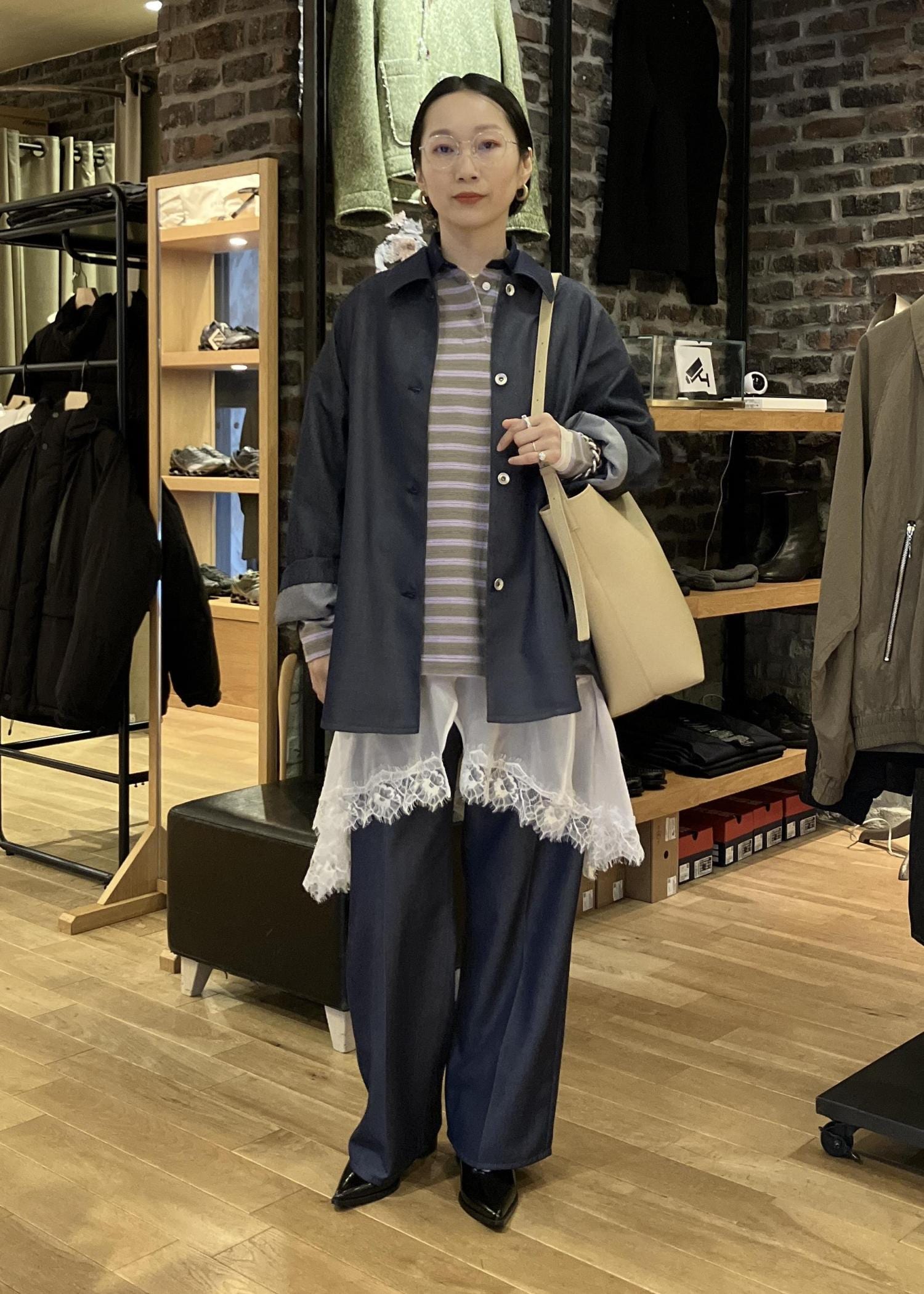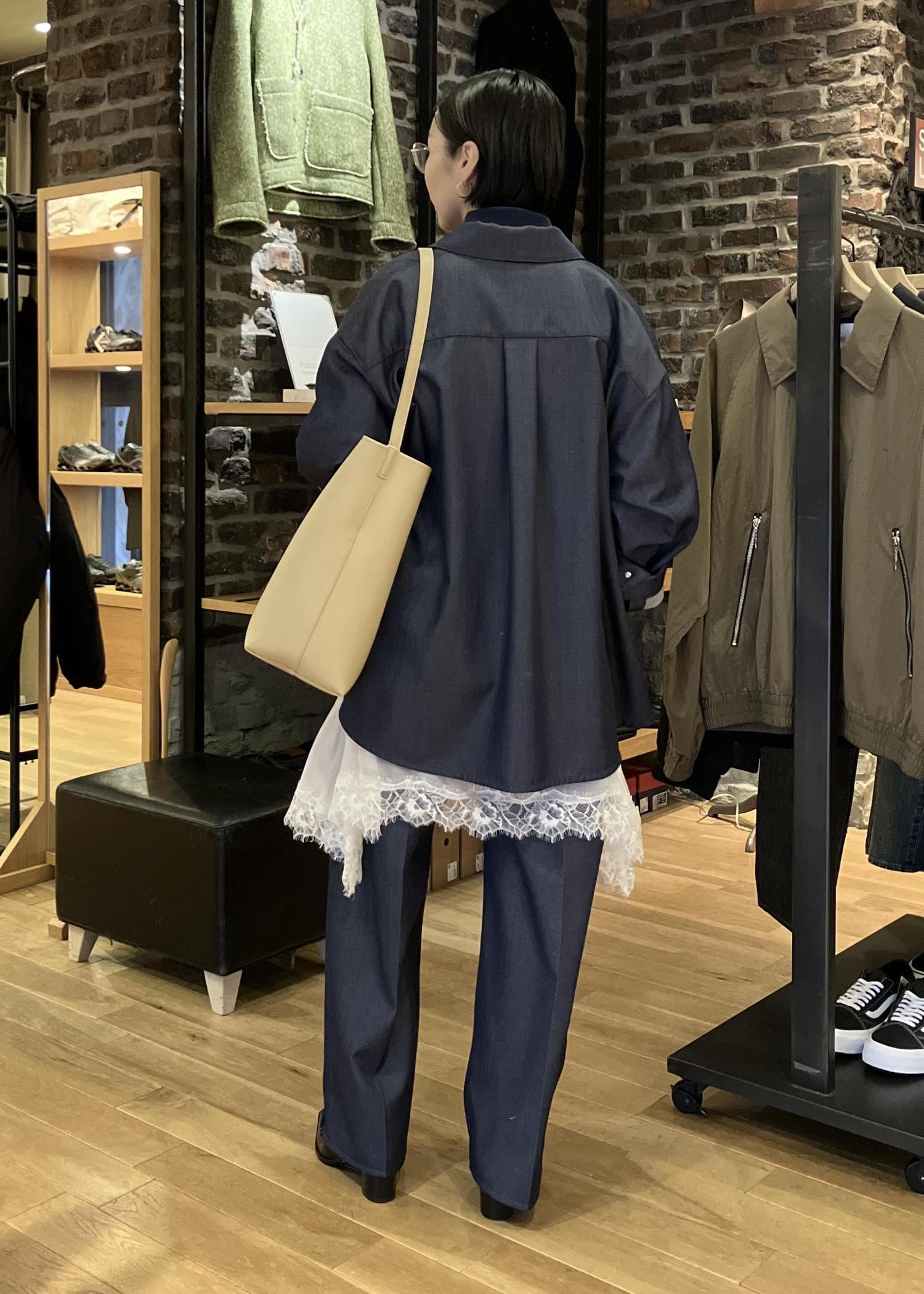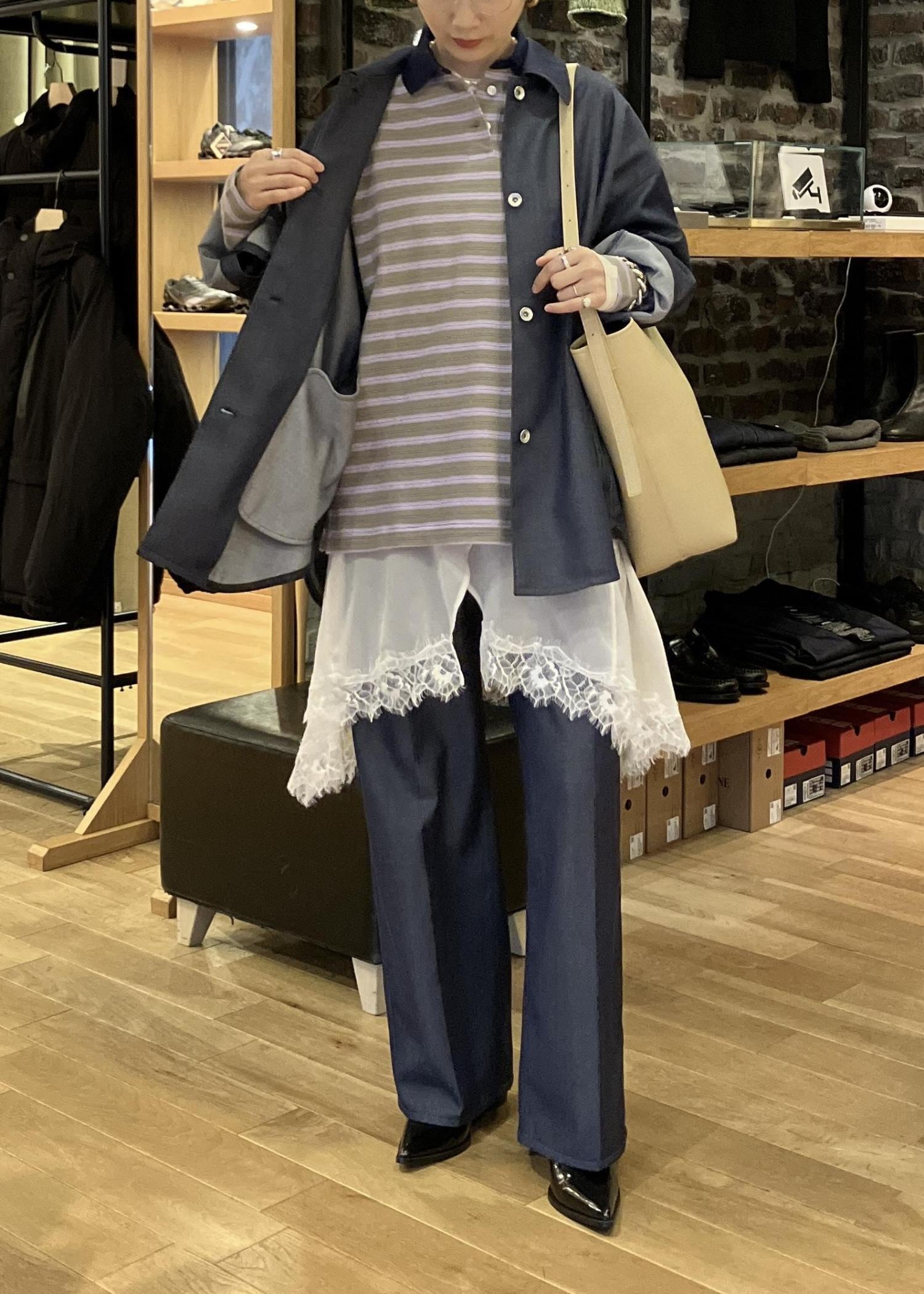 オーバーサイズなので、まだ寒いうちは中にニットやスウェットを着ることが出来ます。