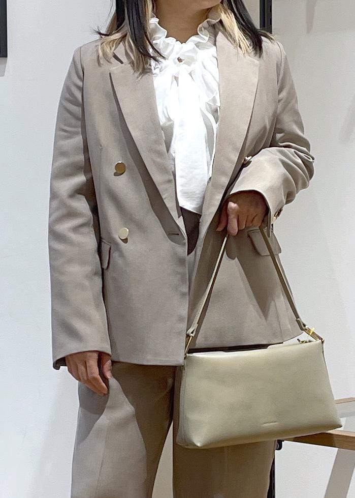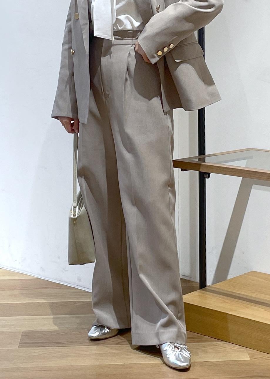 毎シーズン大人気の金ボタンジャケットです。オンオフどんなスタイルにも合わせやすく大活躍間違いないです○ワイドパンツはサイドのベルトでウエスト調整が出来るのが嬉しいポイントです。