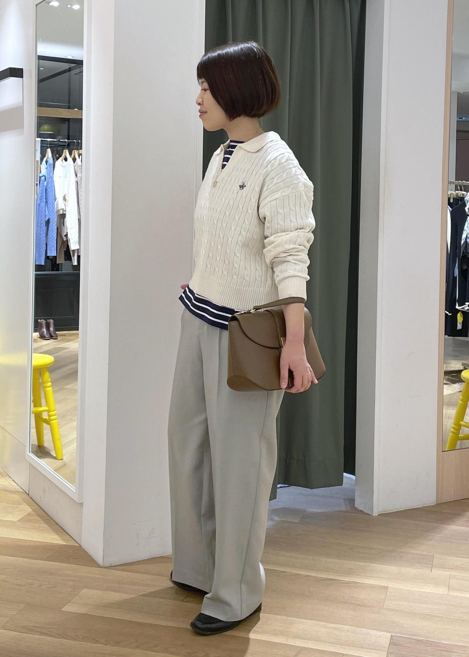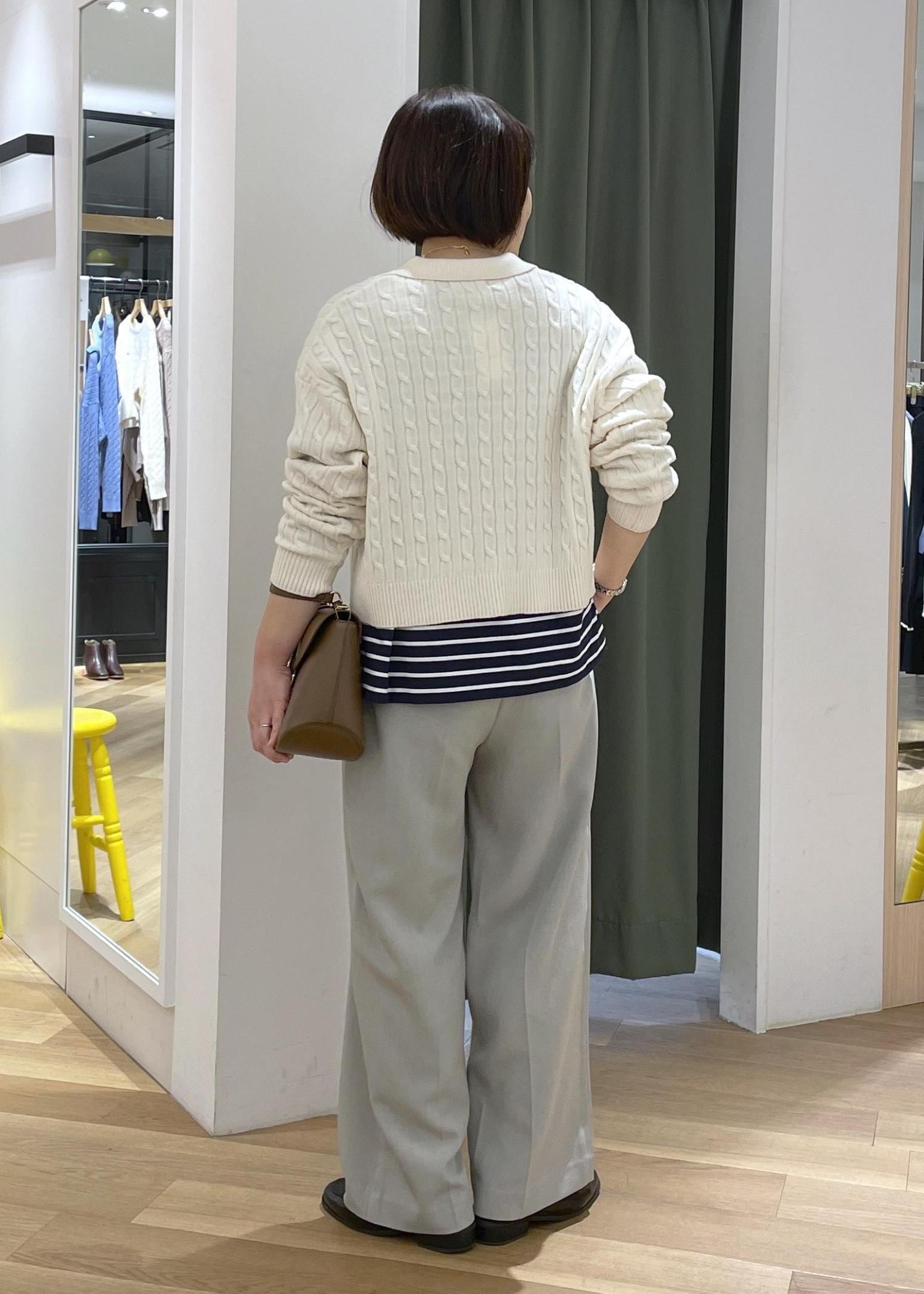 スキッパーニットのボーダーレイヤードコーデ