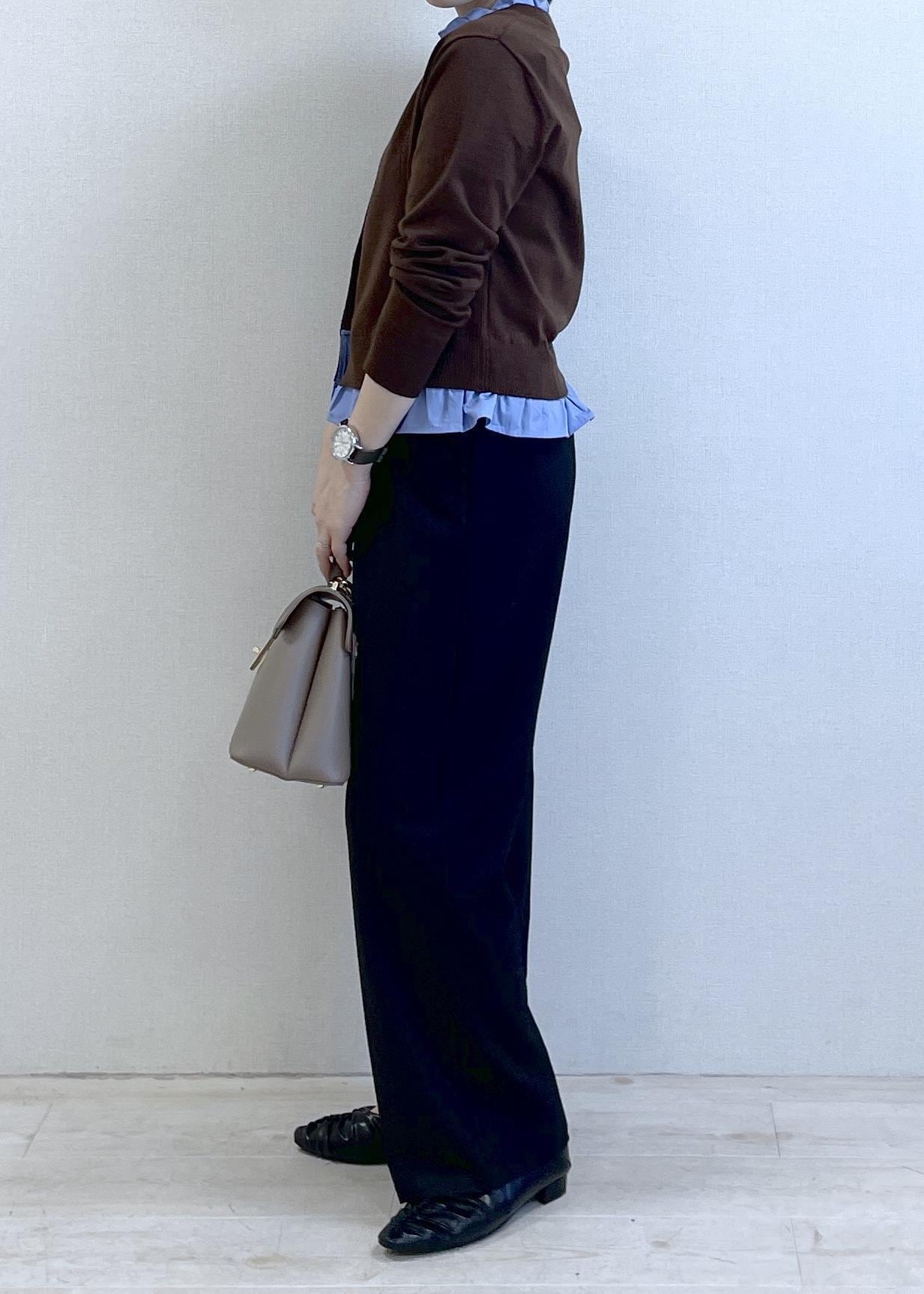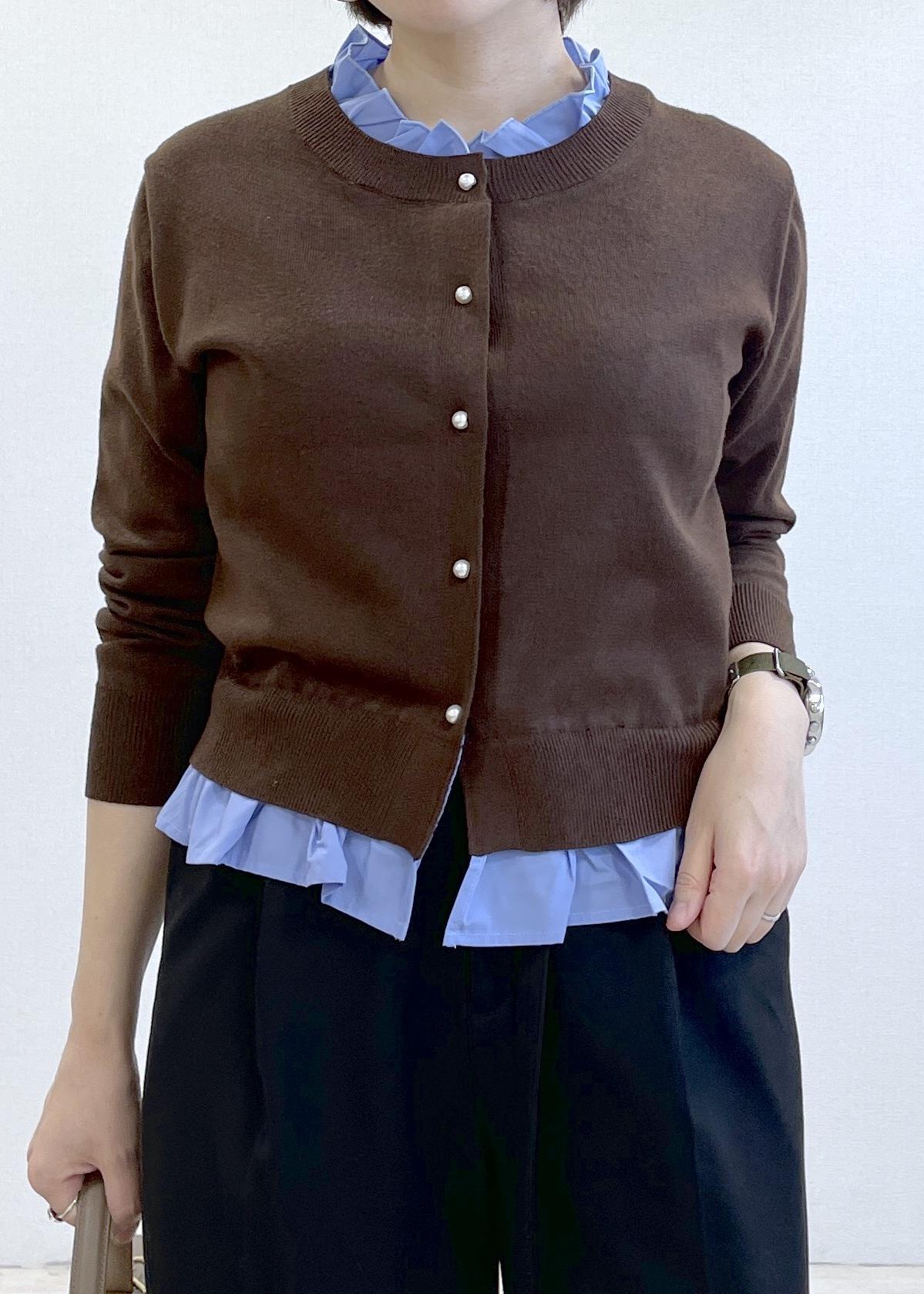 2BUY10%OFFVIS【美得】フリル襟ドッキングニットカーディガントップスダークブラウン / F¥5,929レビューほどよくゆとりのあるサイズ感で、ピタっとしすぎず、着やすいです。