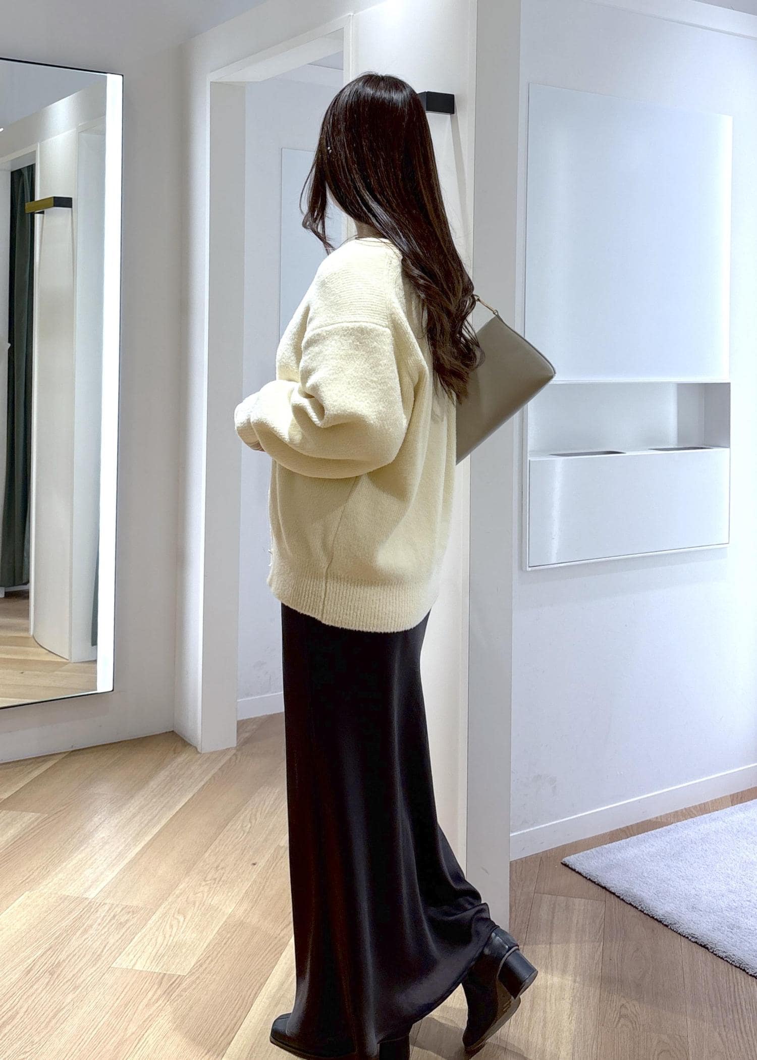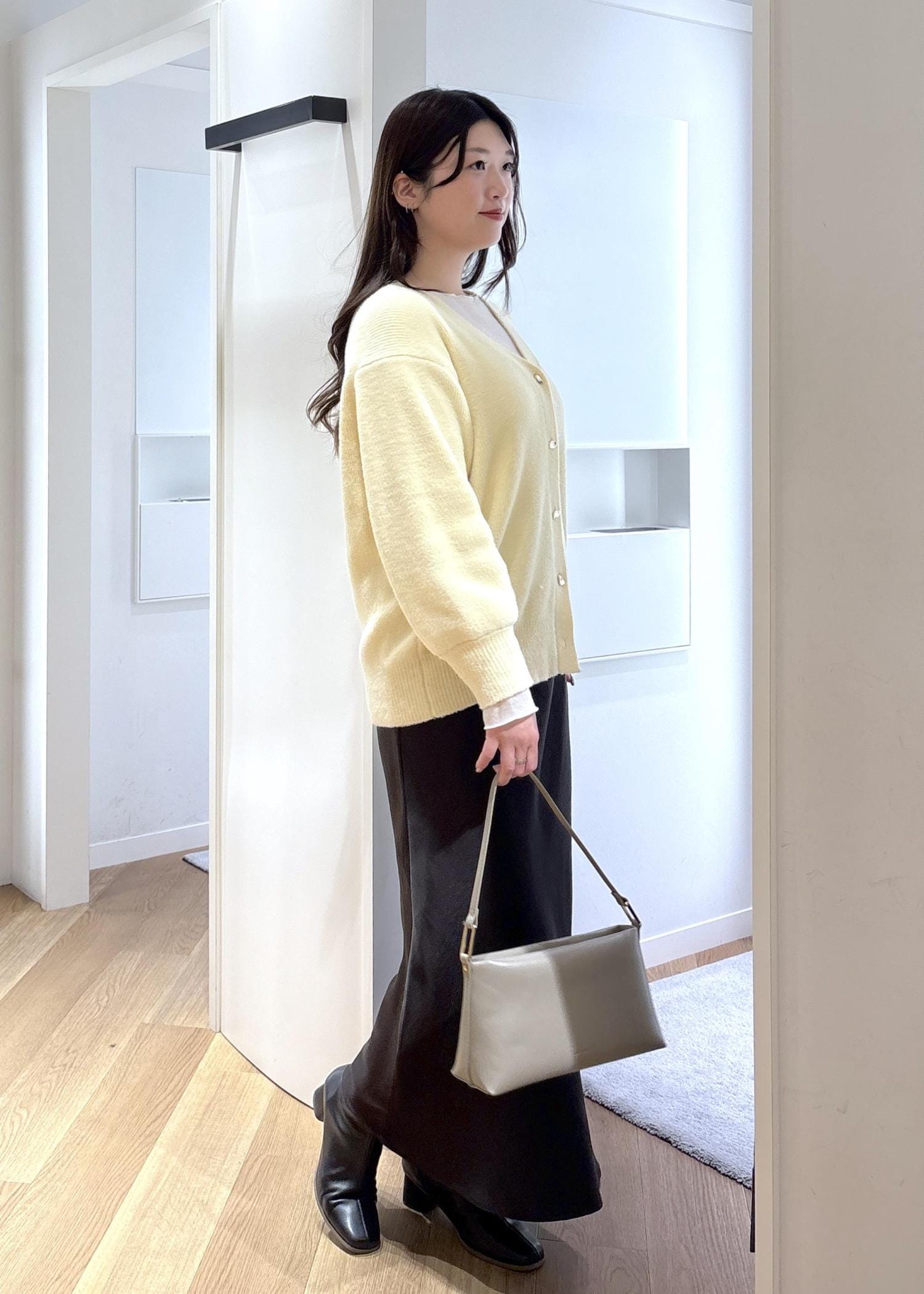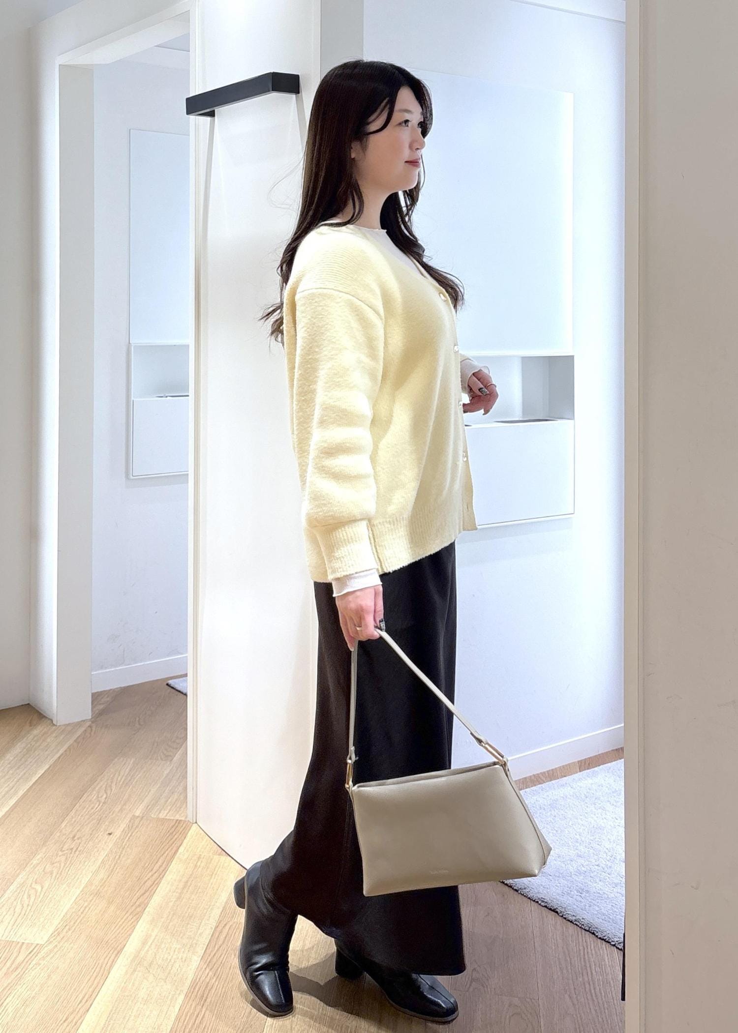 ゆったりと着られるカーディガンがとても可愛く、クリームのカラーが春らしさを取り入れられるコーデです♡